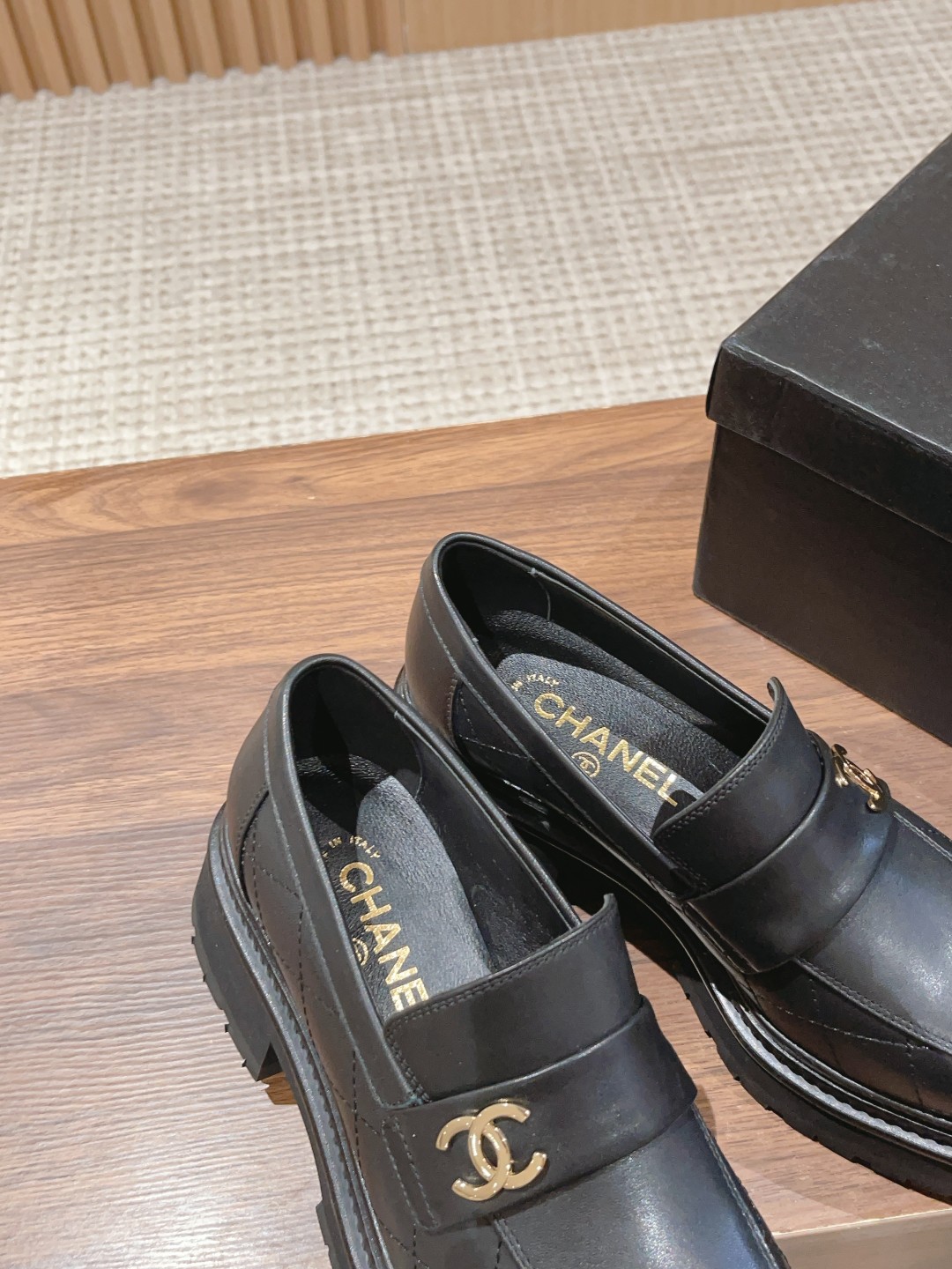 CHANEL 香奈儿2023秋冬乐福鞋新品乐福鞋 简单大方 增高约5cm 鞋面小牛皮,内里羊皮,鞋底为发泡材质和橡胶组合,轻便舒适