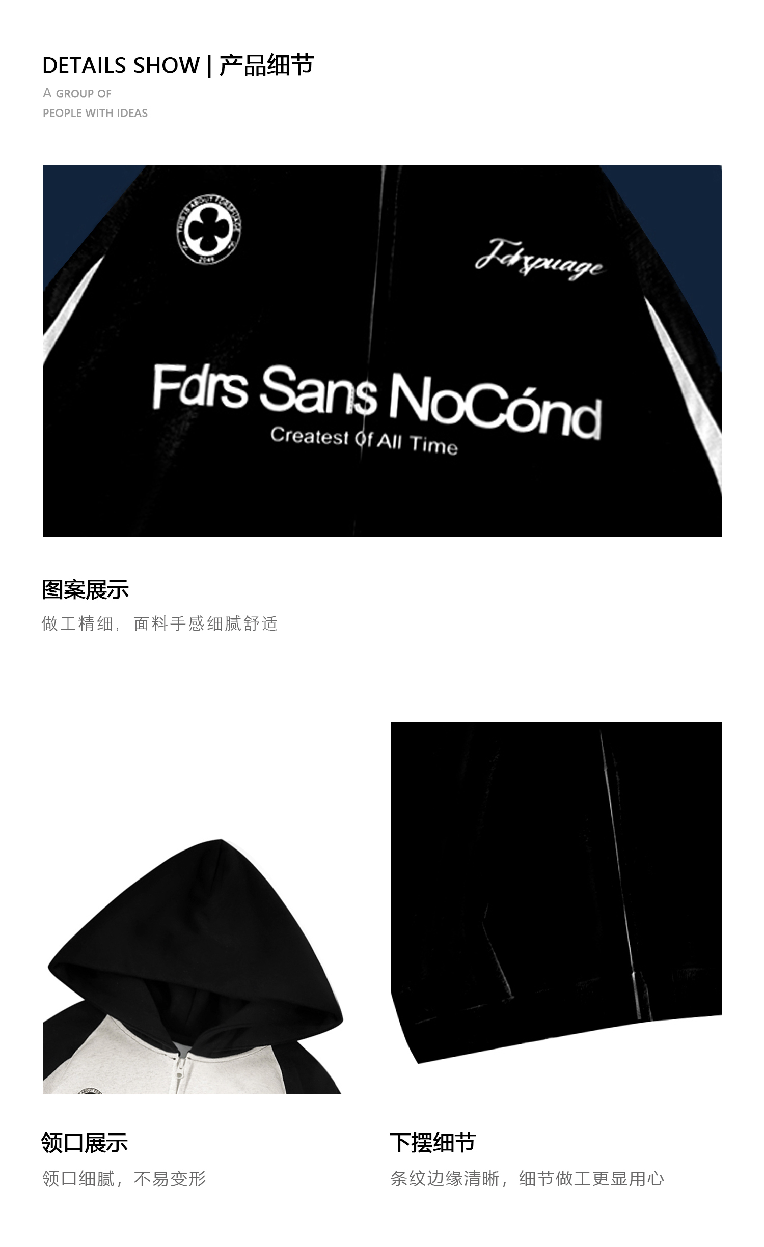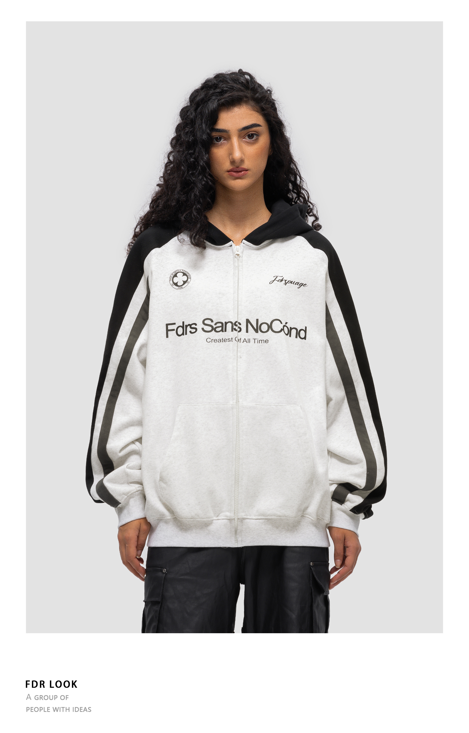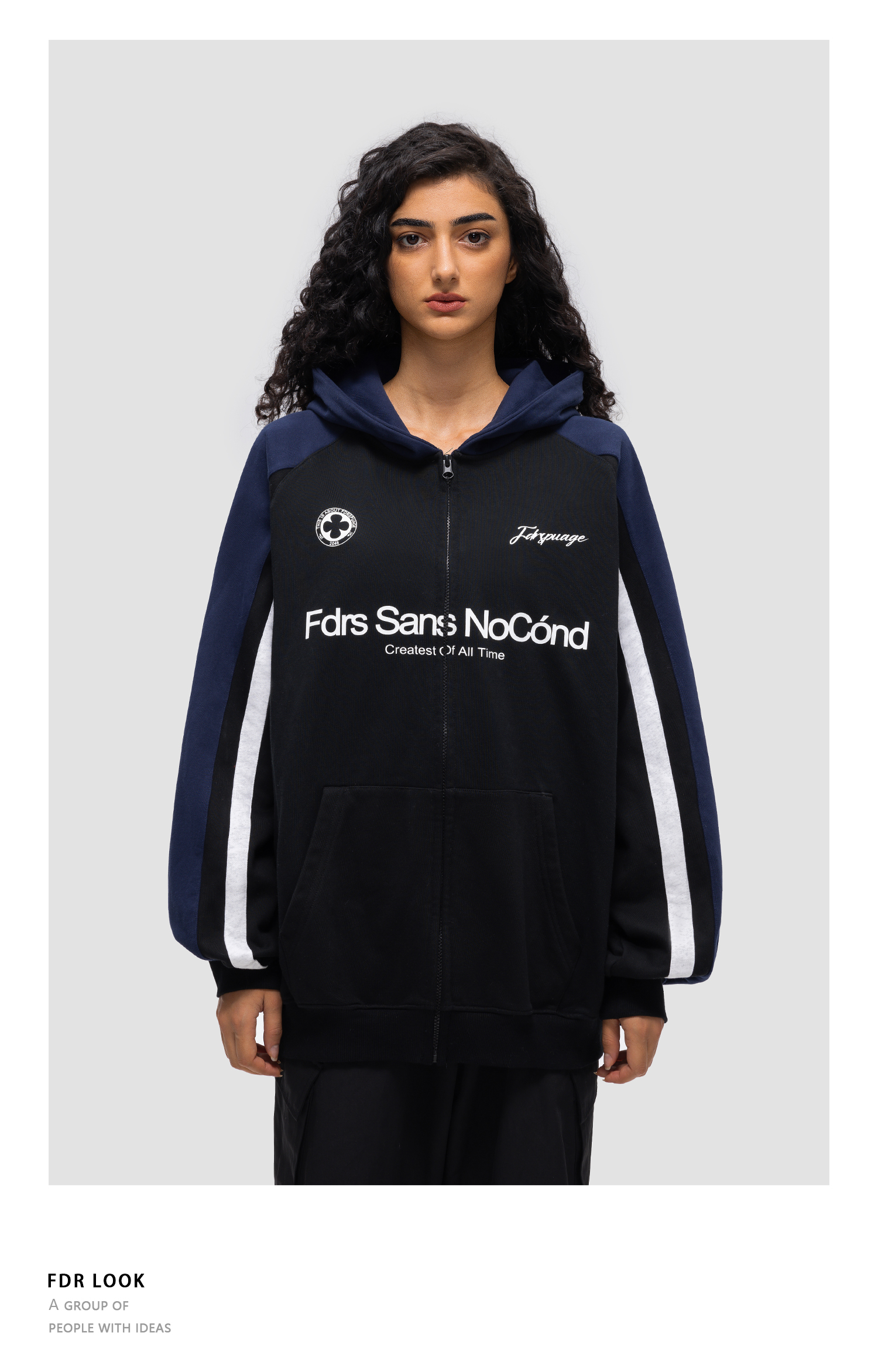 FDR 原创国潮新款拼色连帽卫衣开衫男女春秋季潮牌高阶情侣装上衣
