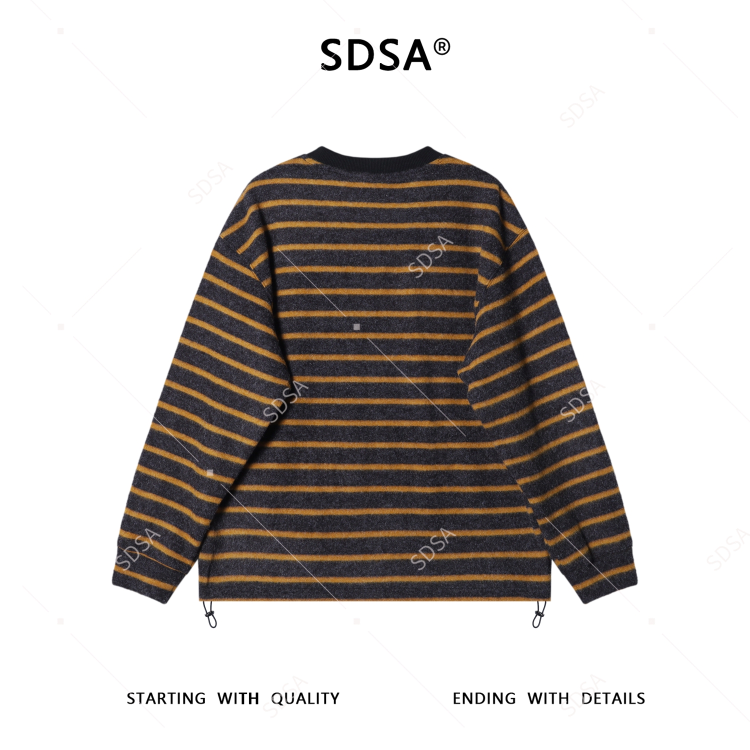 T5041SDSA秋冬新款痞帅男装潮牌撞色条纹圆领长袖T恤下摆松紧设计百搭