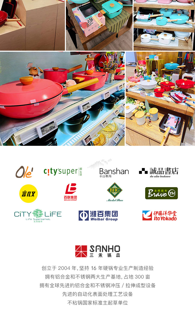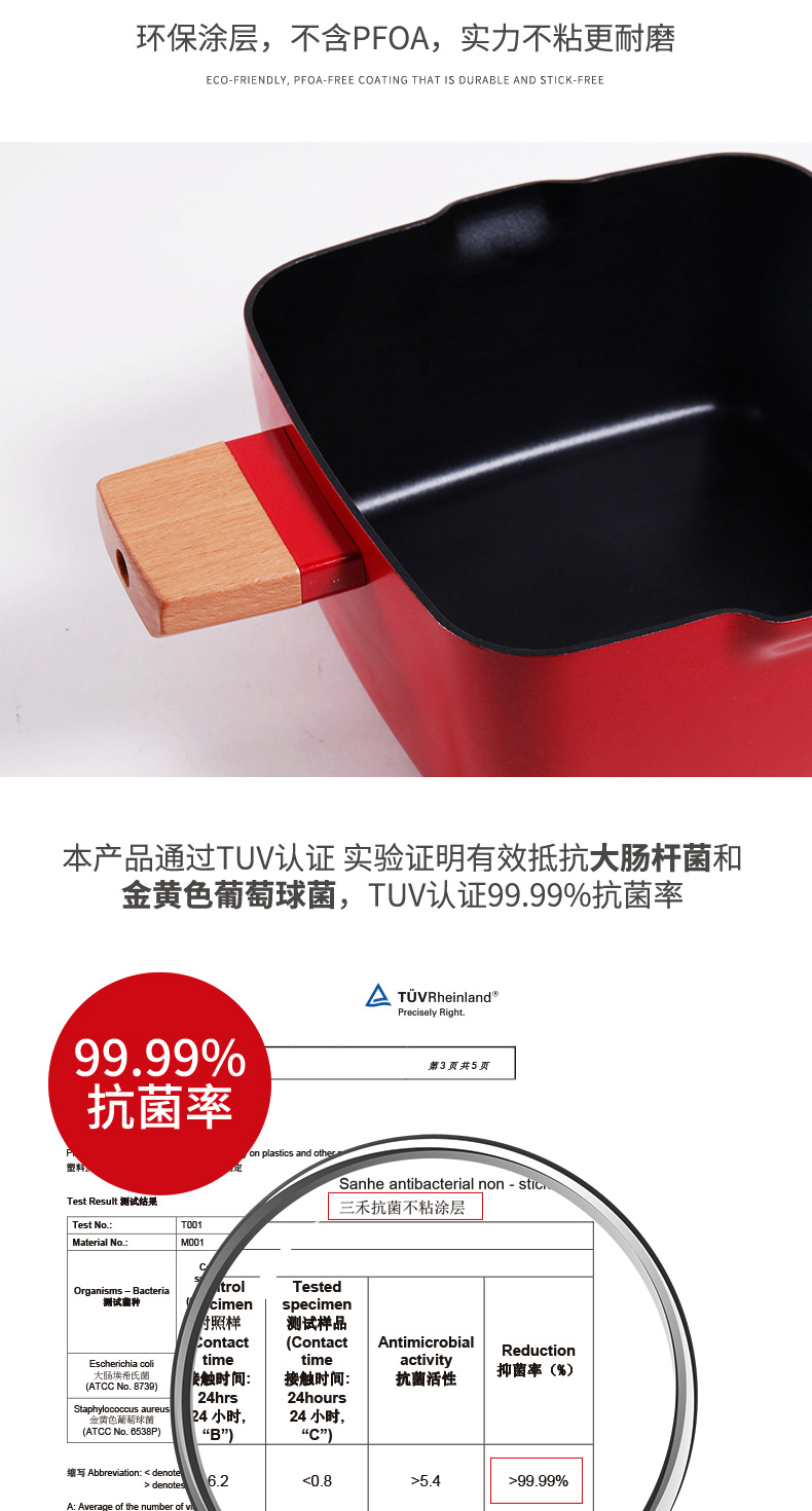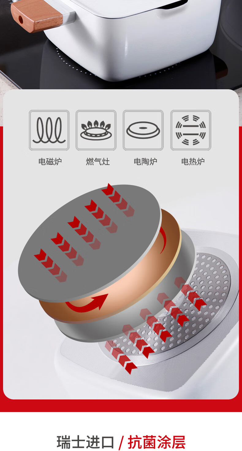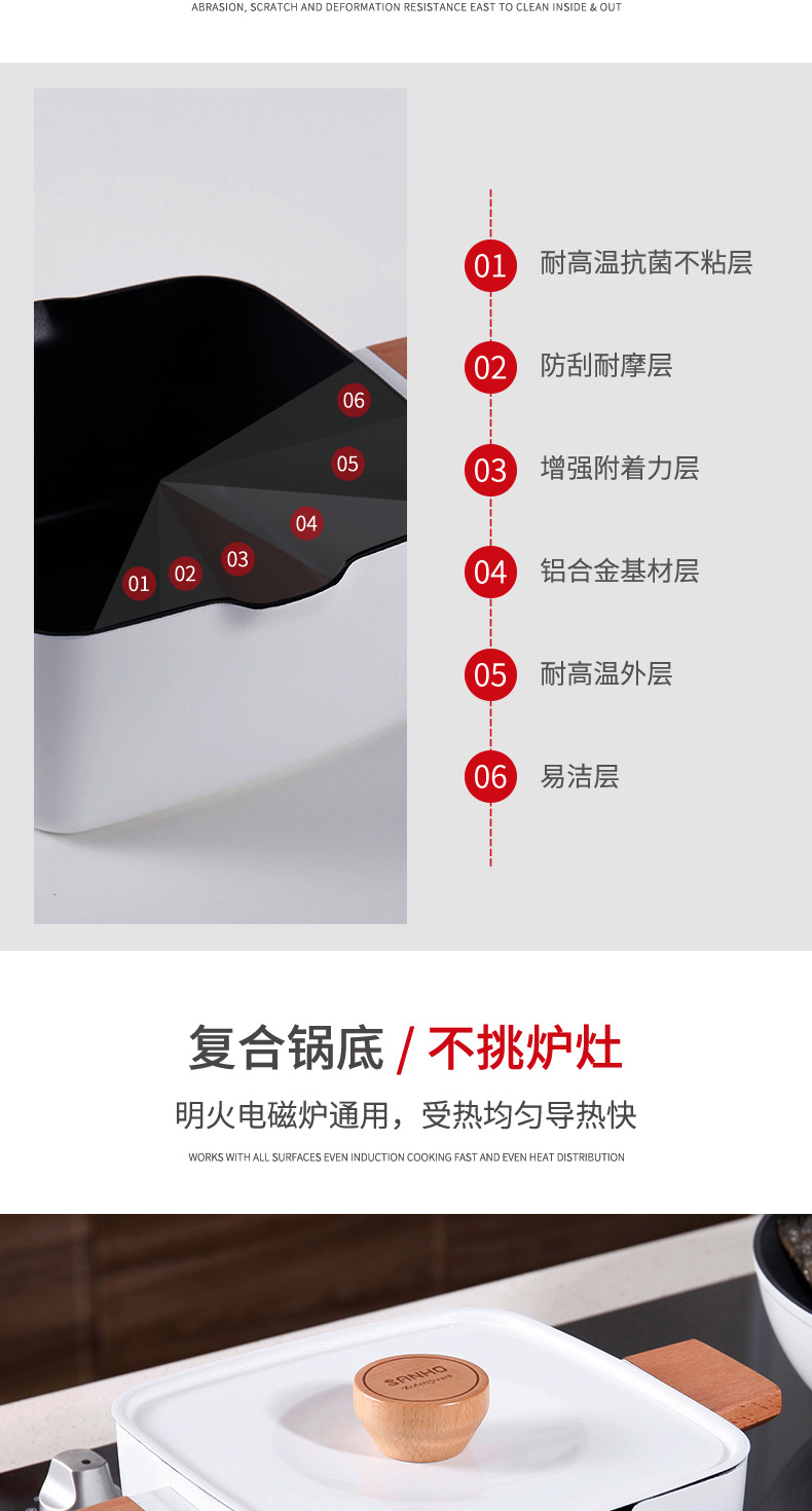 三禾锅具Beautyouth小清新不粘锅汤锅双耳炖锅电磁炉通用家用燃气方锅炖锅 LT2020E1