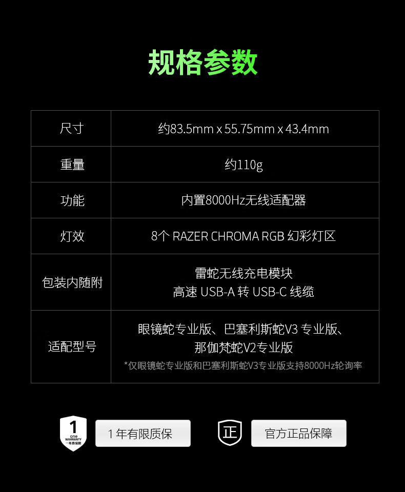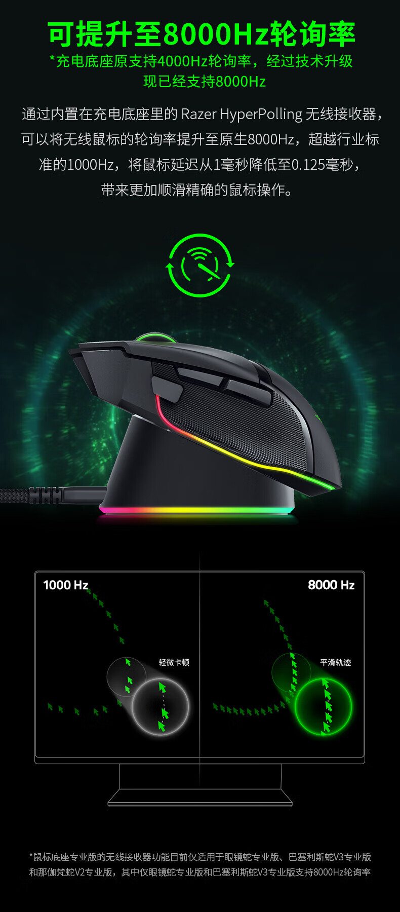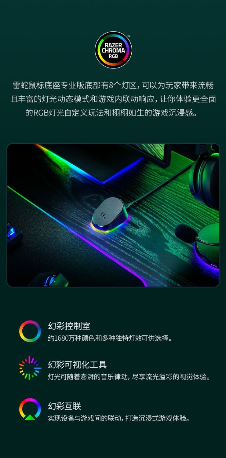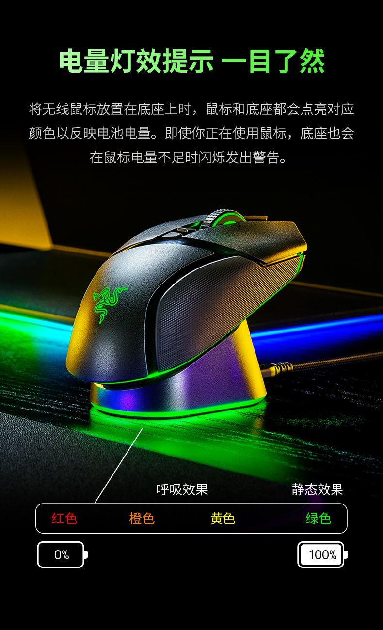Razer雷蛇鼠标RGB充电底座专业版 适配巴塞利斯蛇V3专业版/眼镜蛇专业版 8KHZ【雷蛇官方直营,2年有限质保】