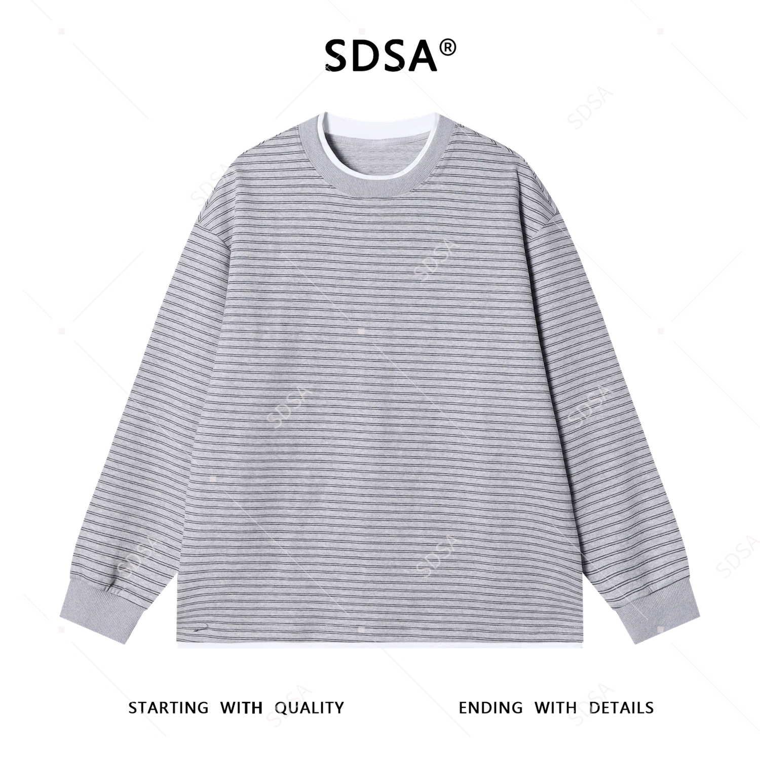 SDSA男士秋冬新款痞帅男装韩版拼接领口撞色条纹圆领卫衣百搭舒适
