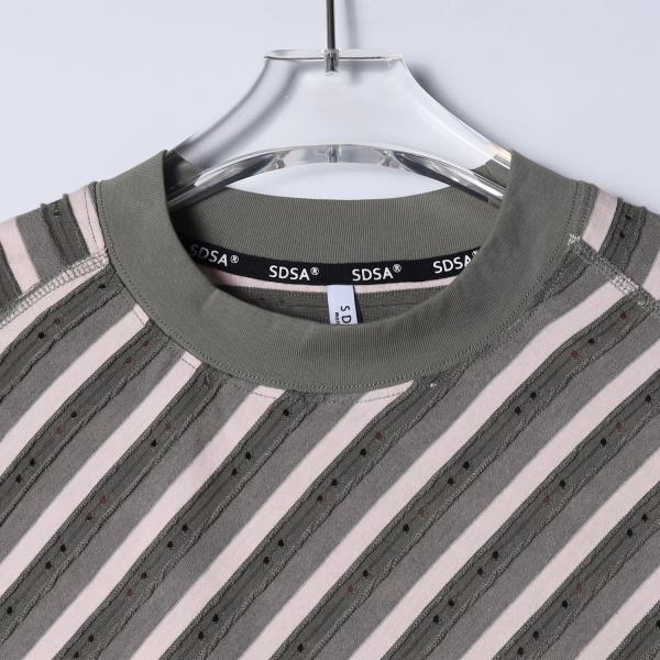 SDSA男装2026新款高贵轻奢潮牌撞色复古斜纹圆领短袖T恤百搭时尚