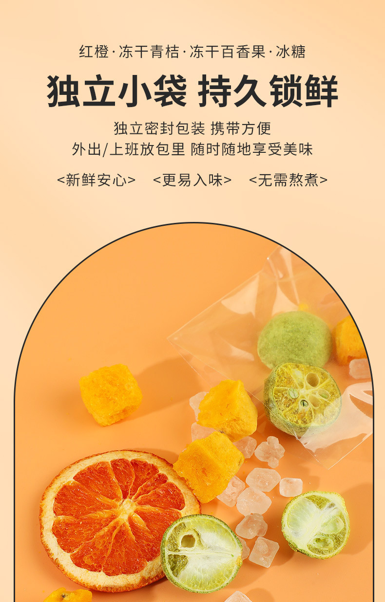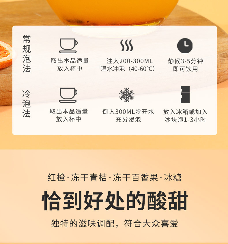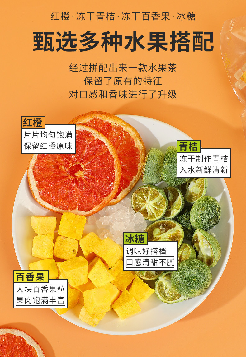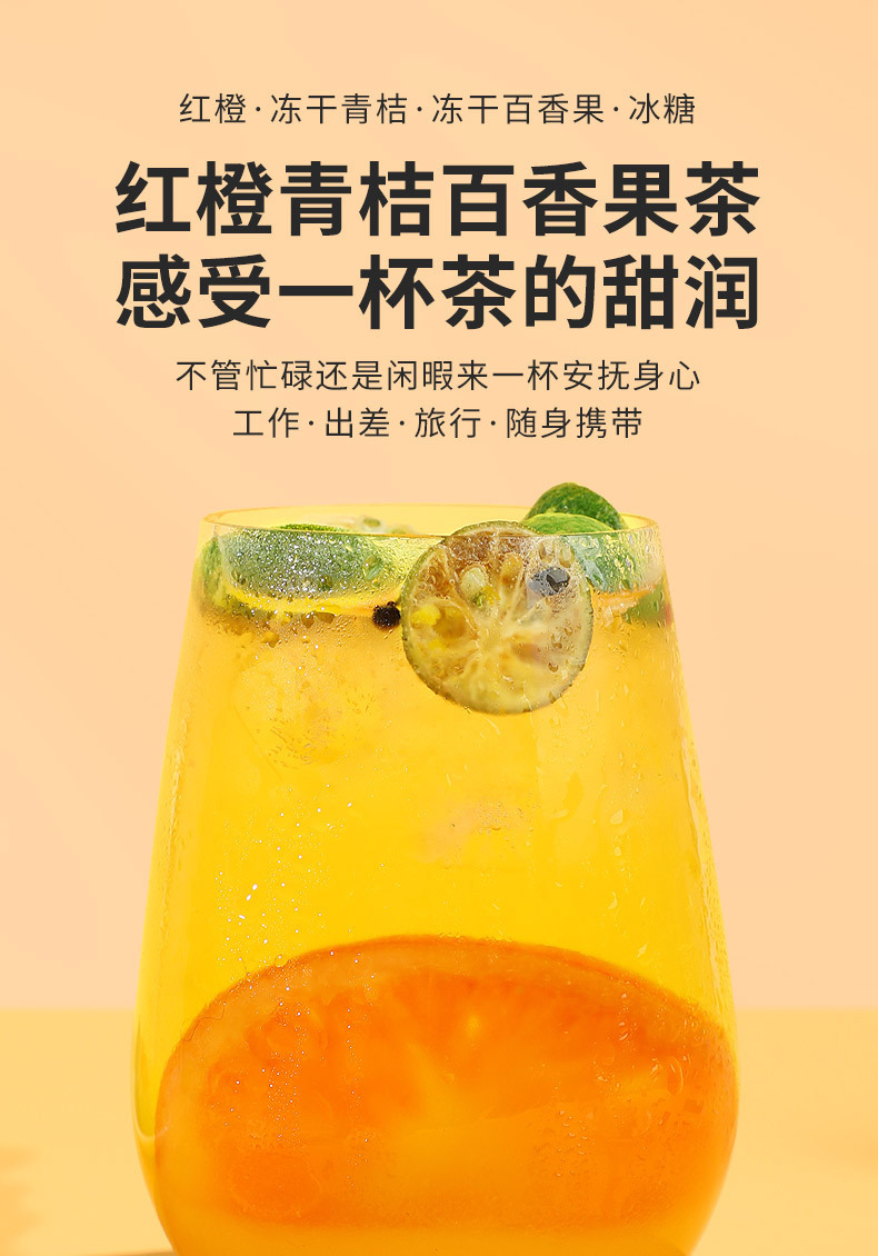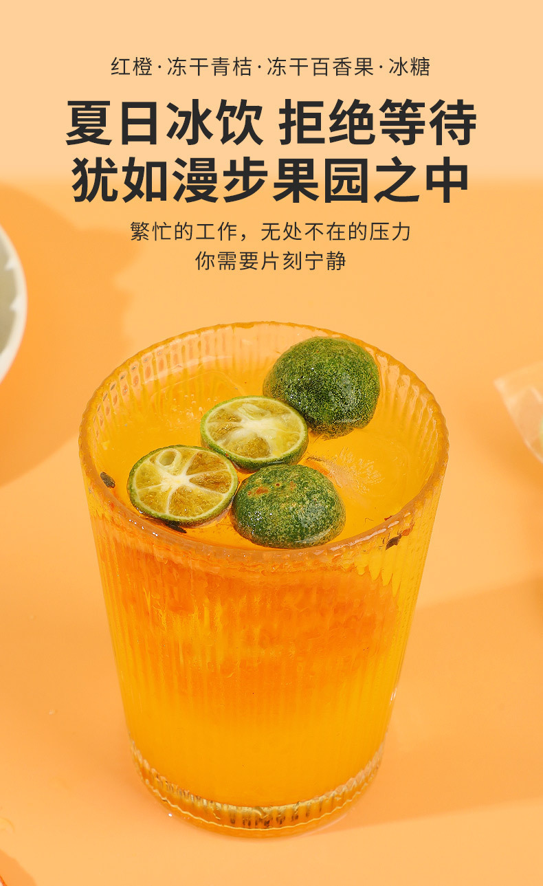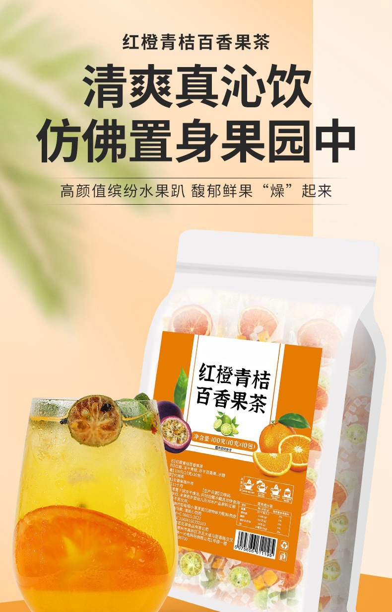 红橙青桔百香果茶 西柚青桔百香果茶 水果茶 夏季花果冷泡茶 酸甜清爽 即泡即饮
