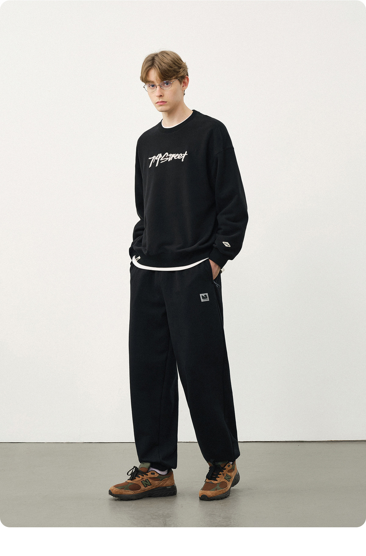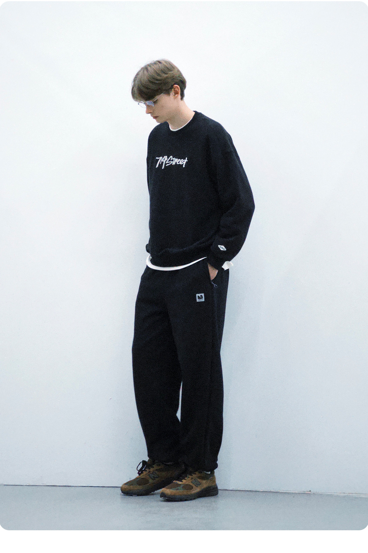714street水洗纯棉宽松休闲裤男2025秋季新款弯刀裤cleanfit长裤