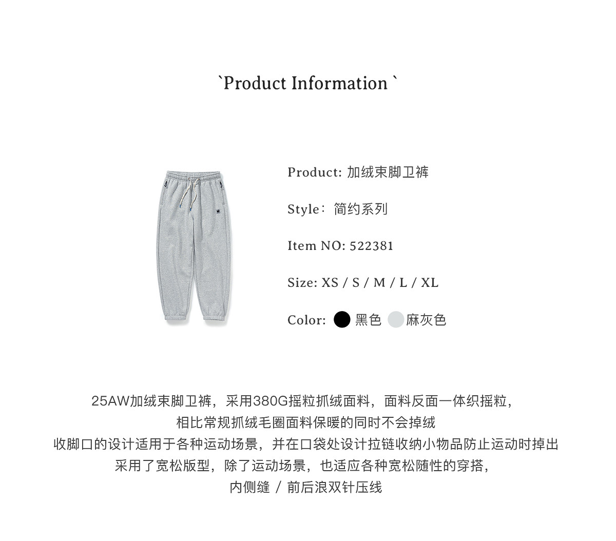 714street加绒束脚休闲裤美式运动灰色卫裤男款2025冬季直筒长裤