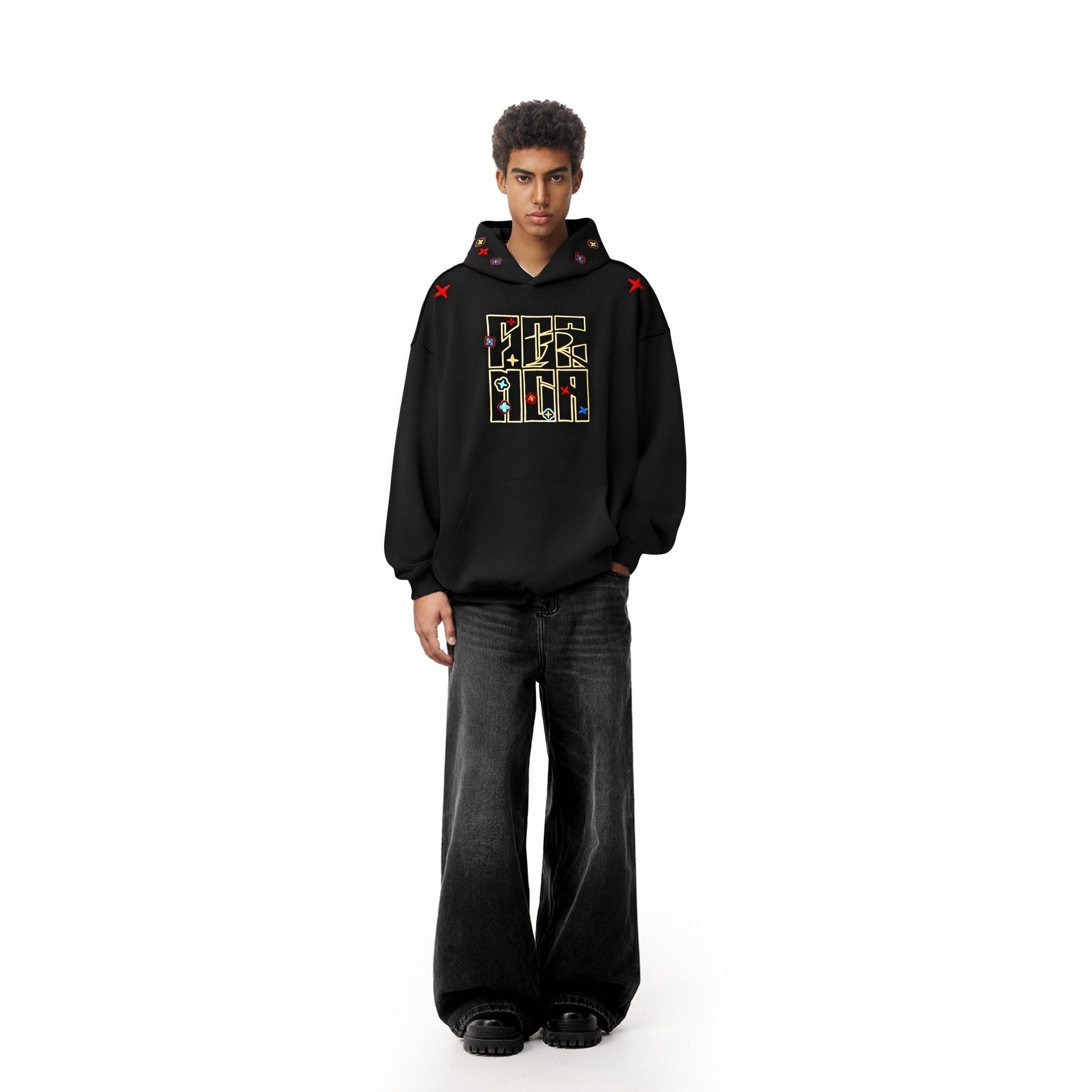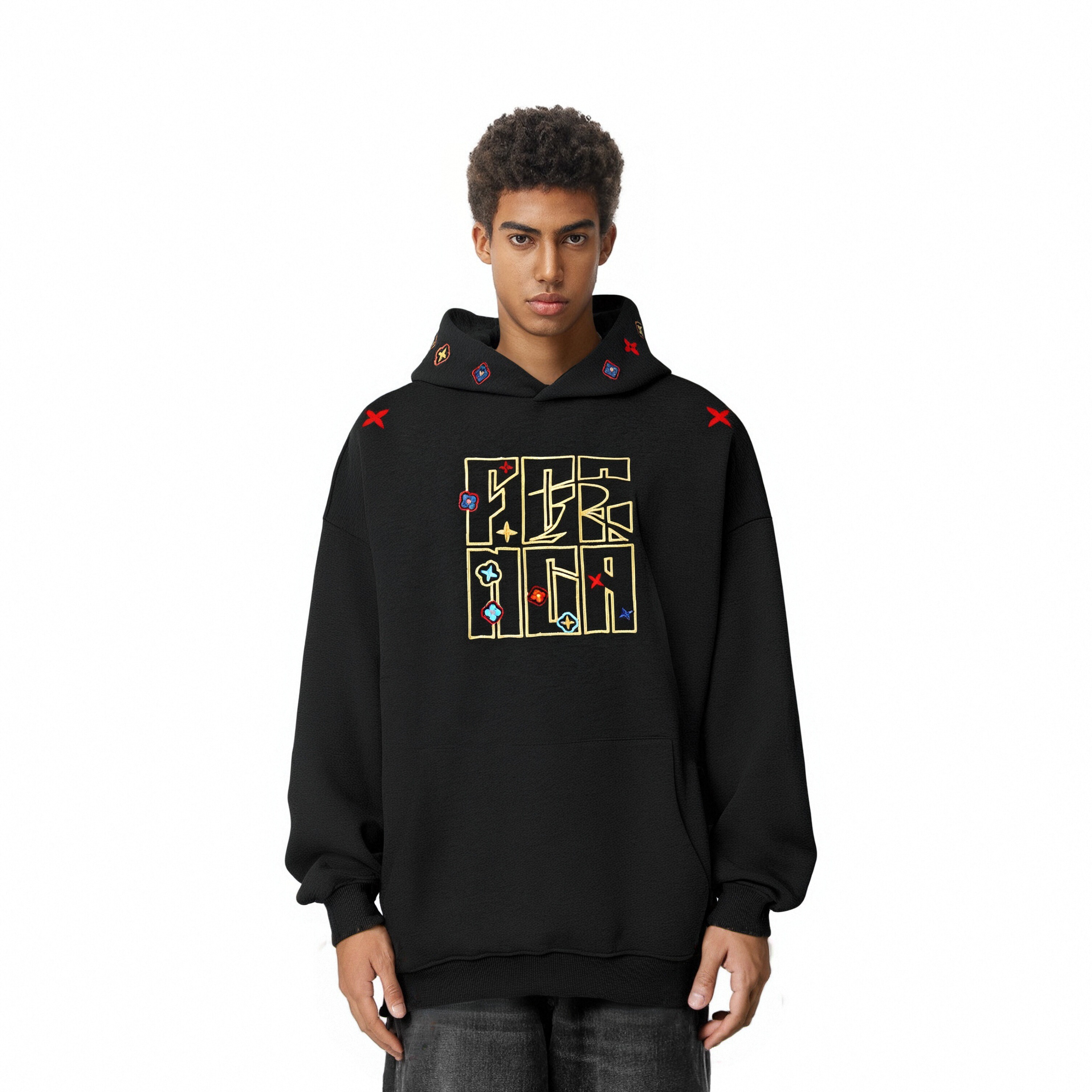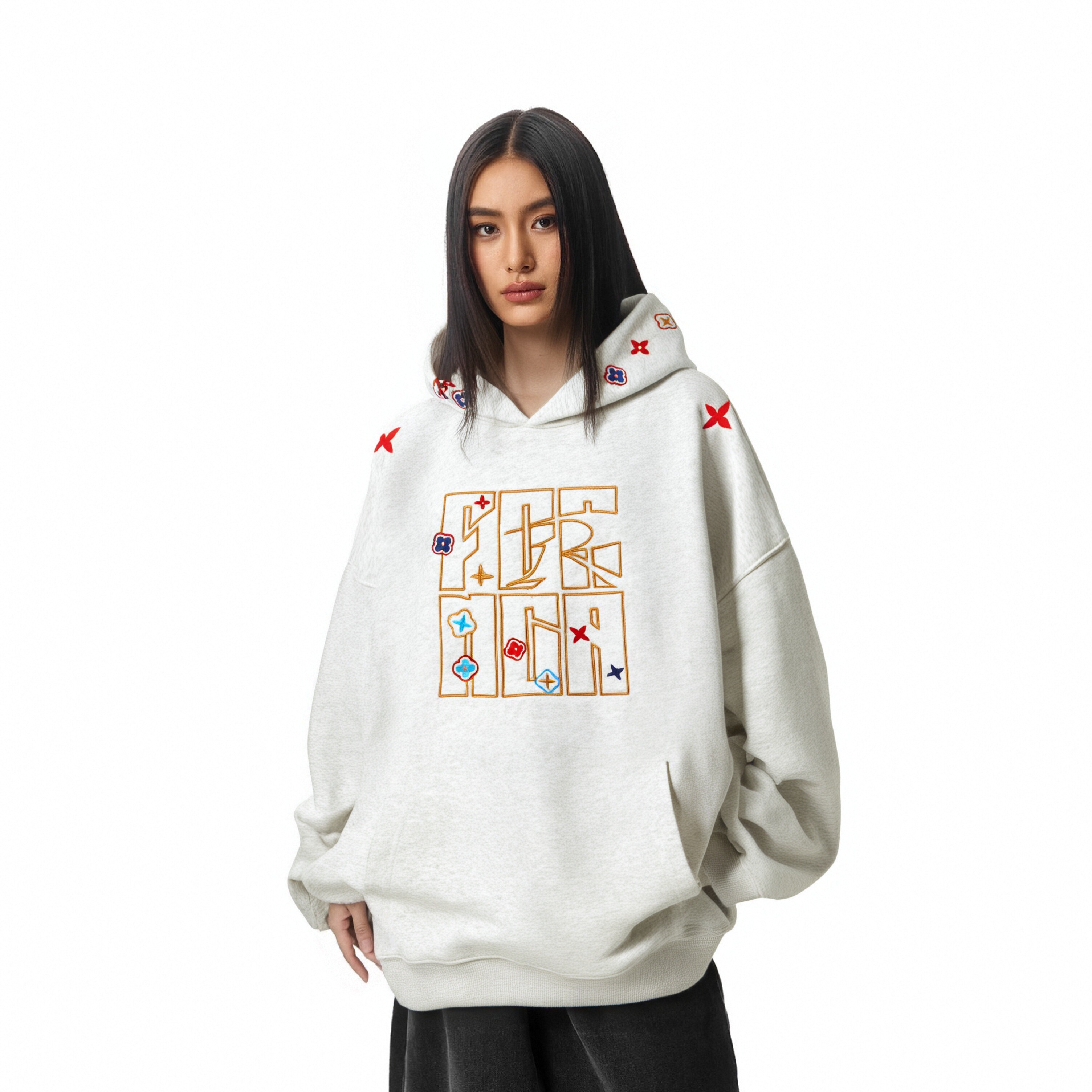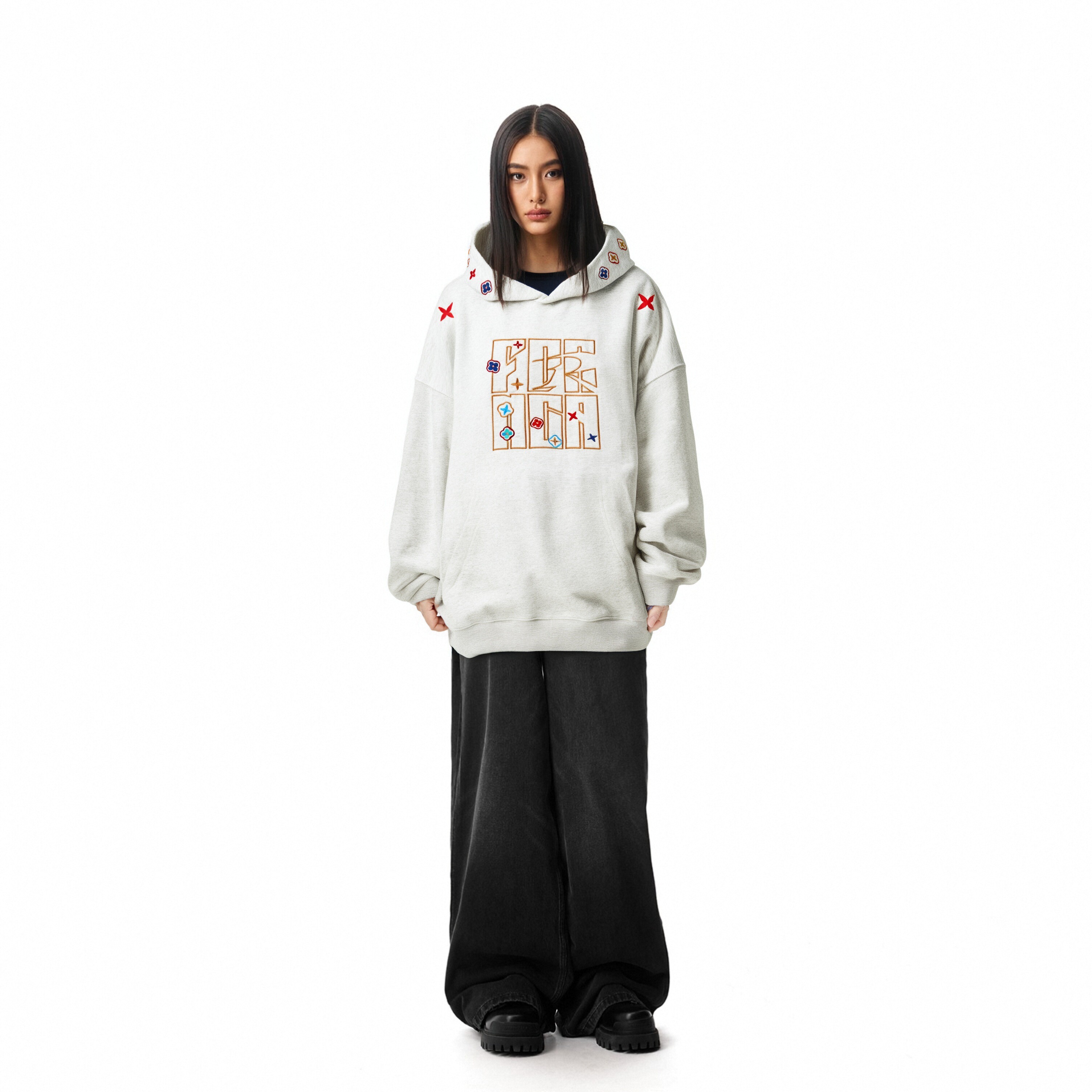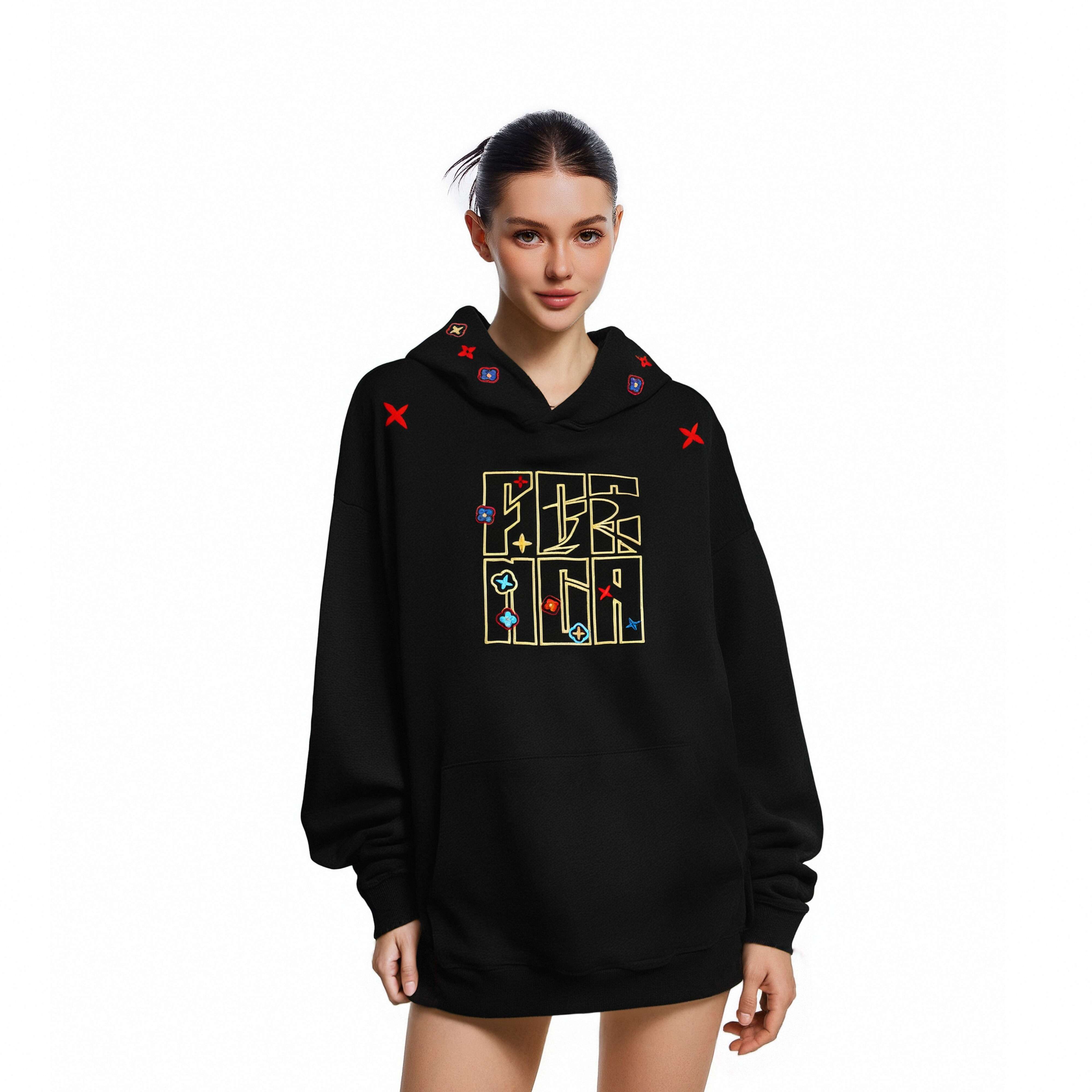 FDR官方店 字母刺绣连帽套头薄绒卫衣外套男女秋季潮牌情侣装上衣