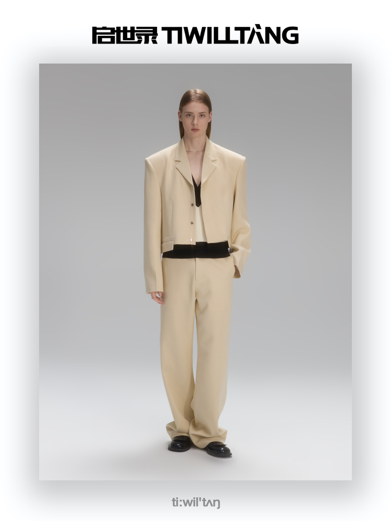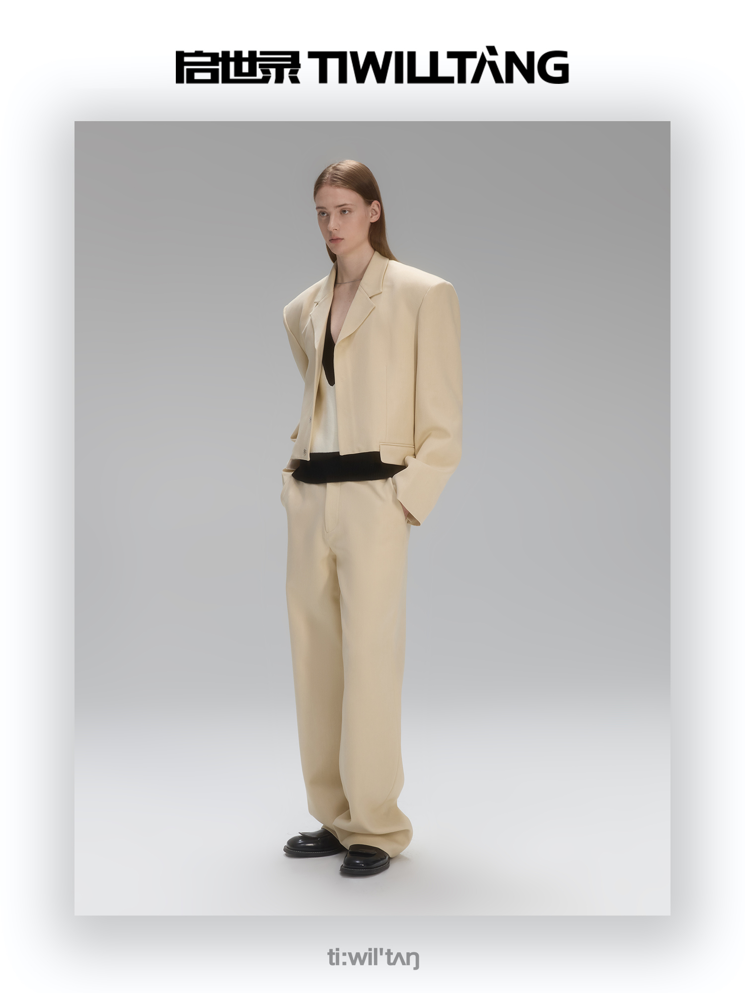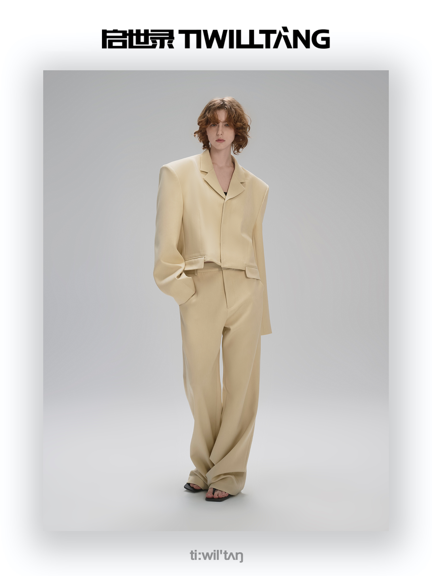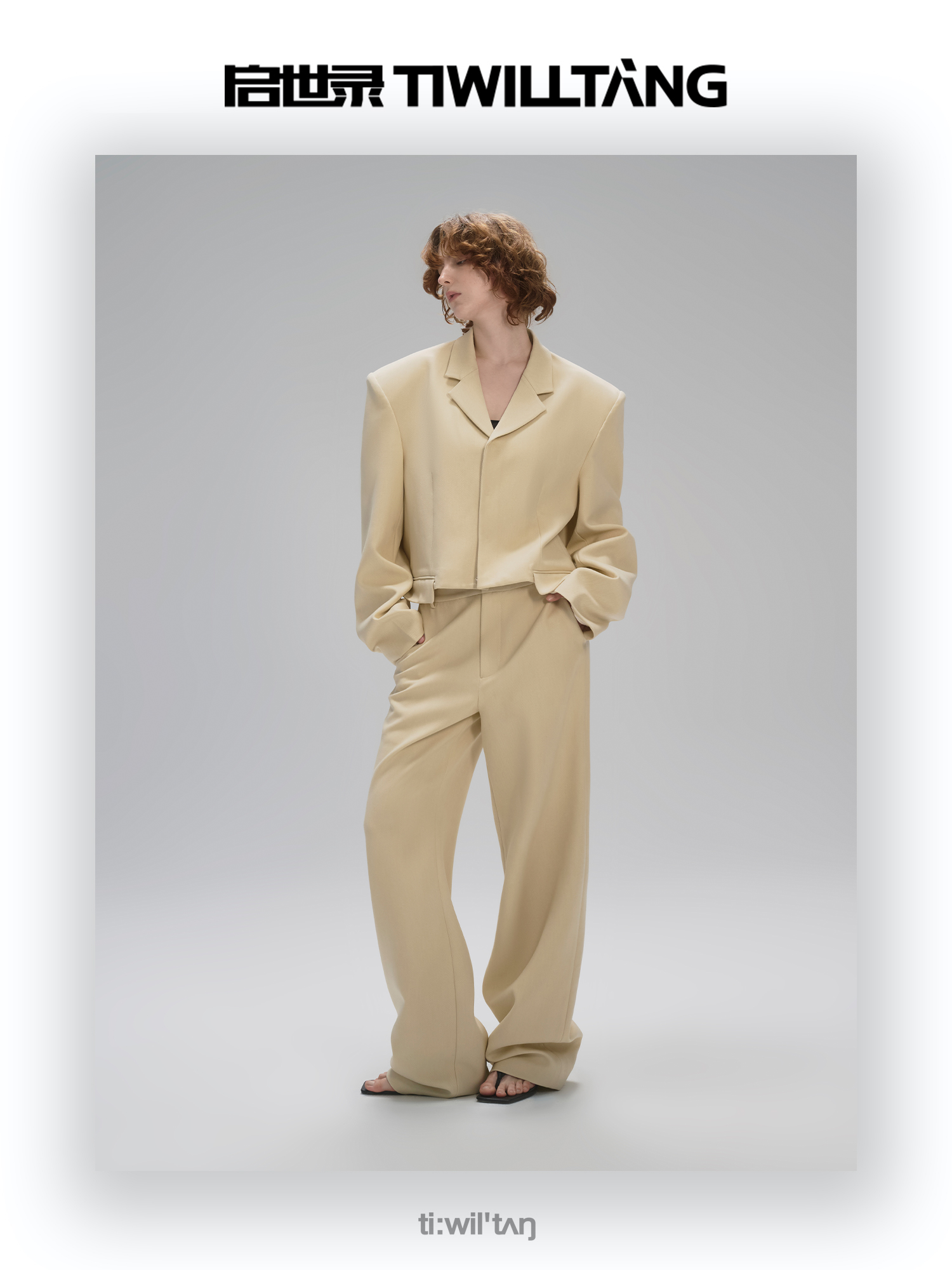 启世录TIWILLTANG“希御漫际”短款挺阔隐闪料增高版外套长裤套装