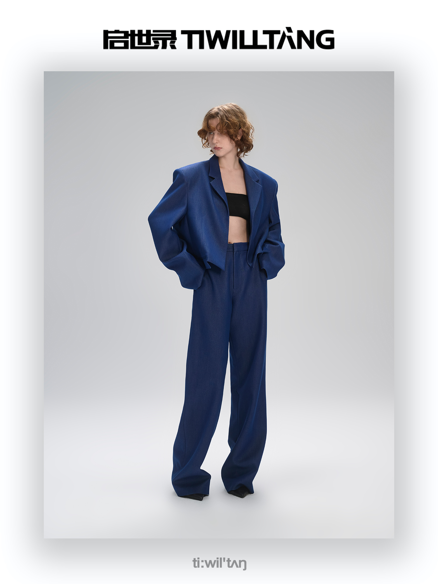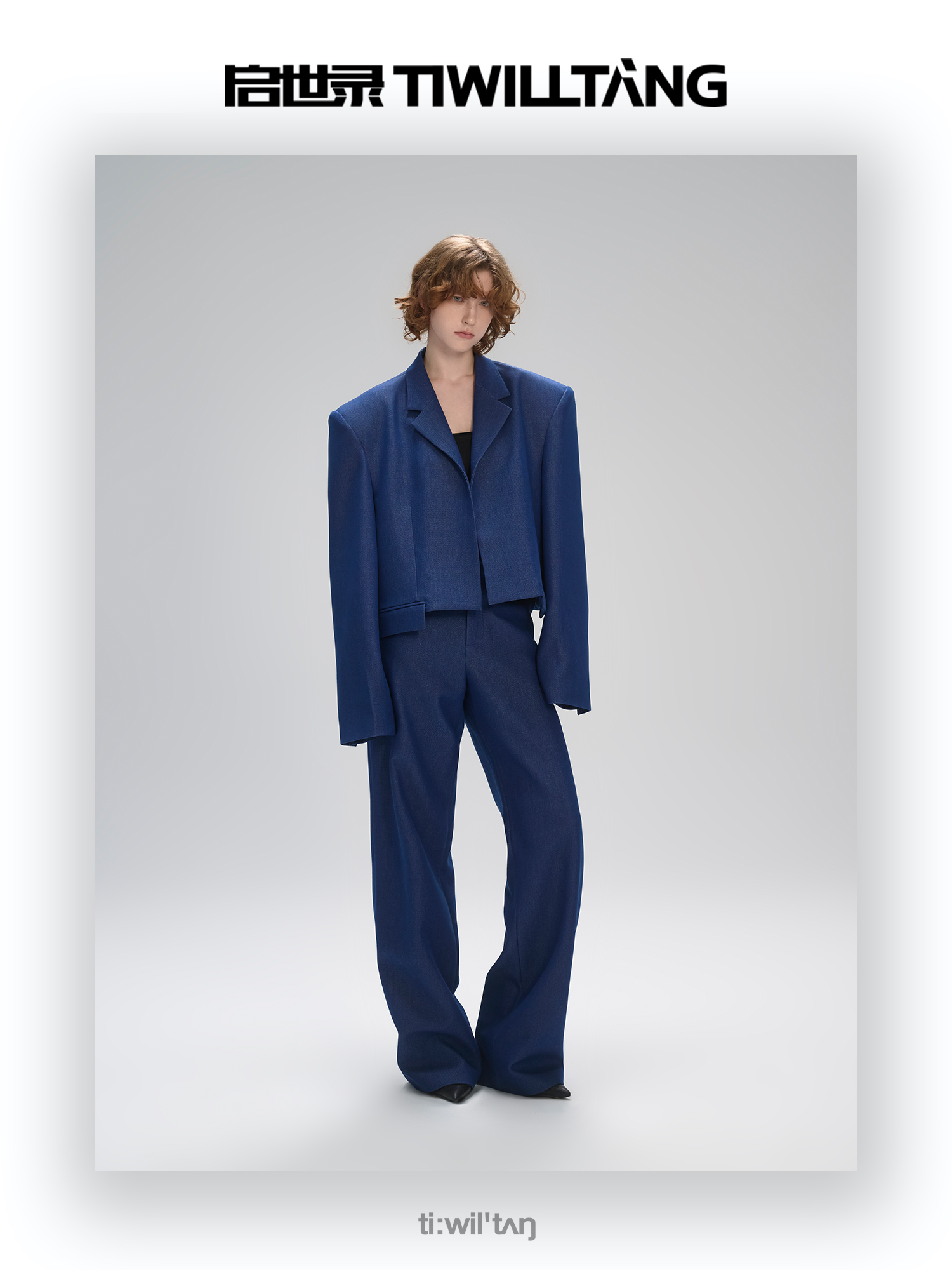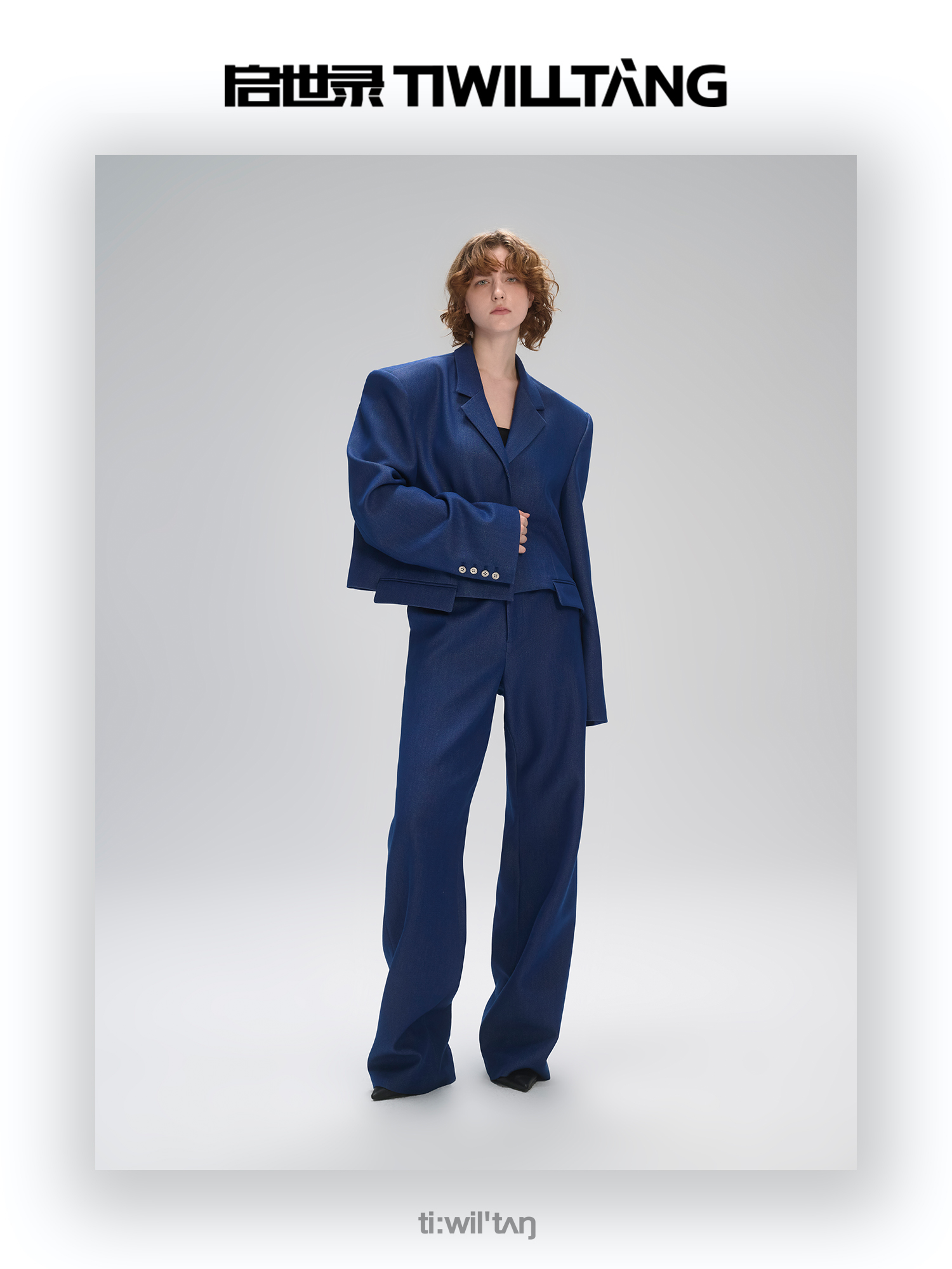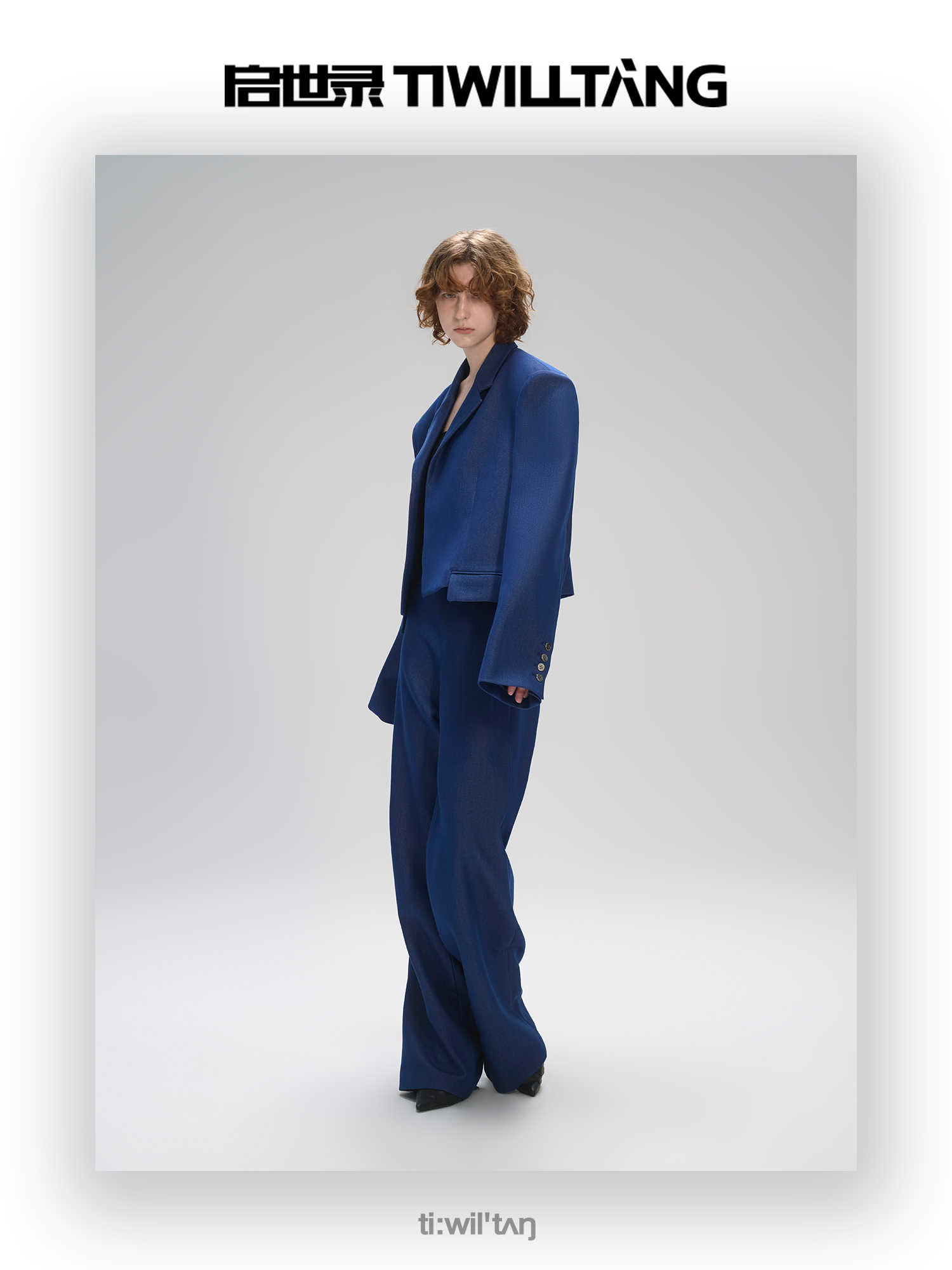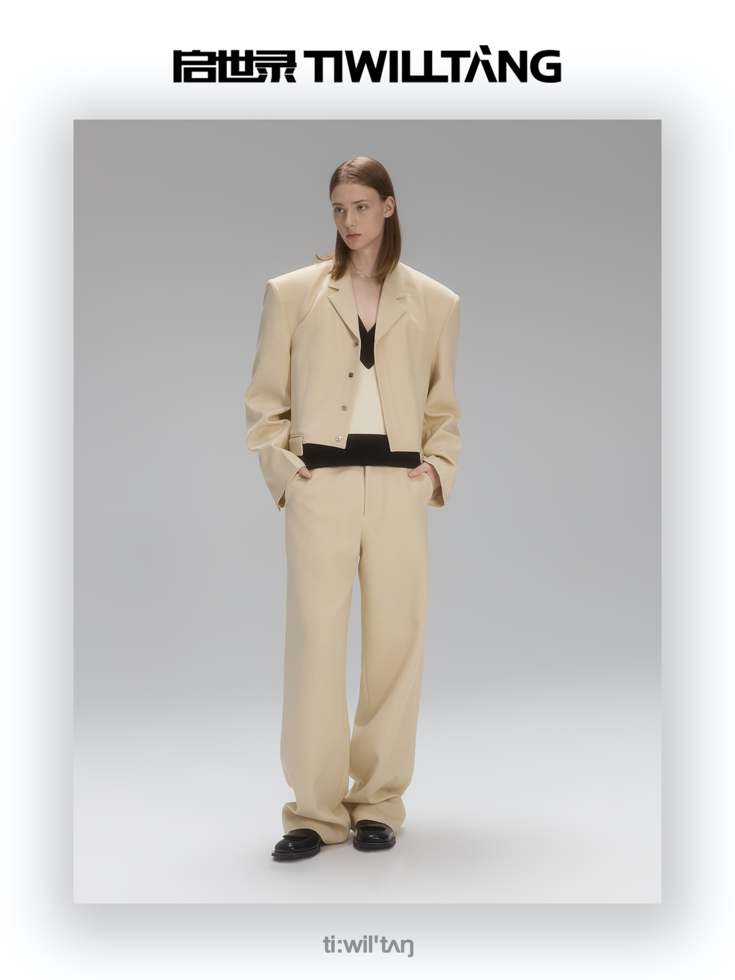 启世录TIWILLTANG“希御漫际”短款挺阔隐闪料增高版外套长裤套装