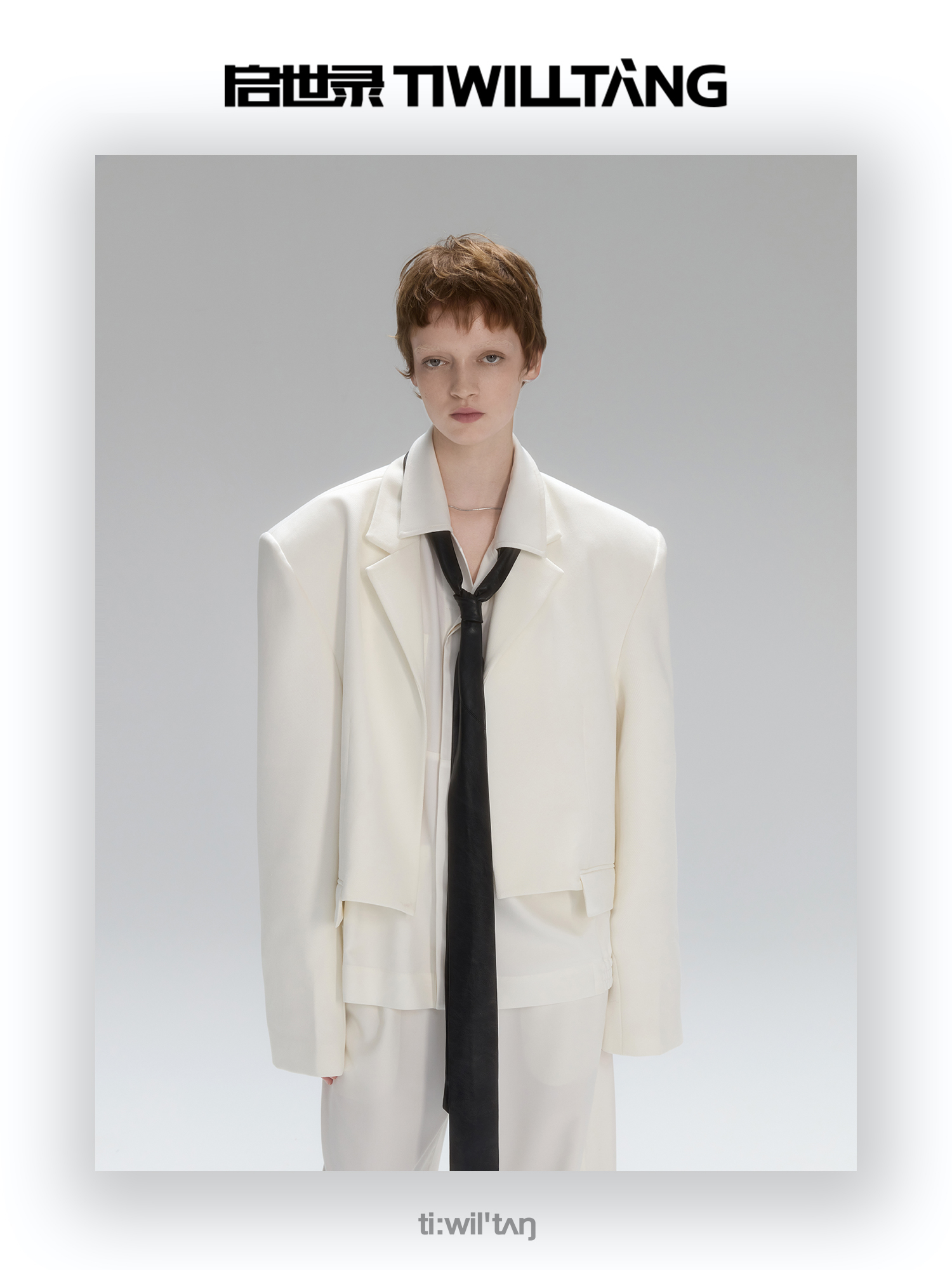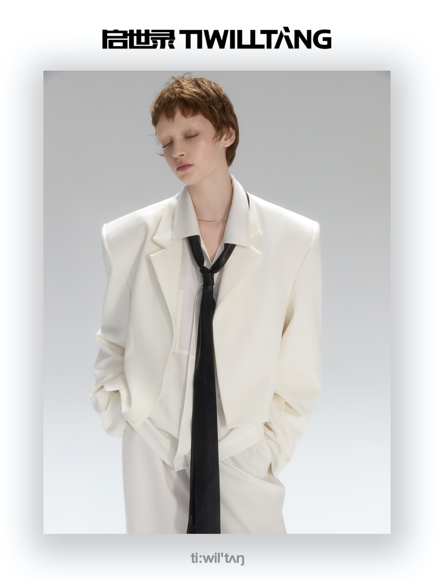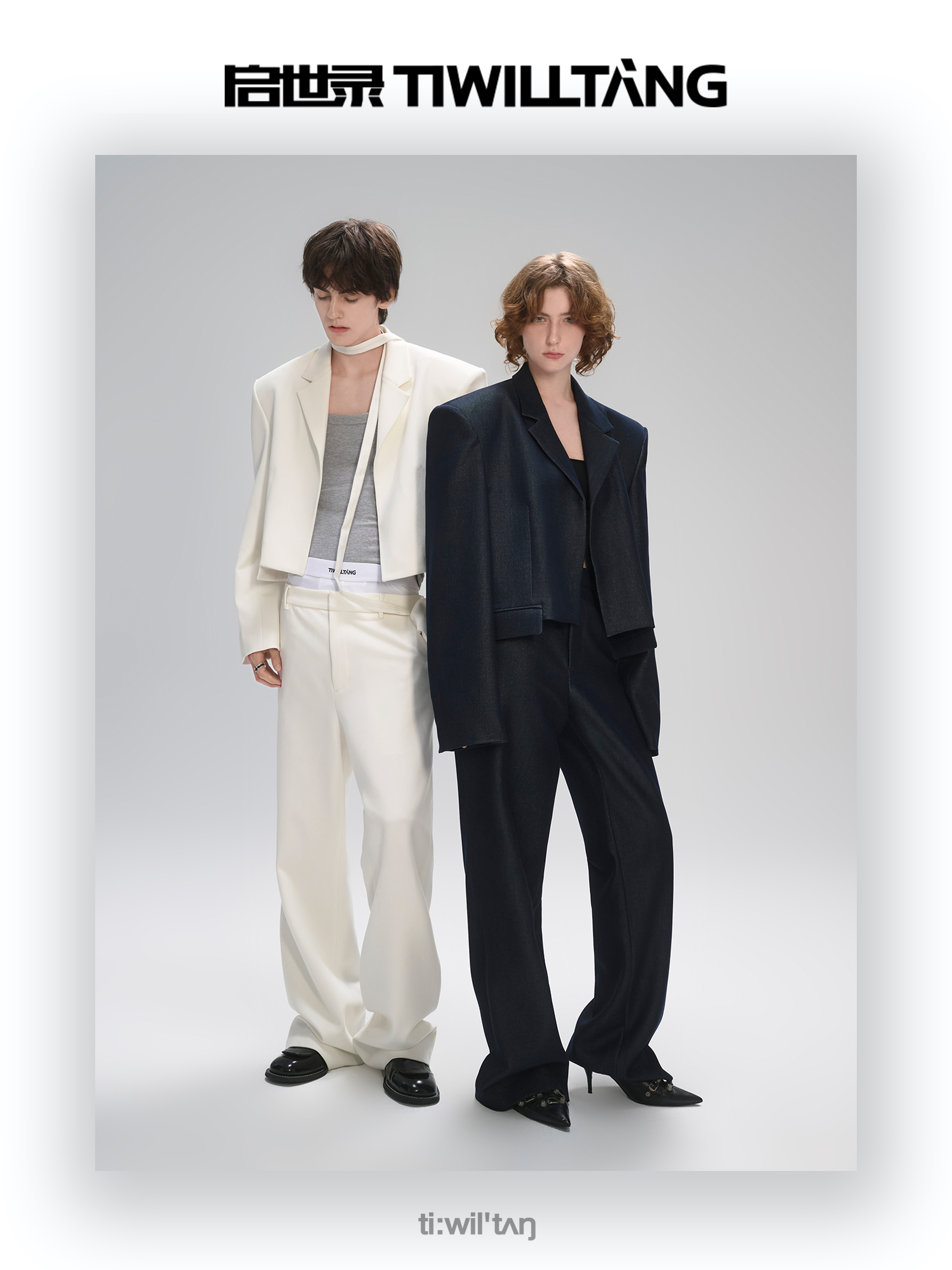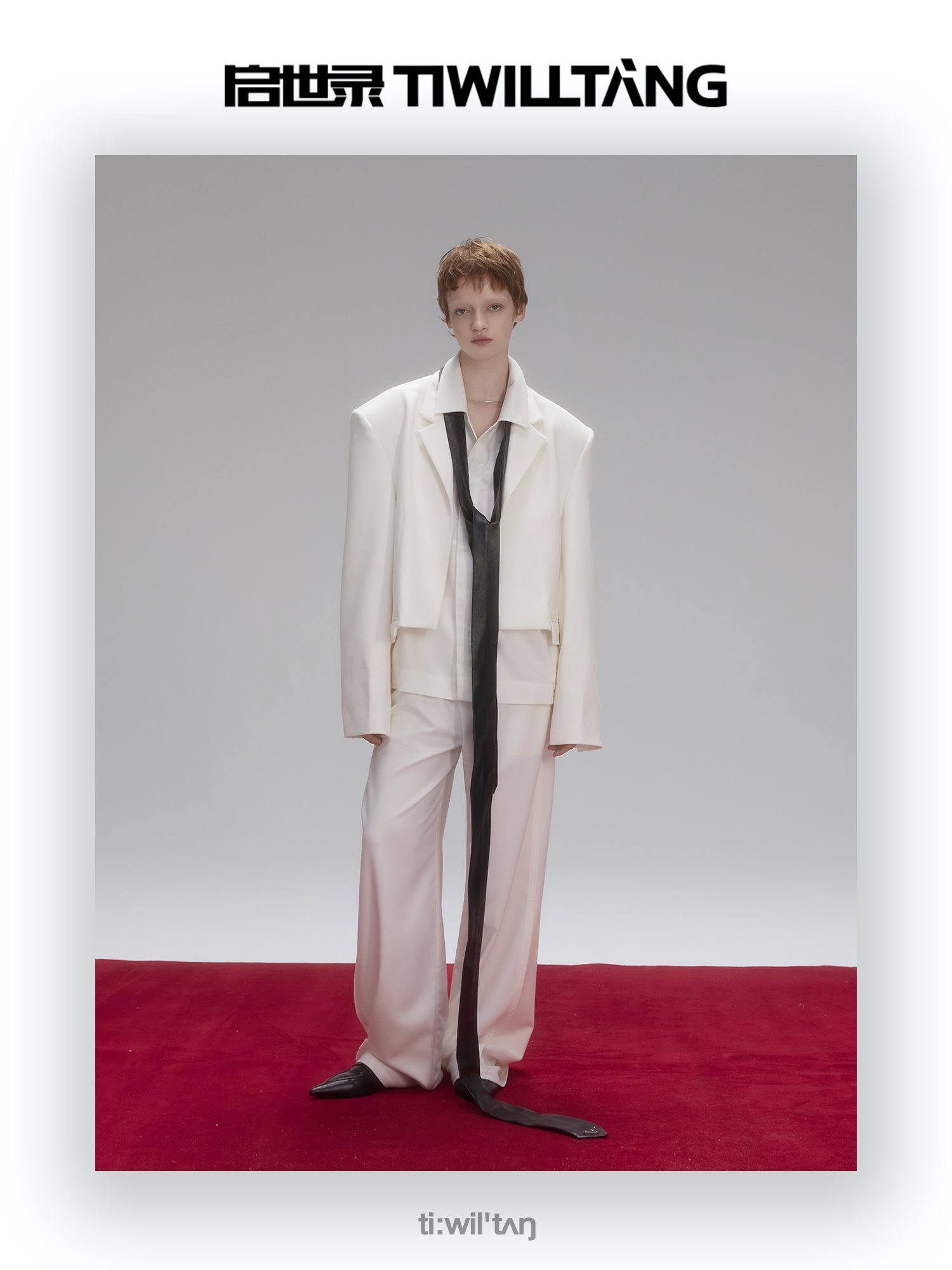 启世录TIWILLTANG“希御漫际”短款挺阔隐闪料增高版外套长裤套装