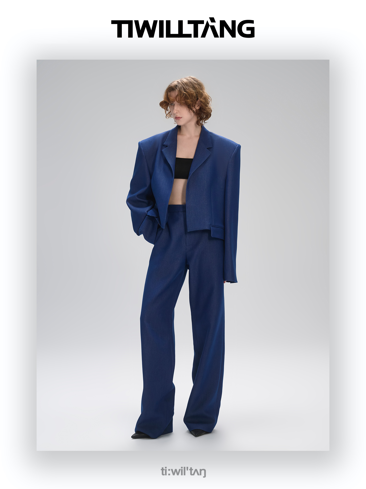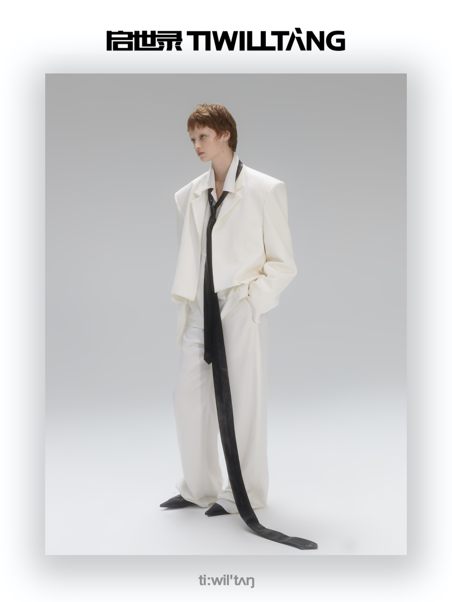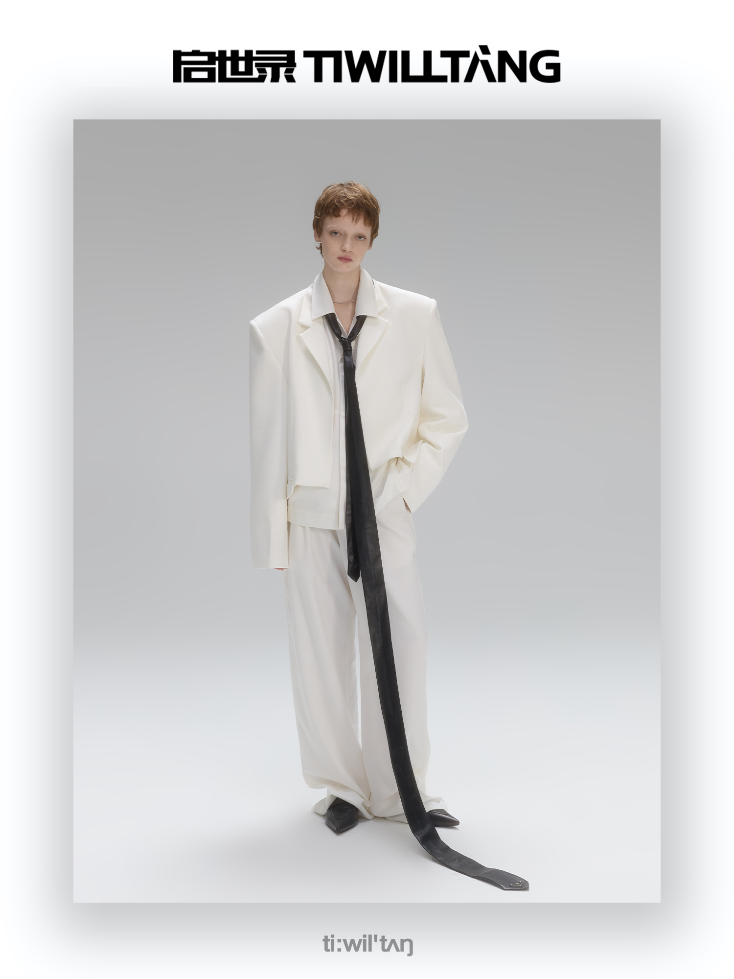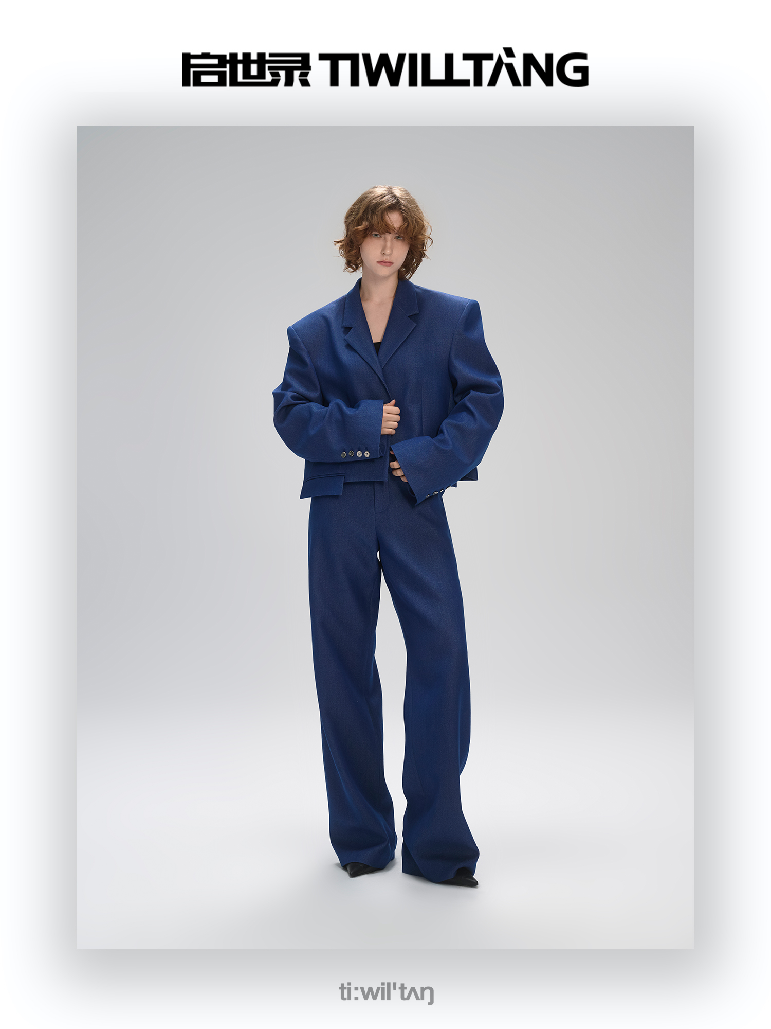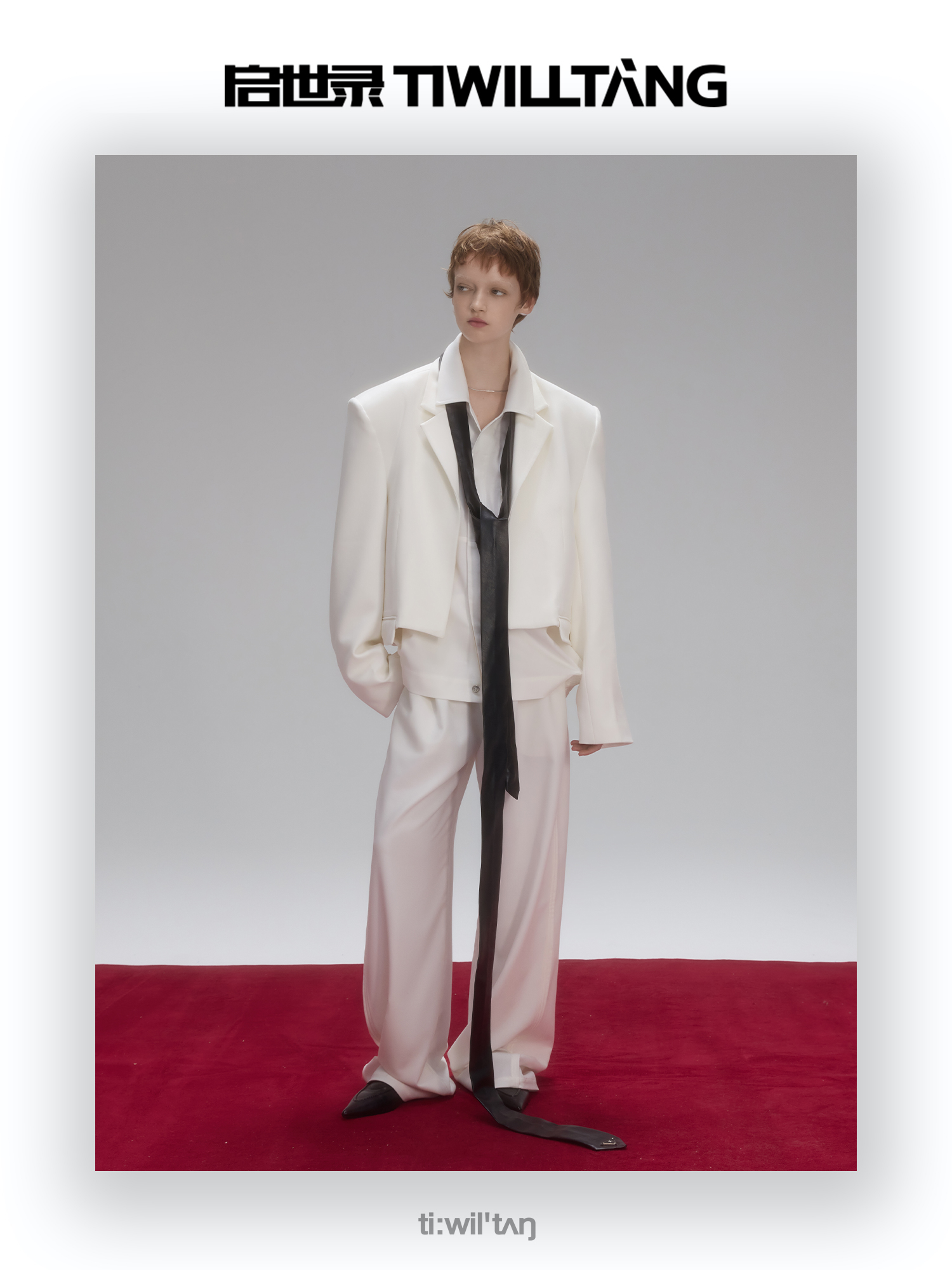 启世录TIWILLTANG“希御漫际”短款挺阔隐闪料增高版外套长裤套装