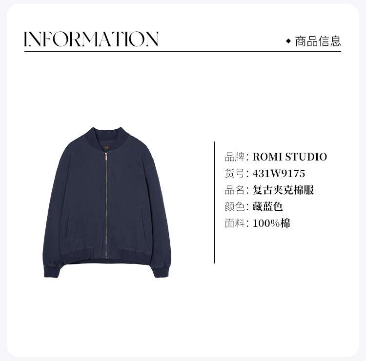 ROMI STUDIO“美式复古”*棉雾面磨毛立领宽松夹棉外套 431W9175