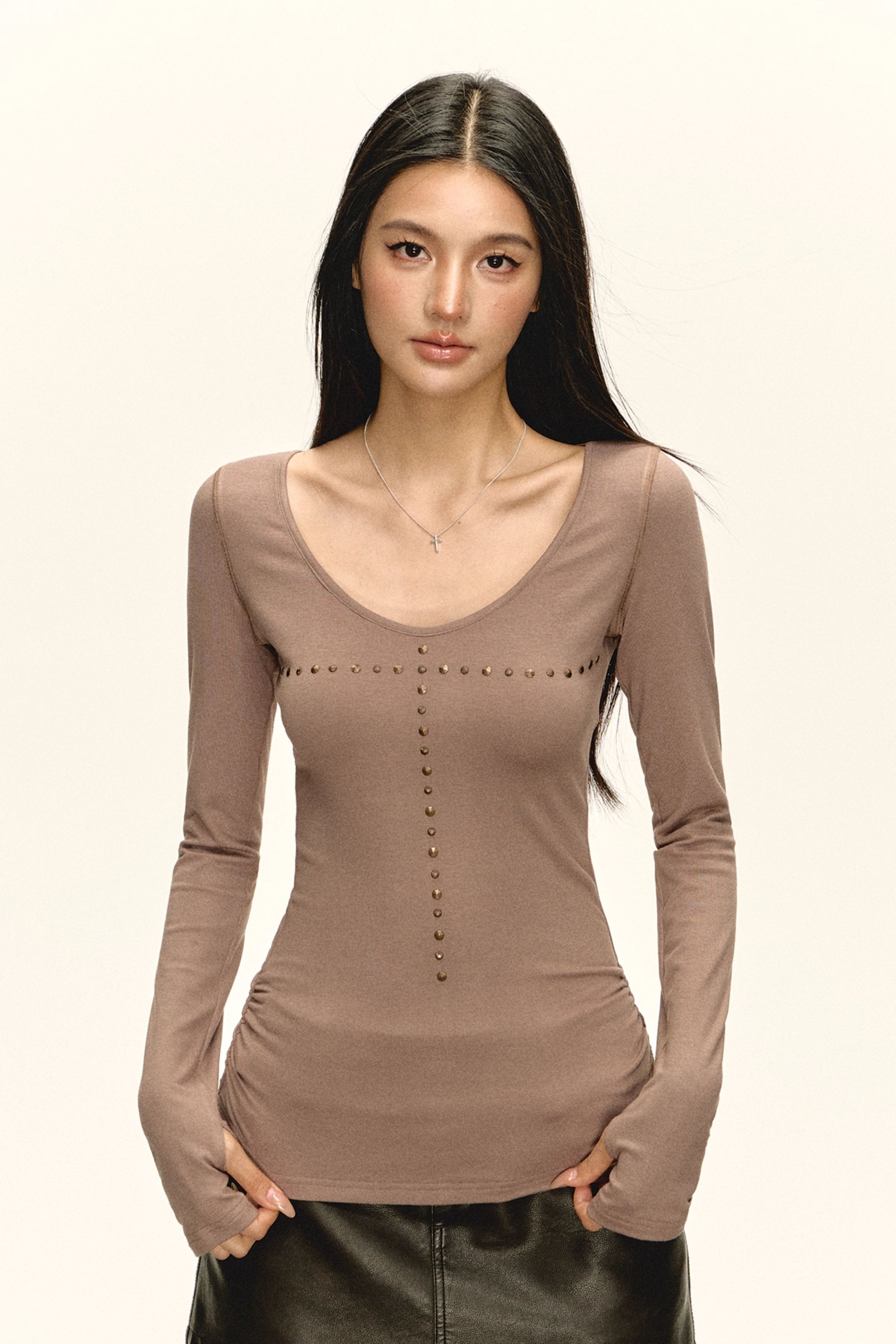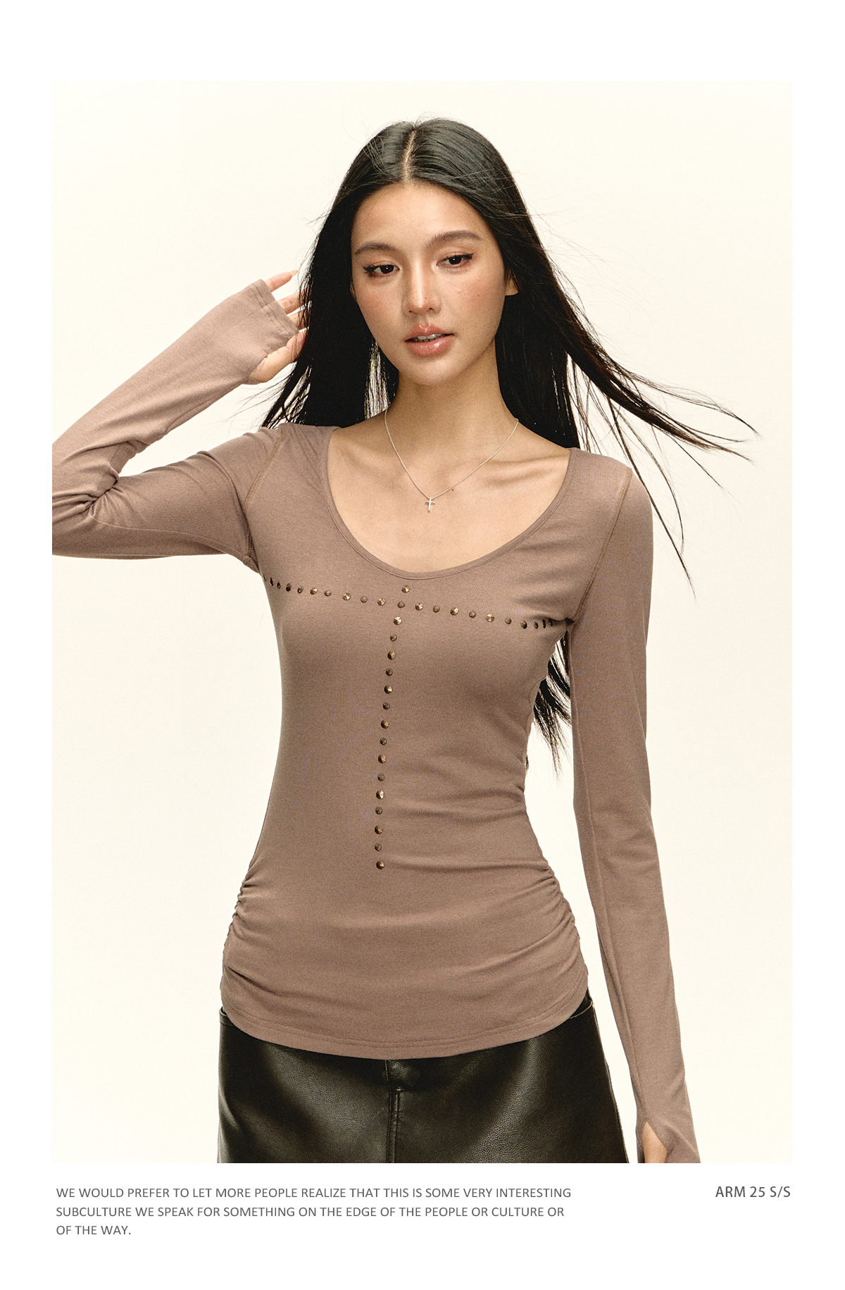 Ariseism美式复古设计感长袖T恤女秋季新款修身打底上衣