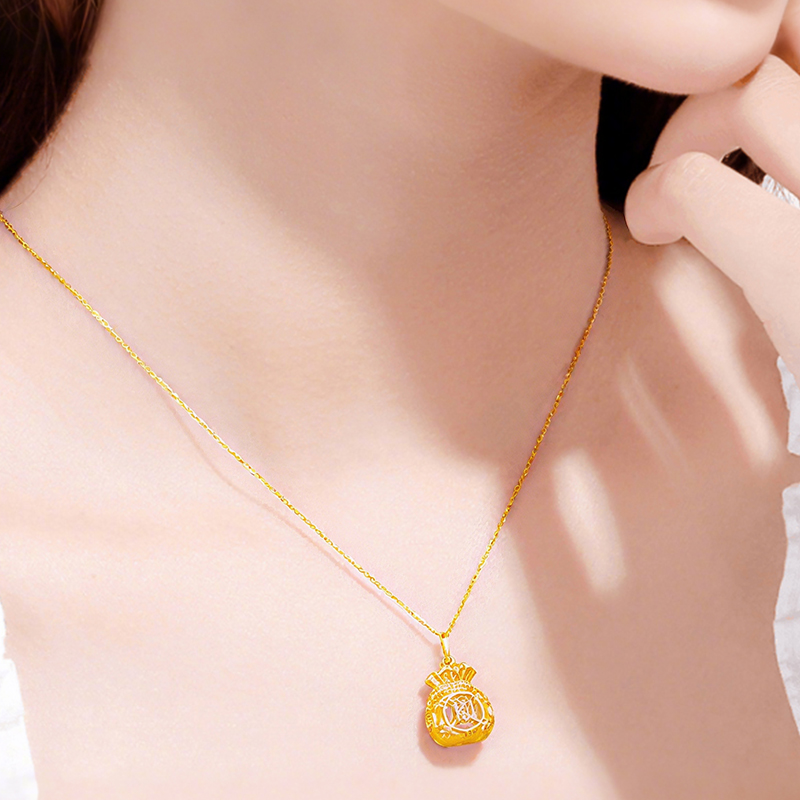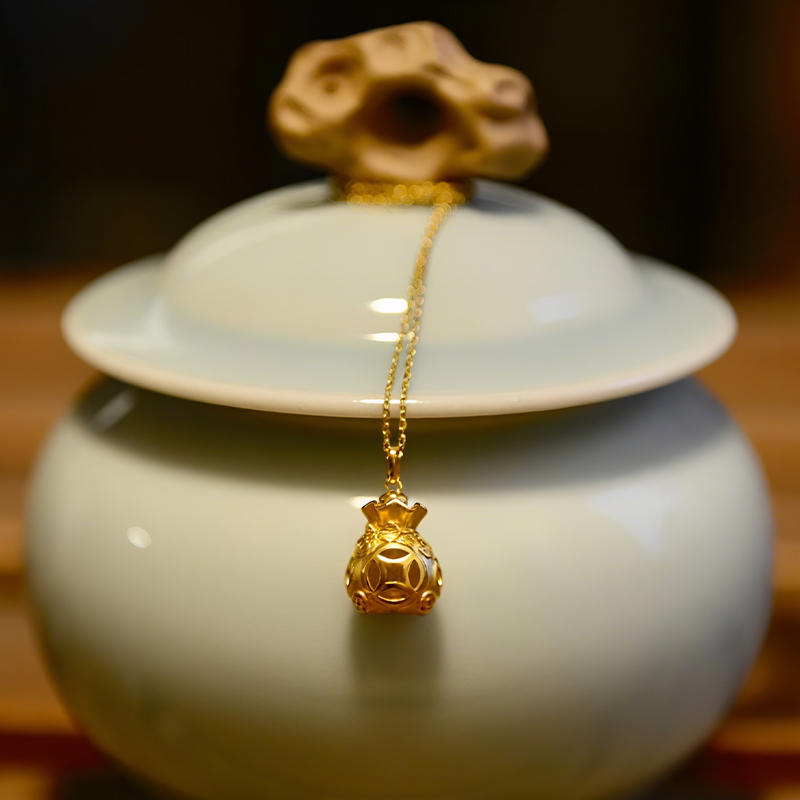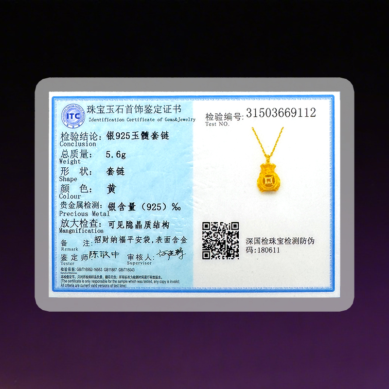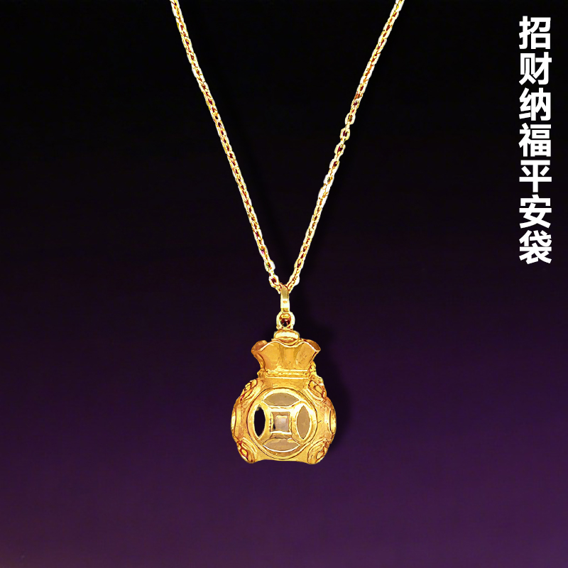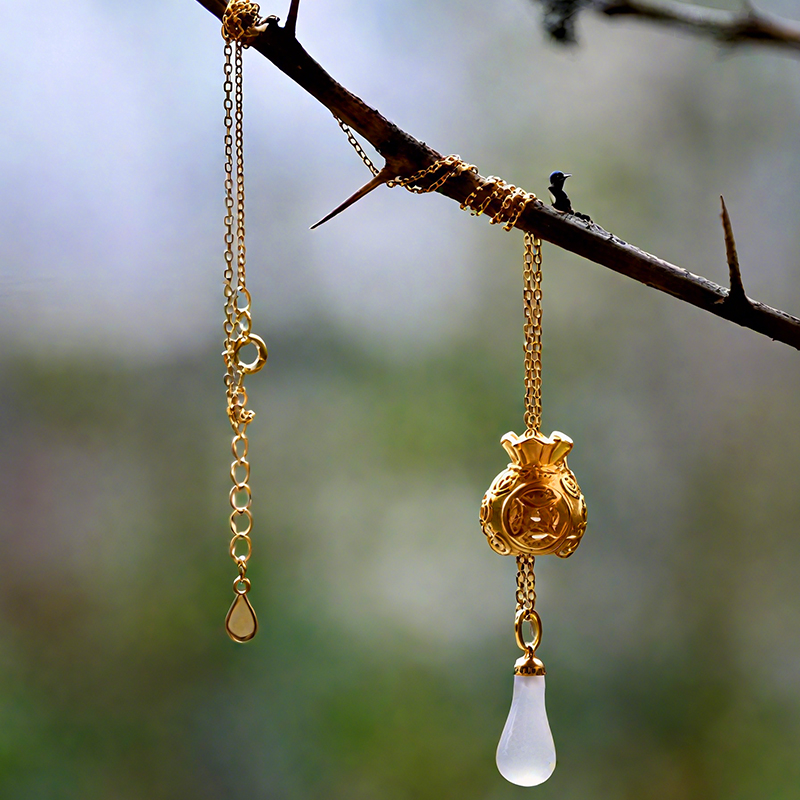 福袋玉髓银项链 一款两戴 招财纳福平安袋 带鉴定证书