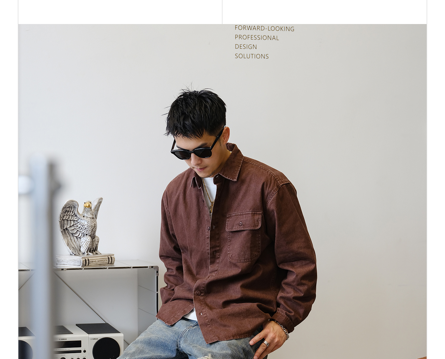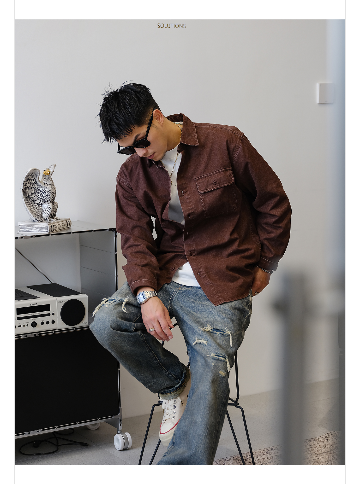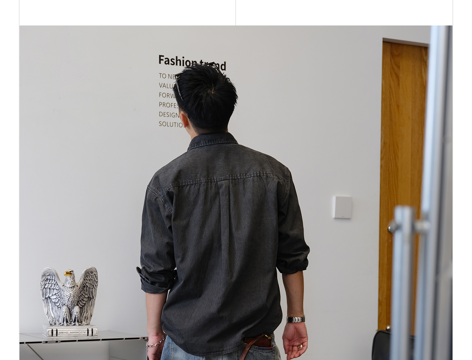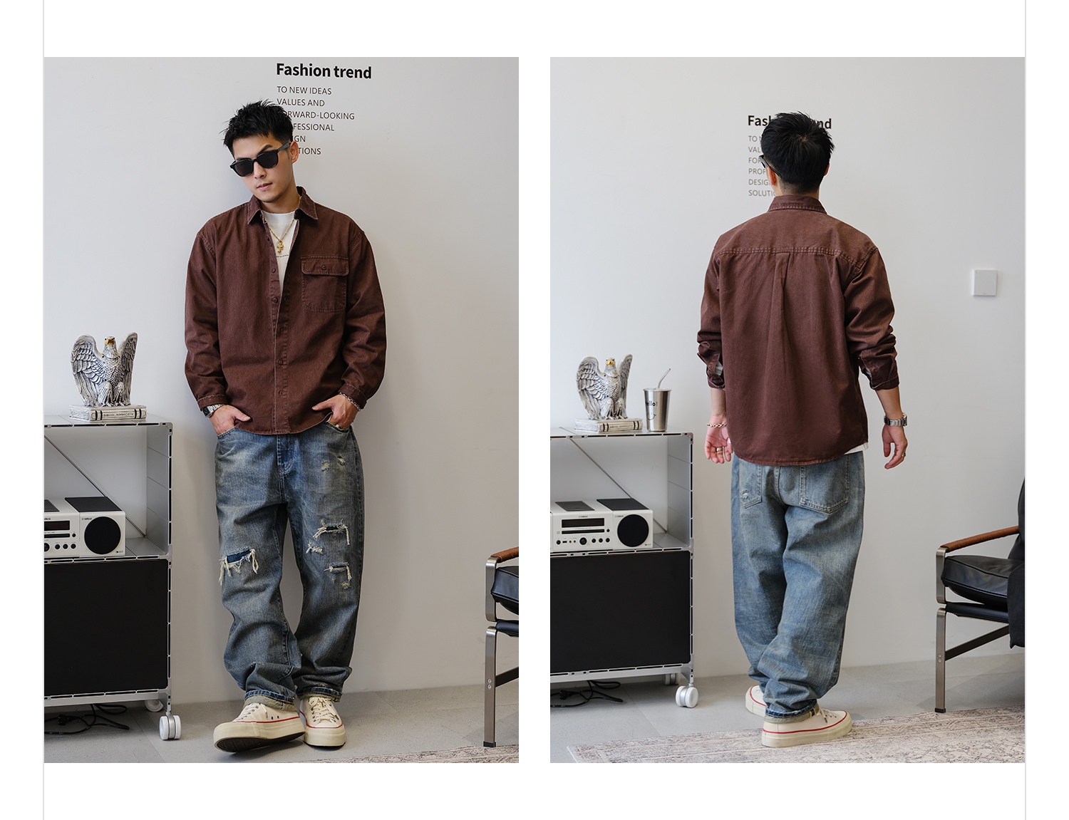 徐太浪240g日系复古牛仔长袖衬衫男秋季2025新款纯棉方领衬衣外套