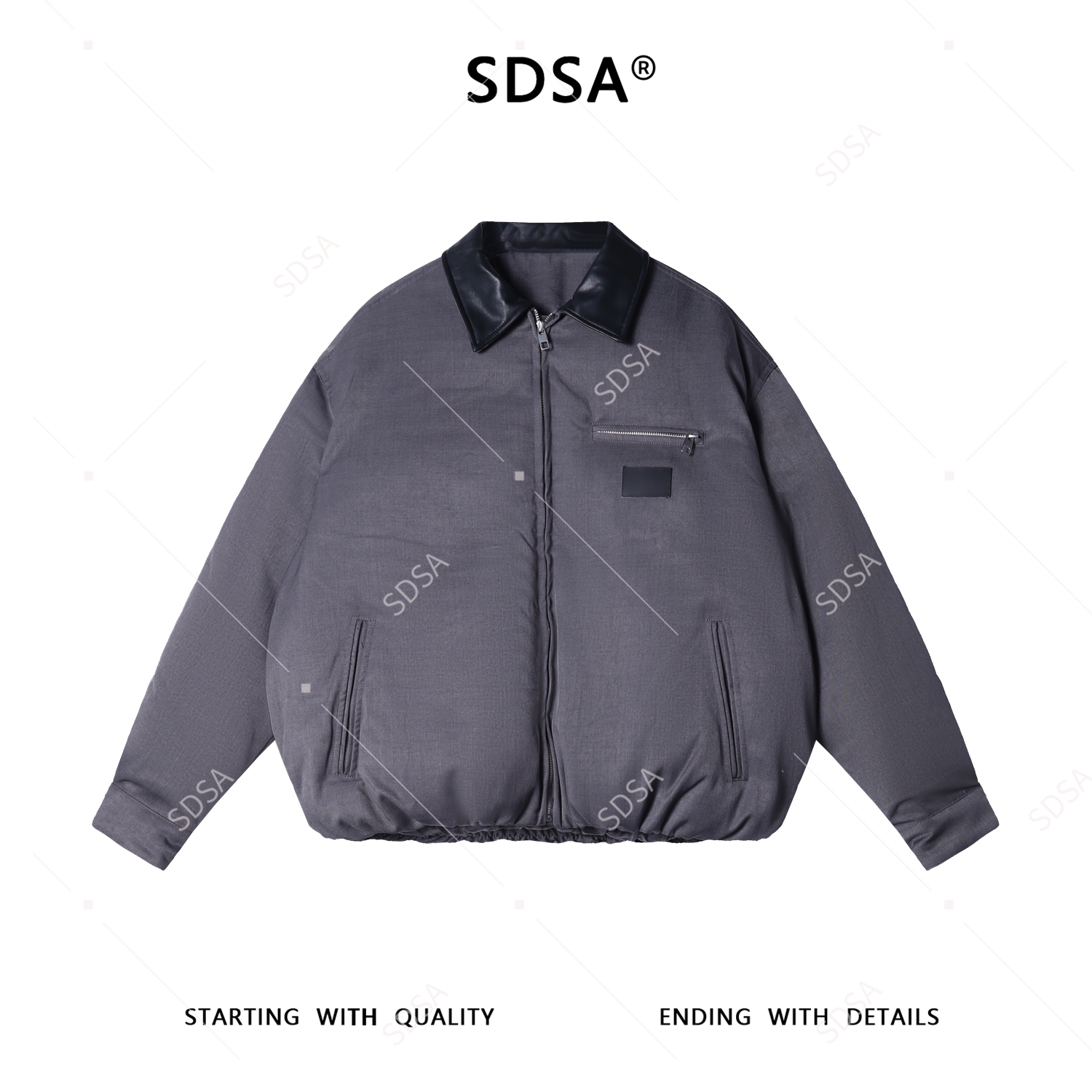 553SDSA男士秋冬新款痞帅男装美式复古翻领拼接棉服外套拉链潮牌时尚
