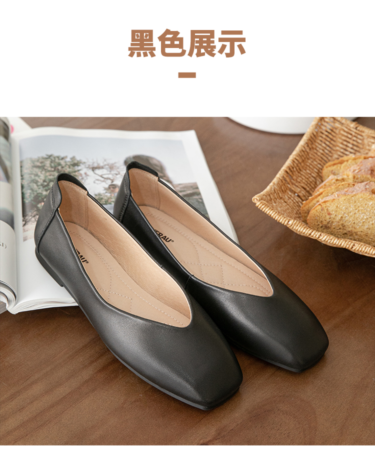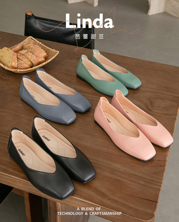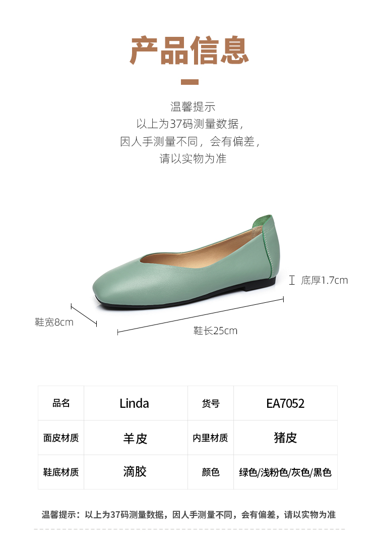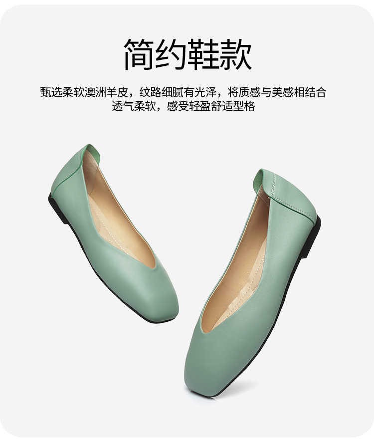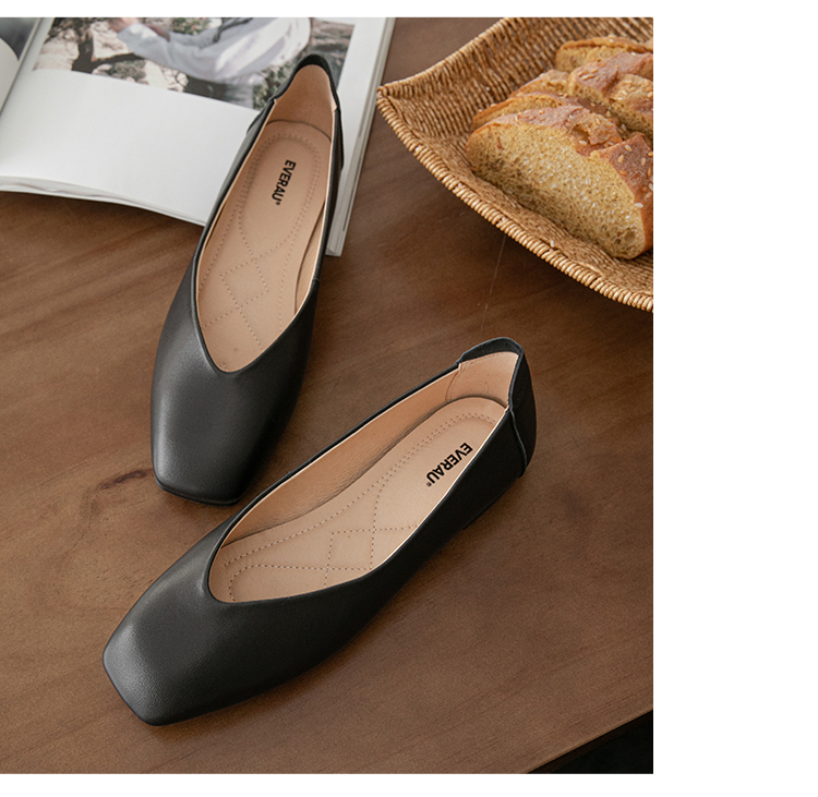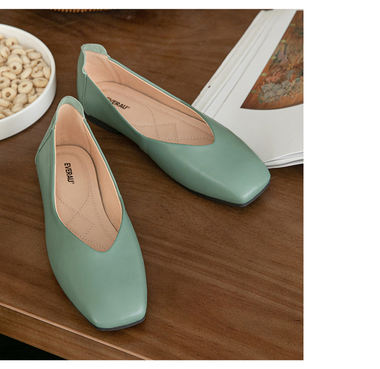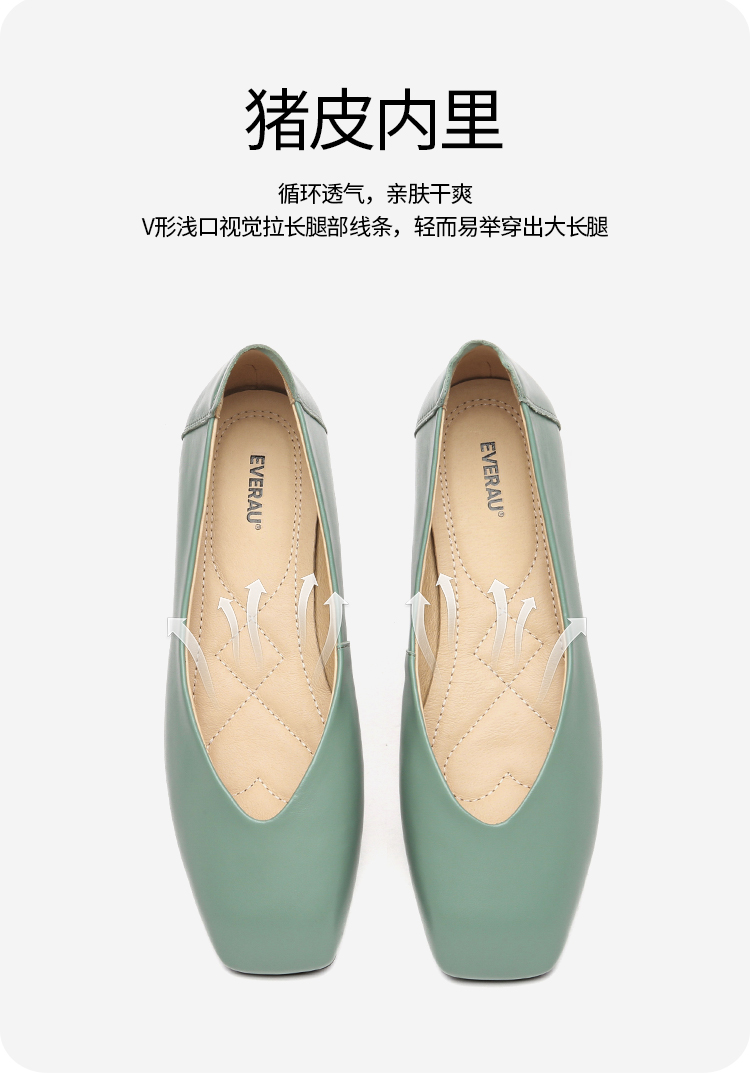 【澳洲品牌】EVERAU春季豆豆鞋单鞋乐福鞋羊皮平跟方头女鞋EA7052