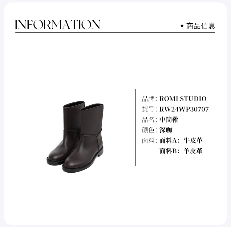 ROMI STUDIO“率性简约” 头层软牛皮拼混种羊皮中筒靴 RW24WP30707