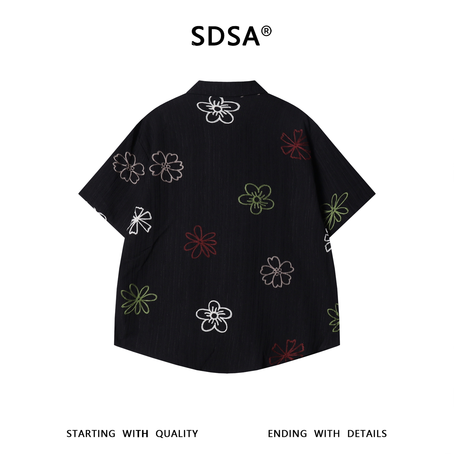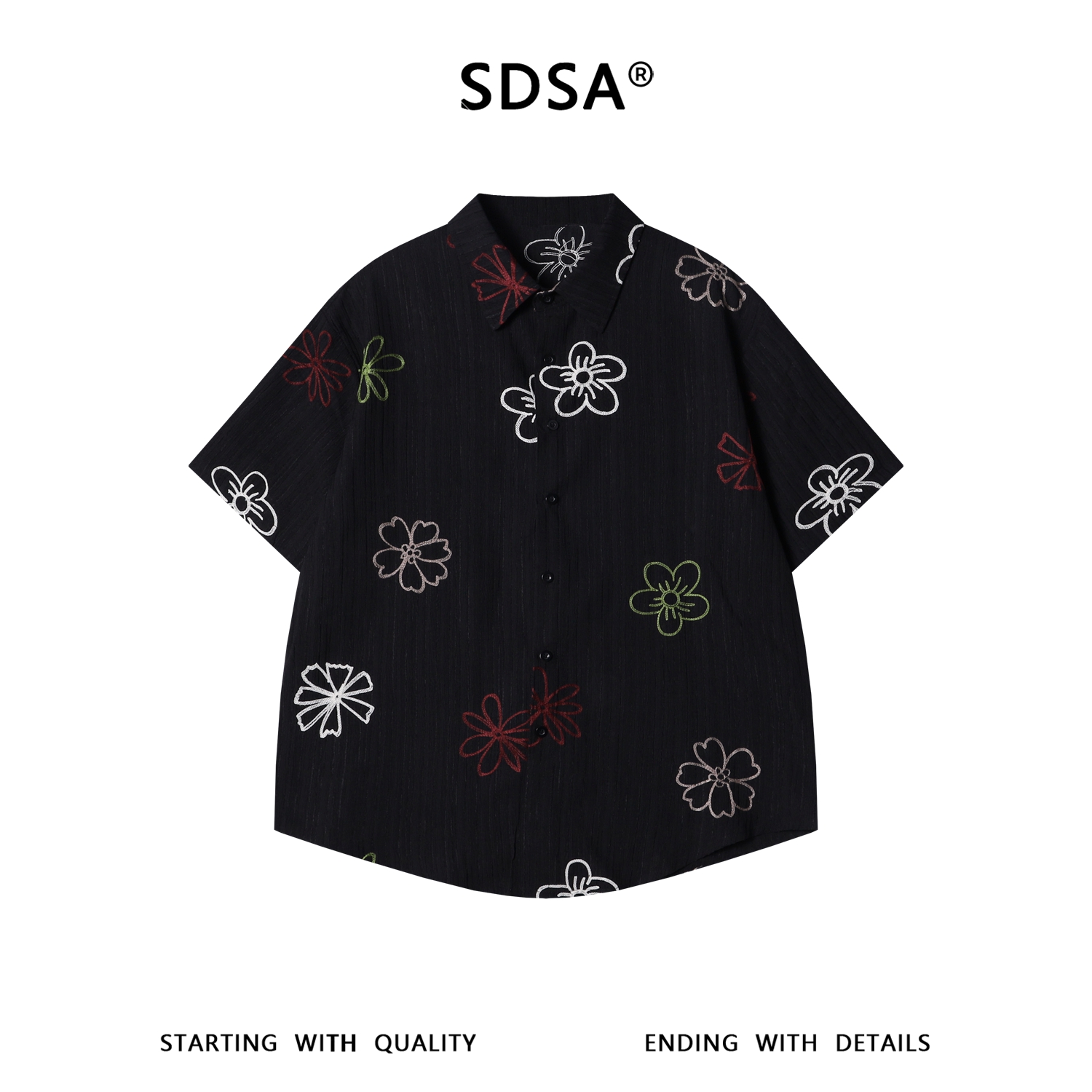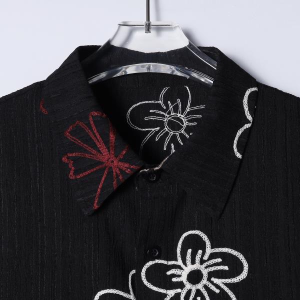 SDSA男装2026新款轻奢韩版复古彩色花卉刺绣竖条短袖衬衫百搭宽松