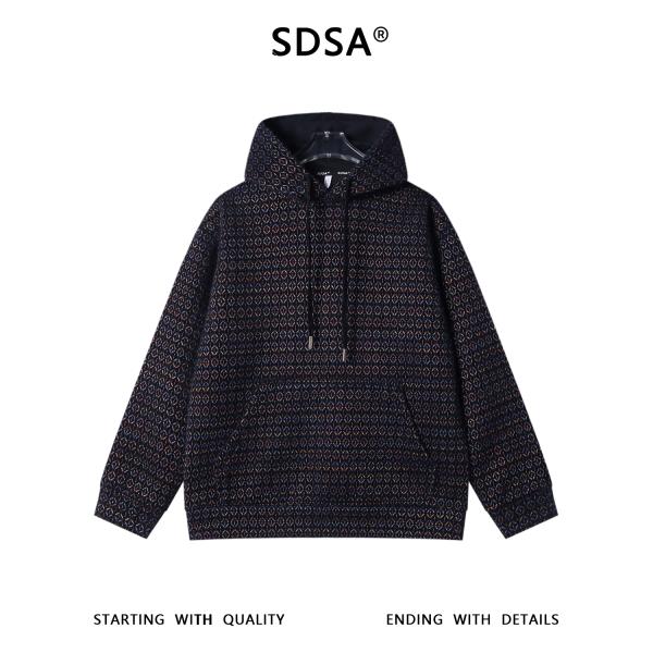 SDSA男士秋冬新款痞帅男装彩色菱形条纹抽绳连帽卫衣百搭宽松上衣