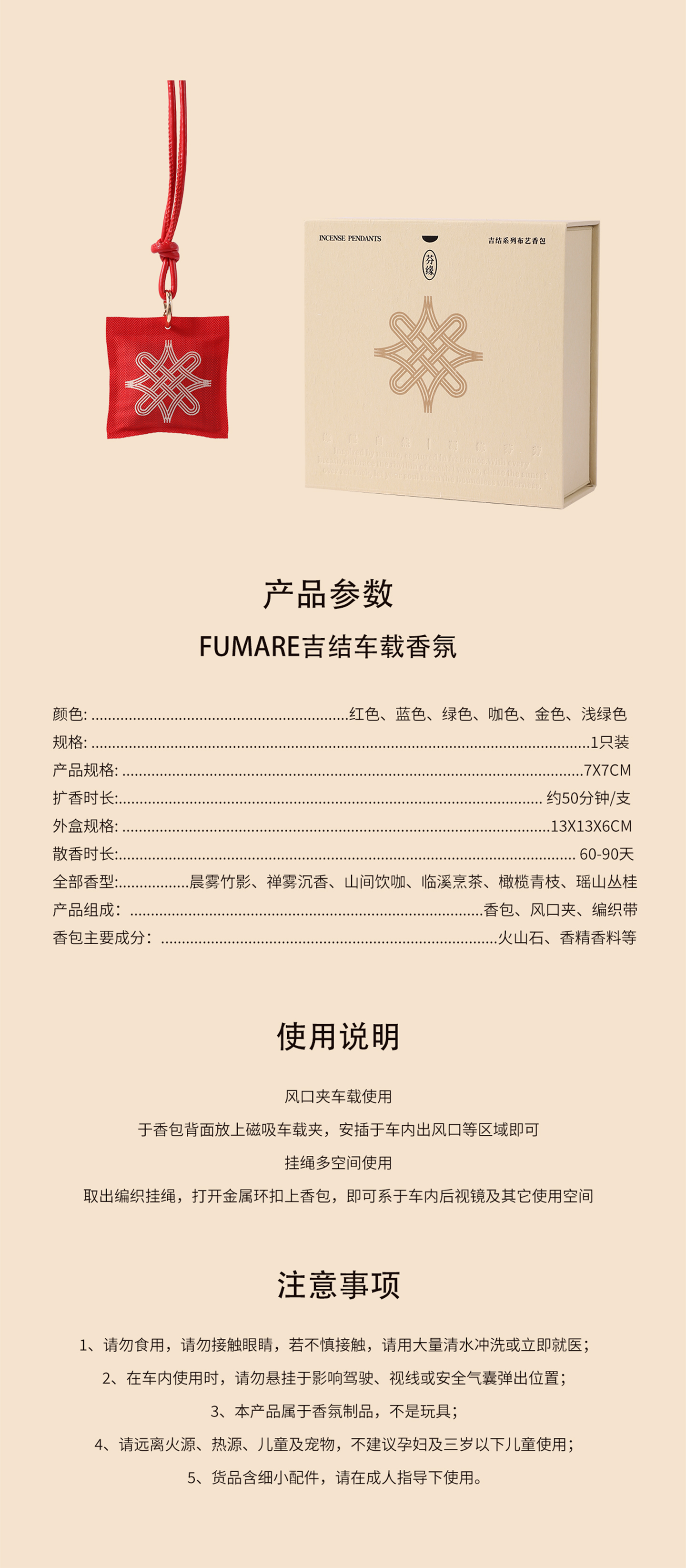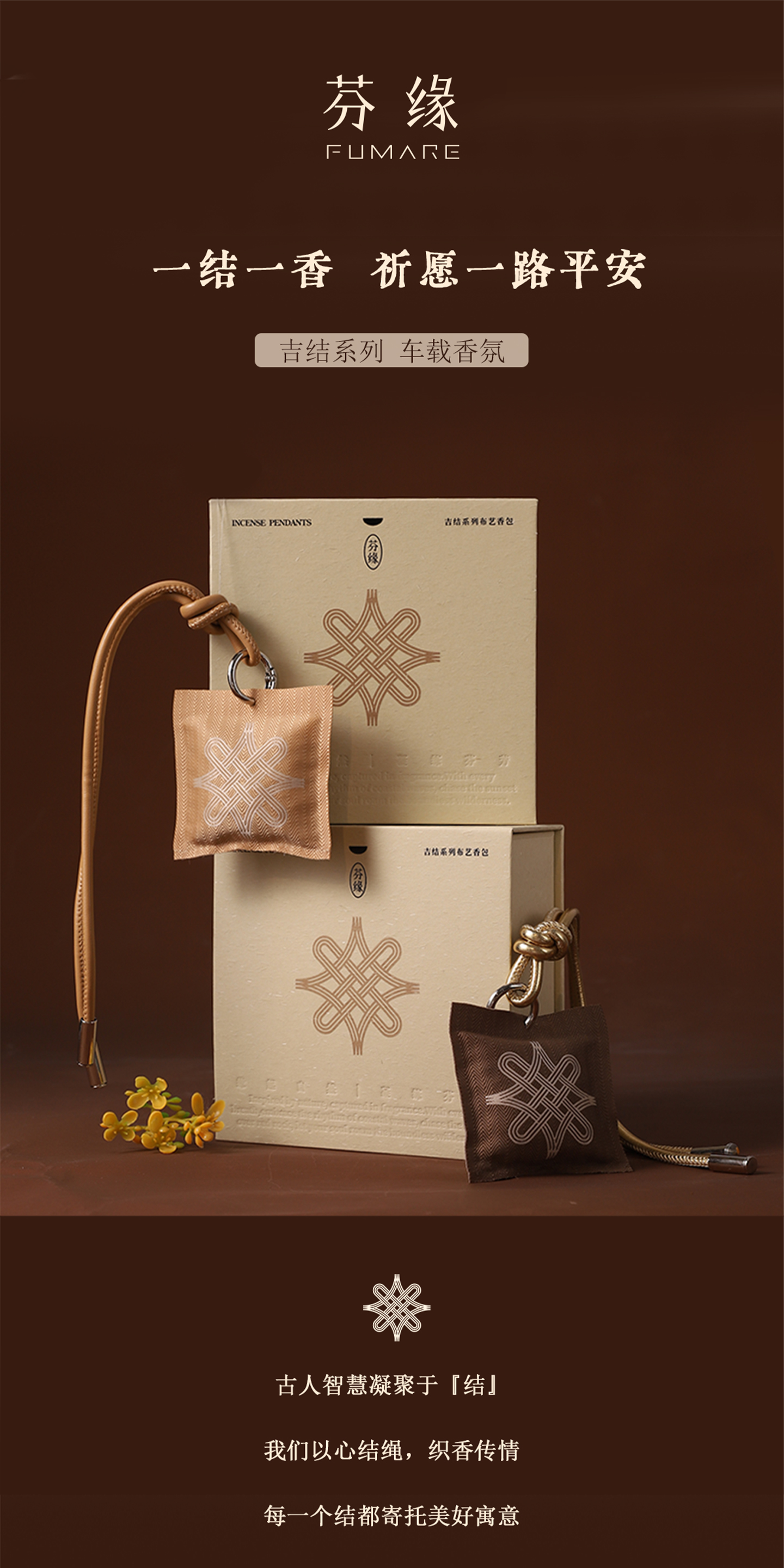 芬缘FUMARE吉结系列车载香薰挂件出风口夹两用香氛沉香衣柜香挂