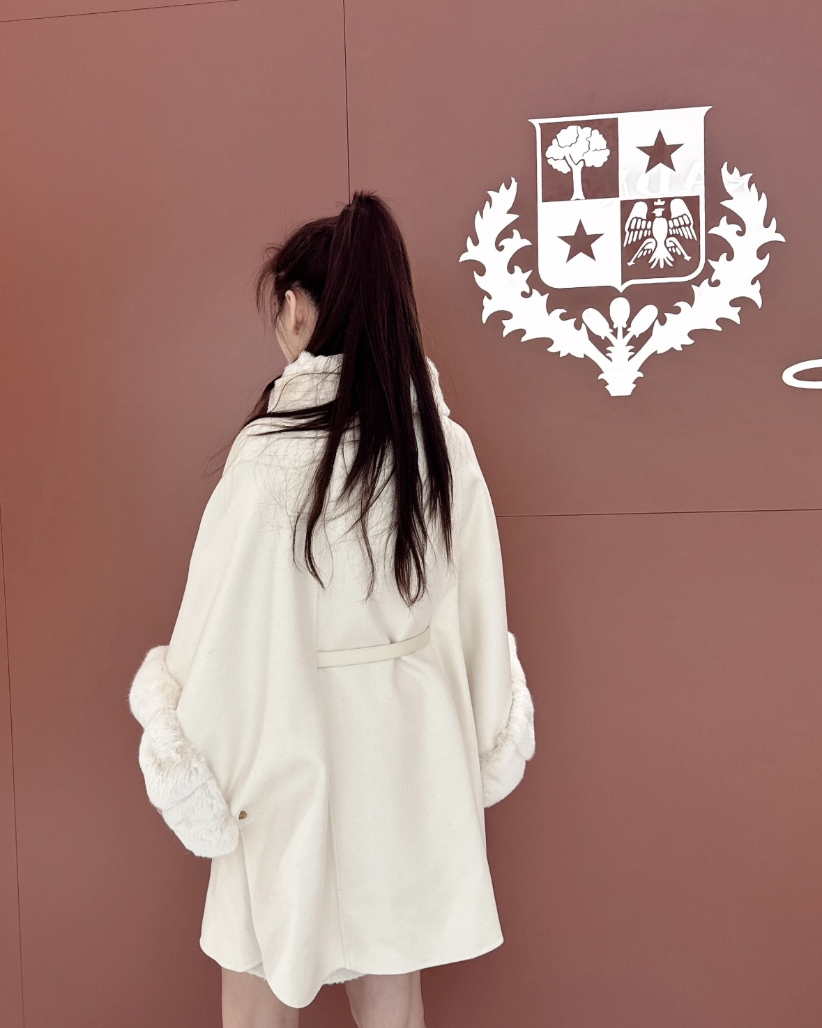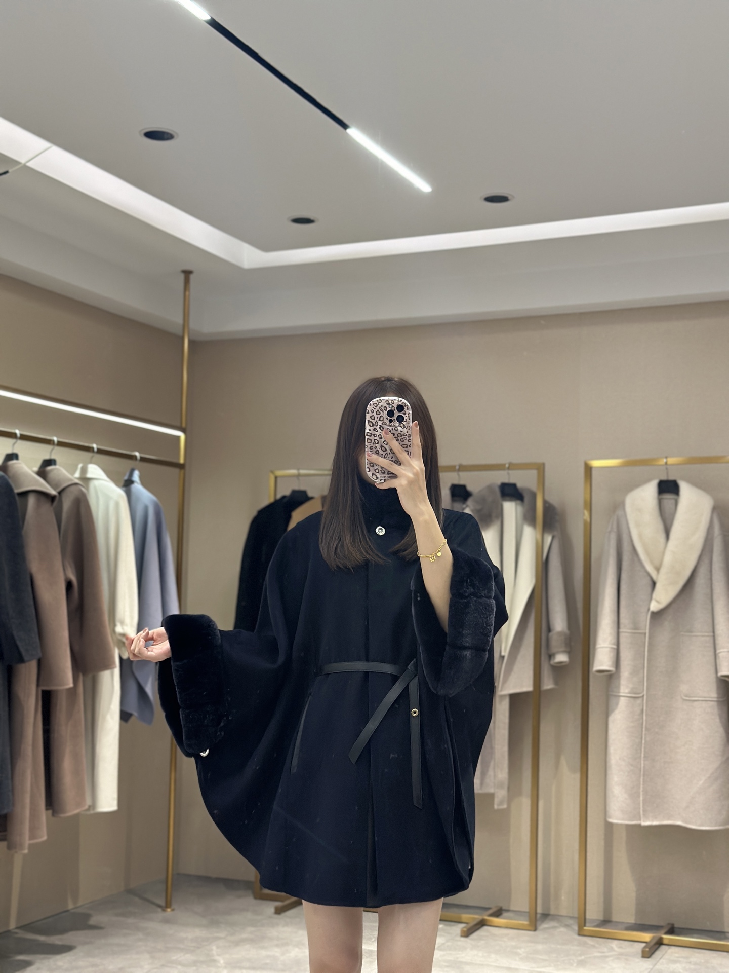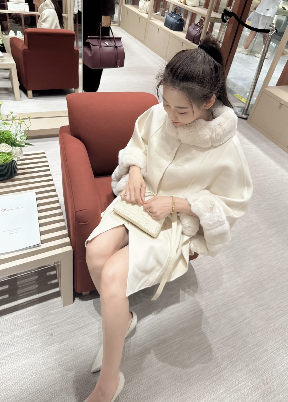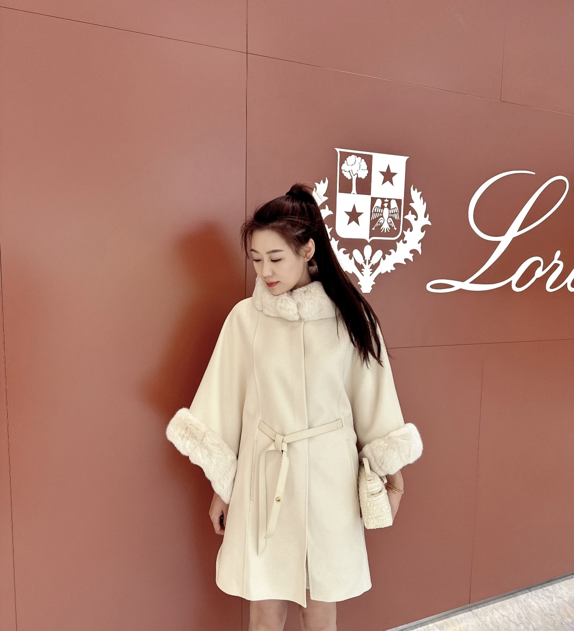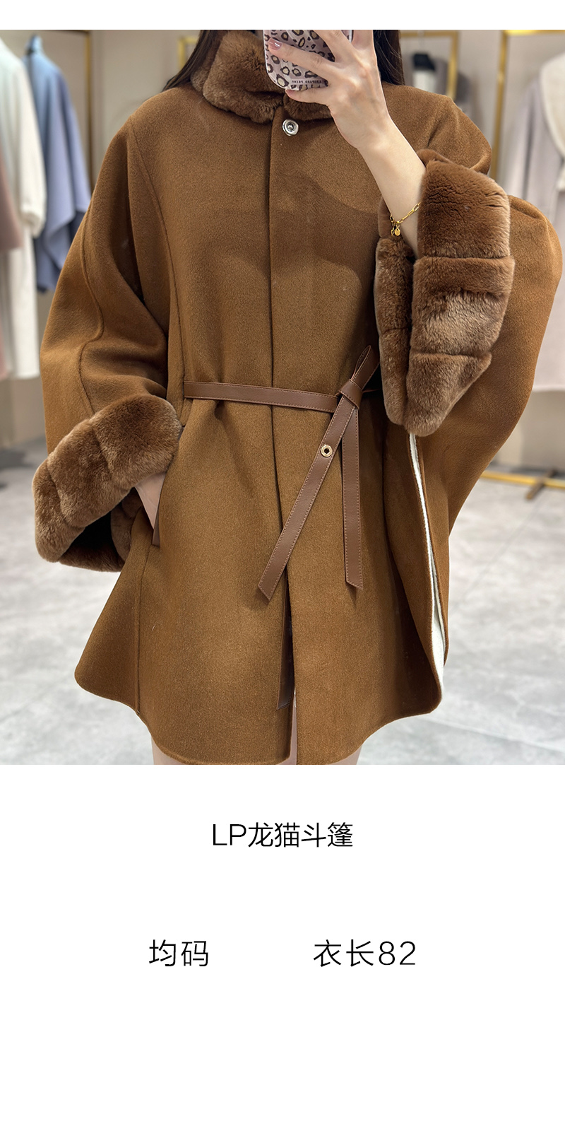 🆕LP龙猫斗篷 羊绒材质的标志斗篷,配有獭兔衣领➕袖口 衣长遮臀,经典剪裁 搭配意大利小羊皮腰带穿着,以突显腰身亦可敞开穿着,呈现出更加柔和飘逸的线条 优且精致,适合打造正装造型!!