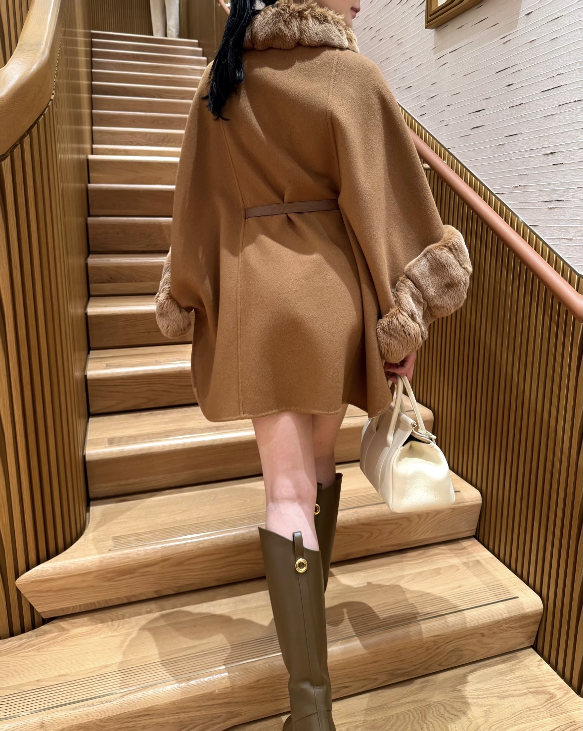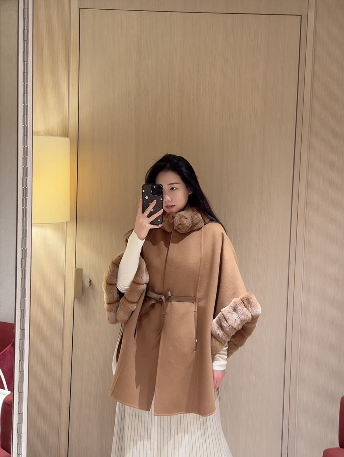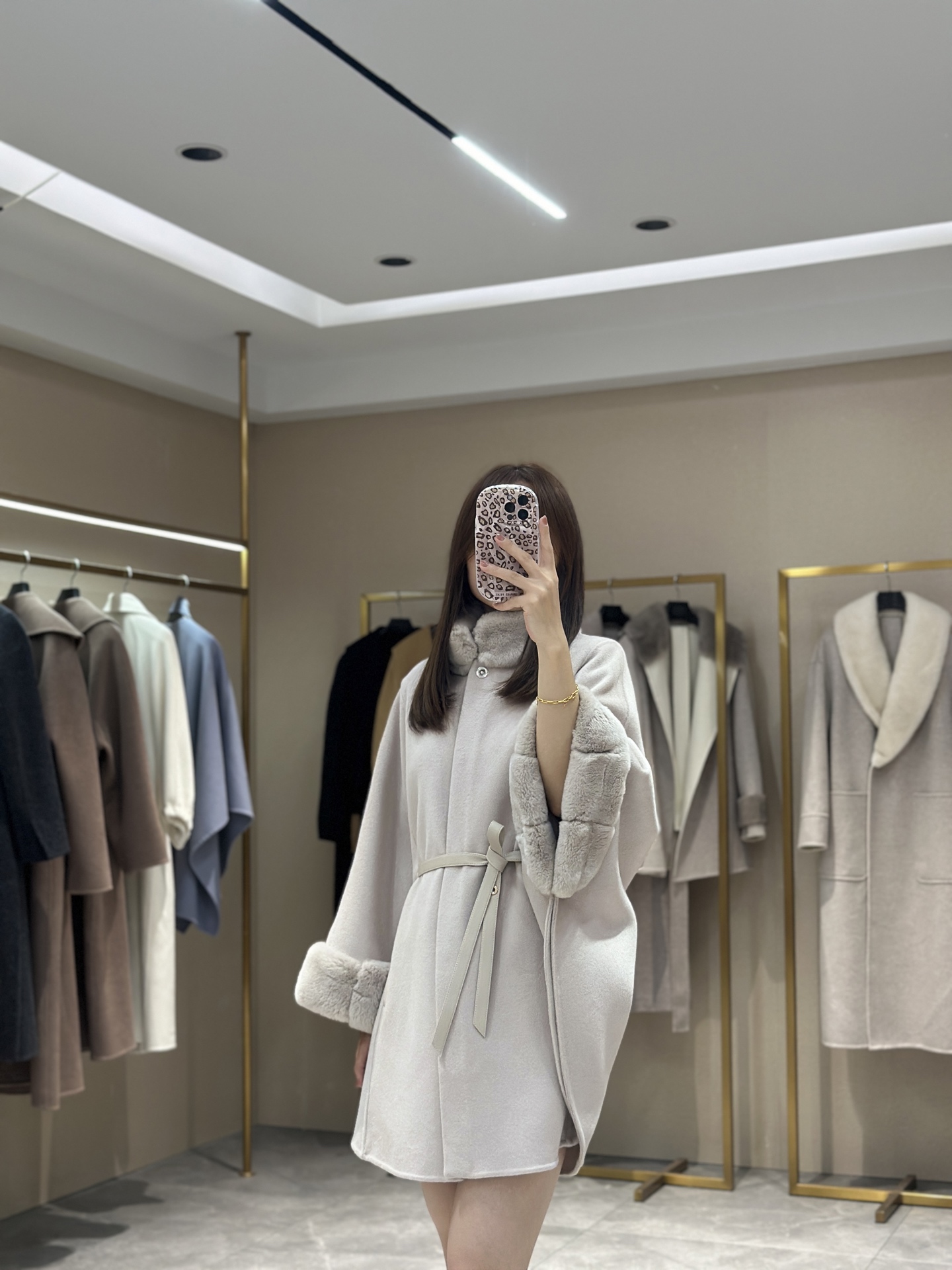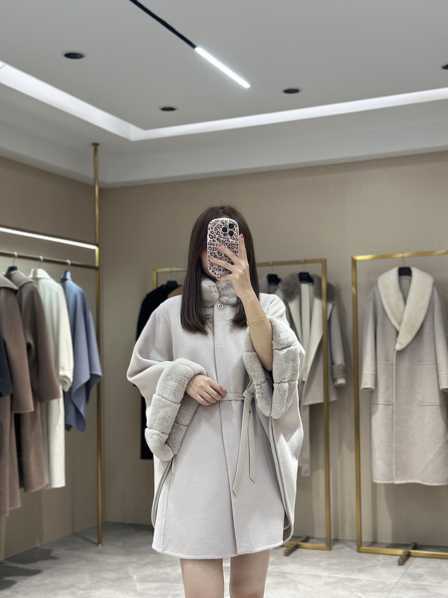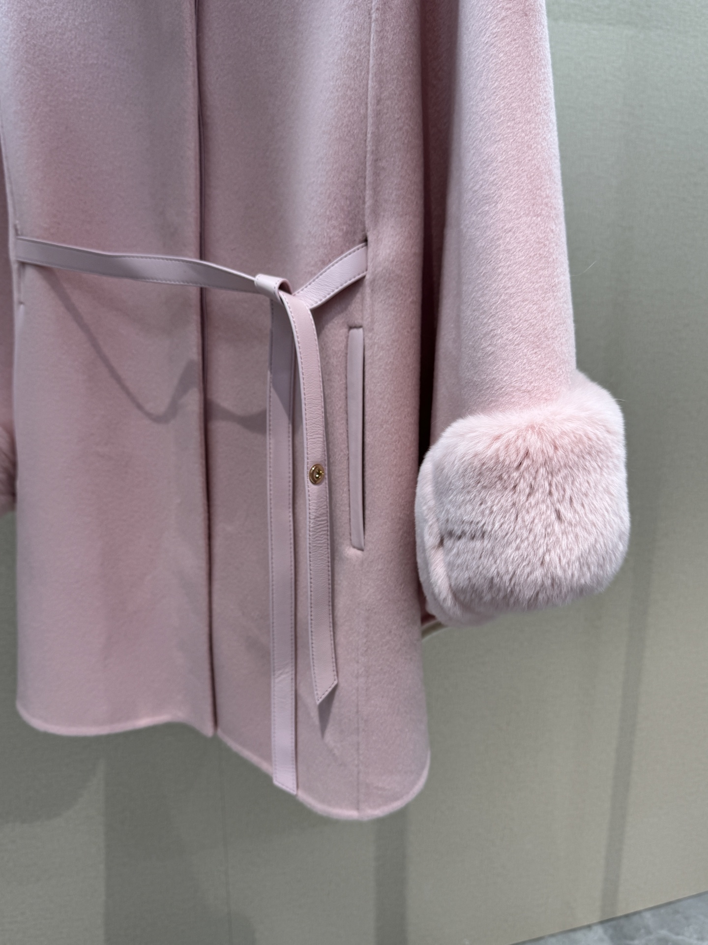 🆕LP龙猫斗篷 羊绒材质的标志斗篷,配有獭兔衣领➕袖口 衣长遮臀,经典剪裁 搭配意大利小羊皮腰带穿着,以突显腰身亦可敞开穿着,呈现出更加柔和飘逸的线条 优且精致,适合打造正装造型!!