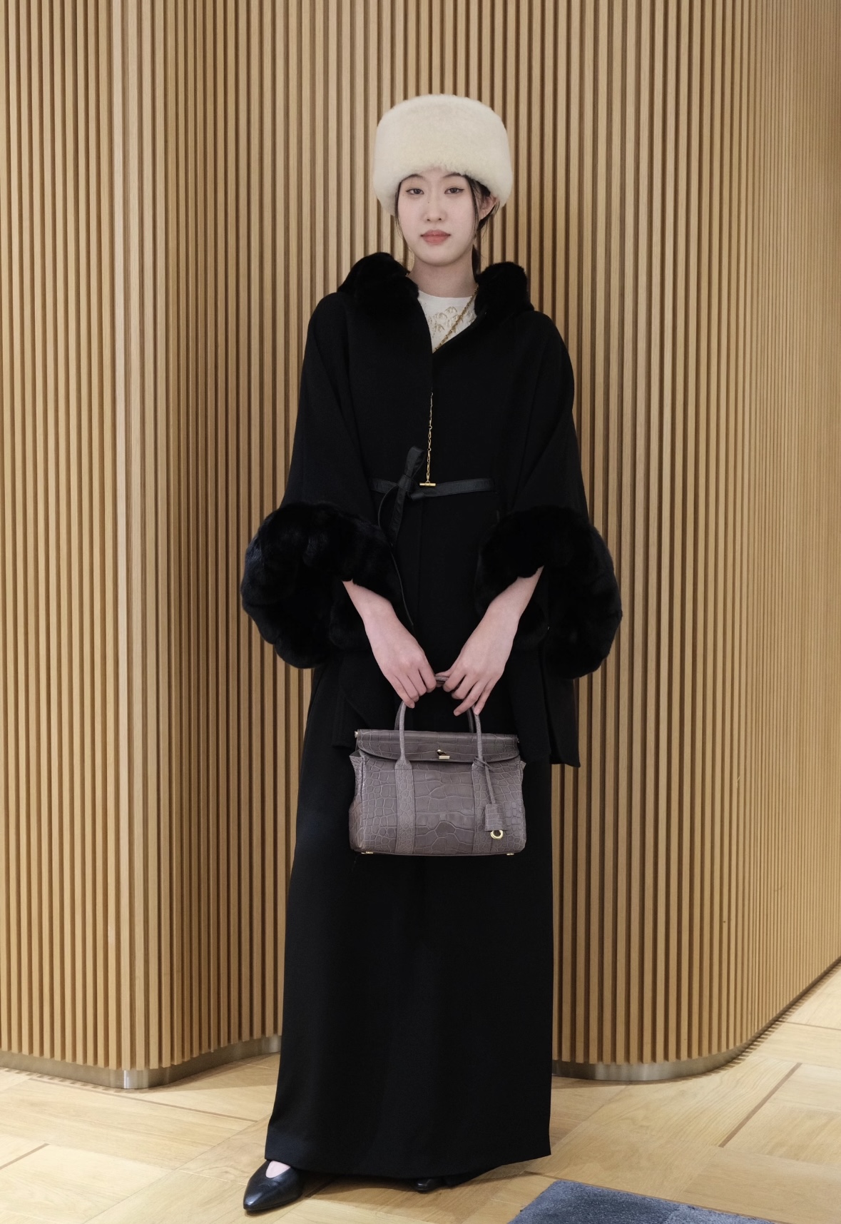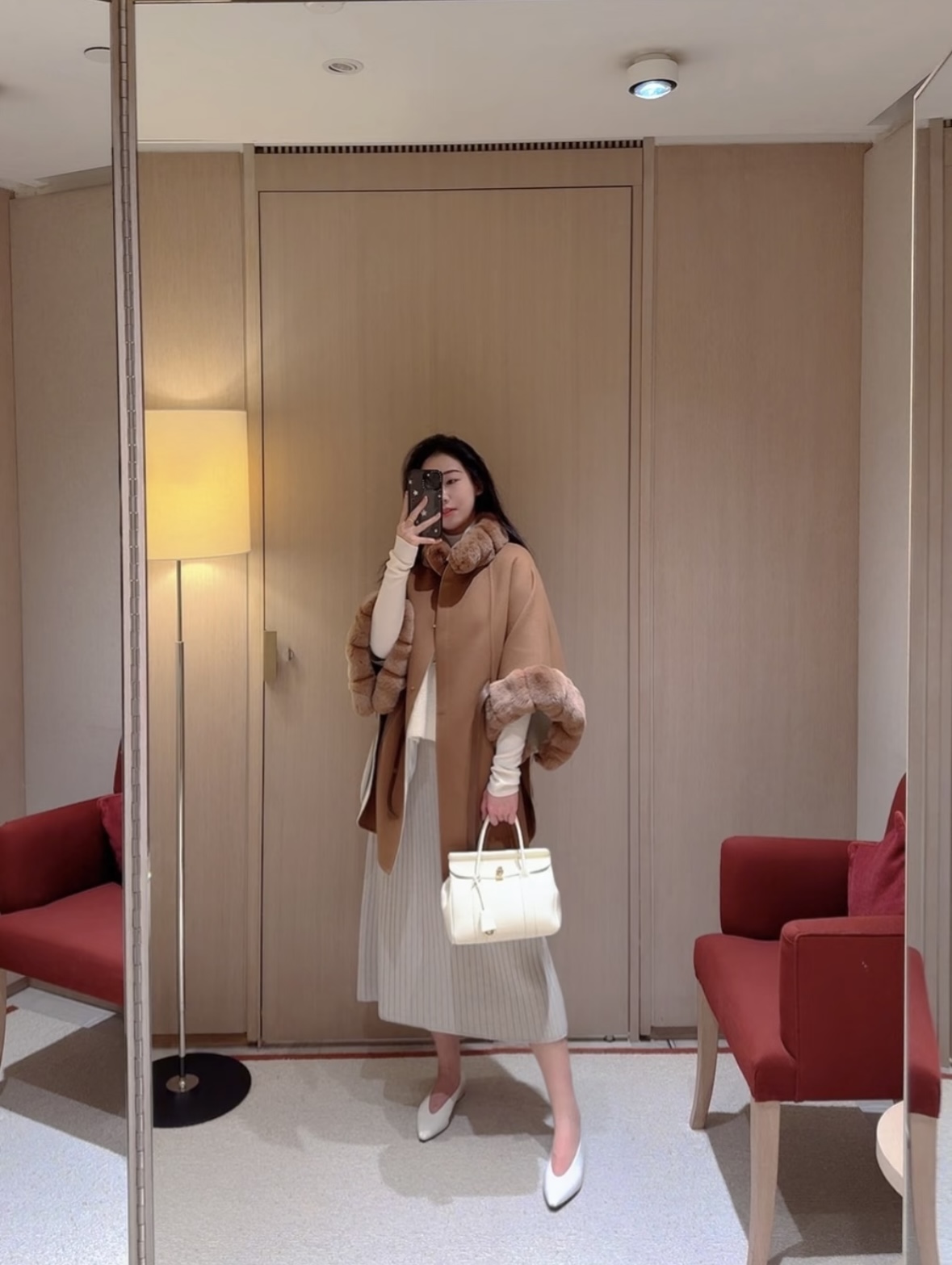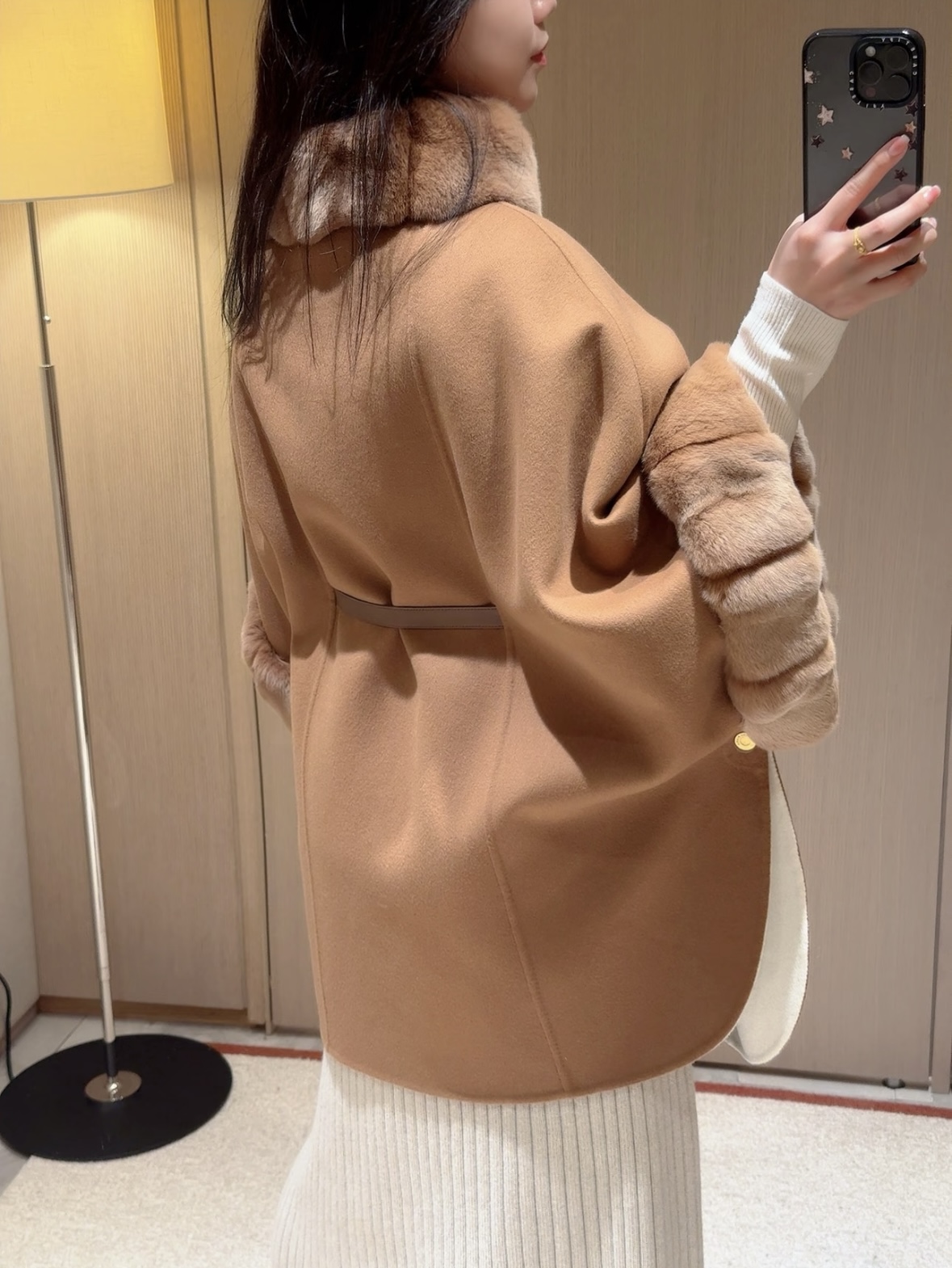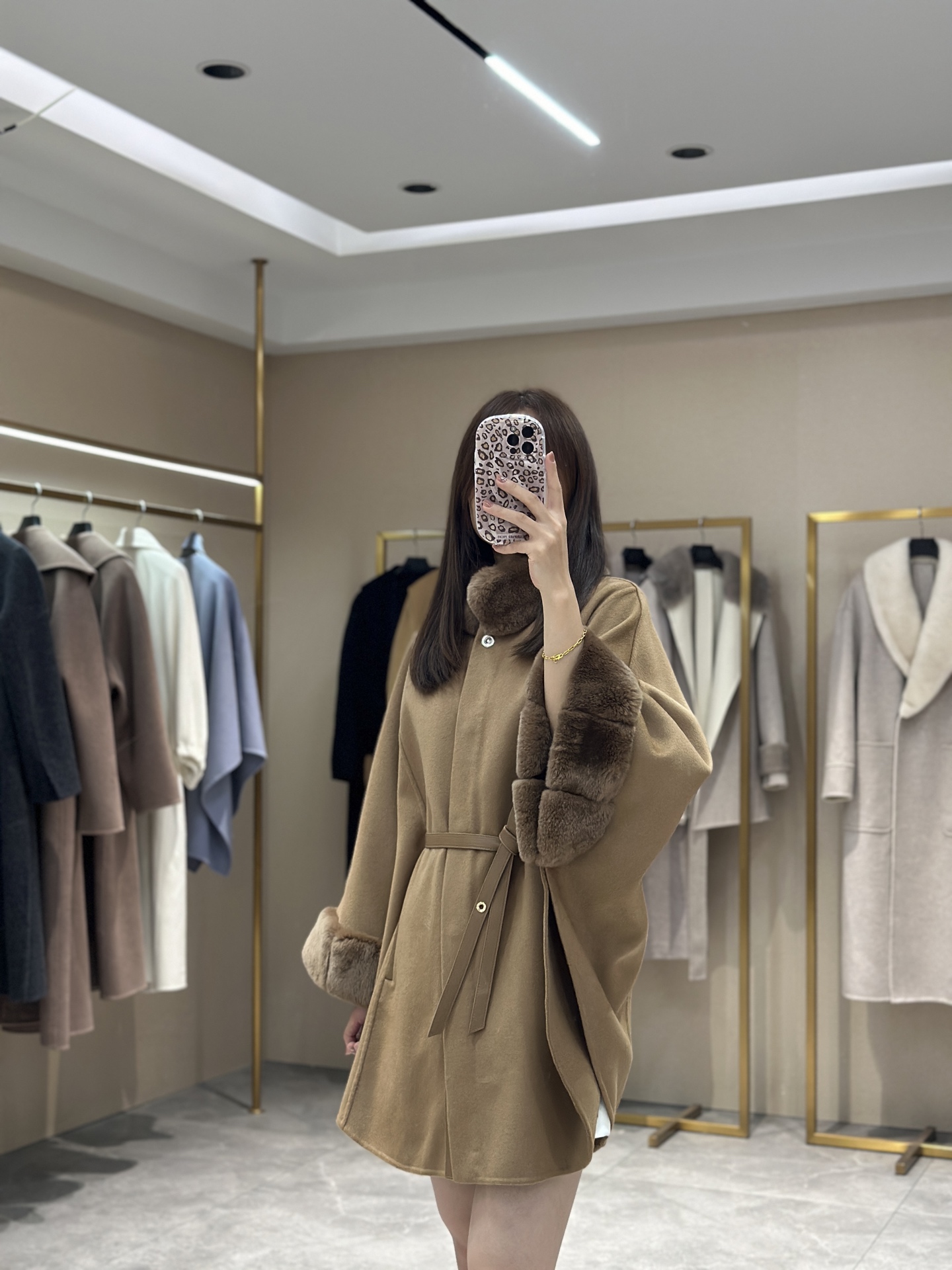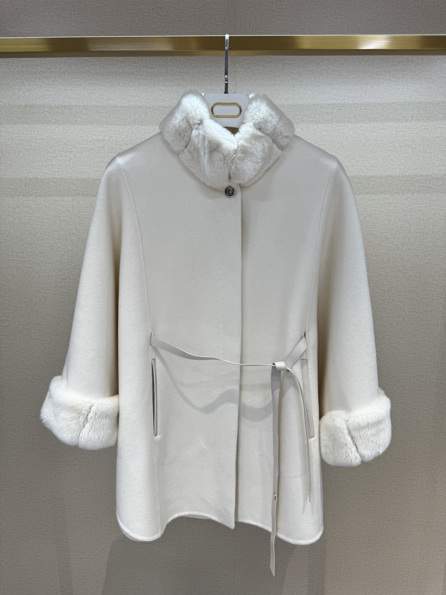 🆕LP龙猫斗篷 羊绒材质的标志斗篷,配有獭兔衣领➕袖口 衣长遮臀,经典剪裁 搭配意大利小羊皮腰带穿着,以突显腰身亦可敞开穿着,呈现出更加柔和飘逸的线条 优且精致,适合打造正装造型!!