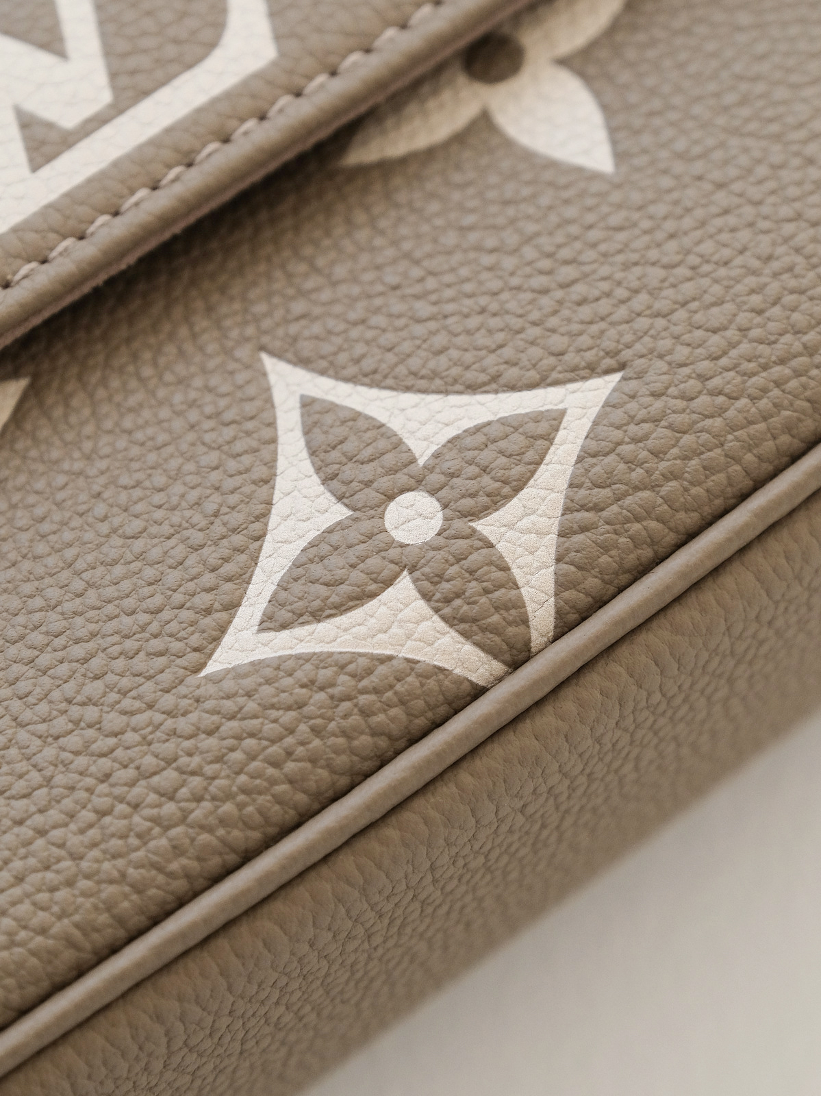 原版进口牛皮🔍 采用Empreinte Monogram压纹小牛皮,这种皮革质感细腻,在保持轻盈度的同时有一定挺括度,纹路清晰,耐造且不容易显旧,浮雕老花立体深邃,触感柔软却耐磨抗刮。