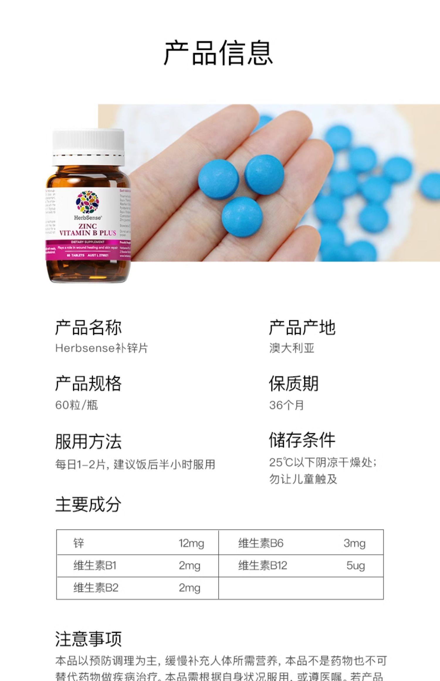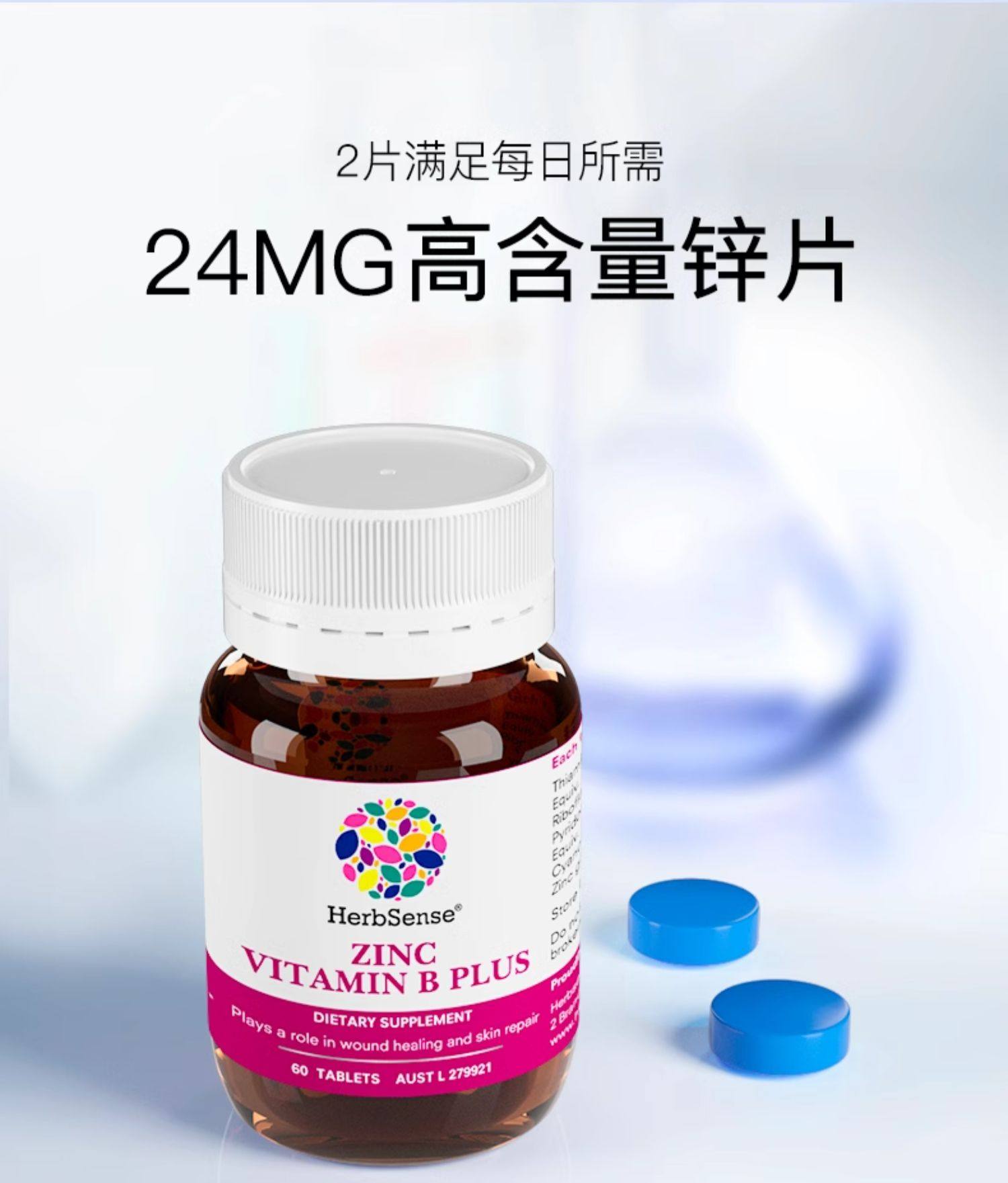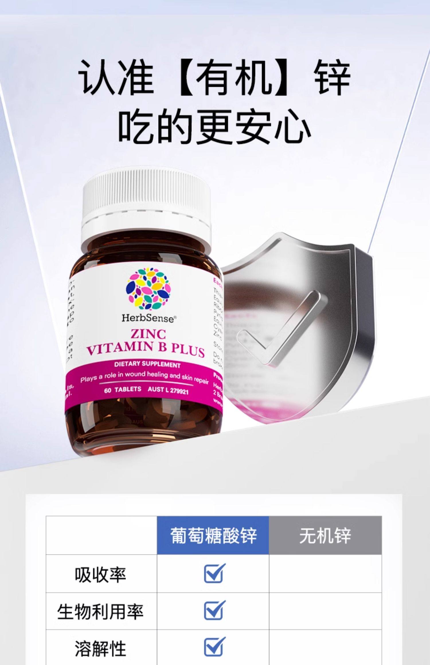 澳洲herbsense男女成人zinc补锌60片复合维生素有机葡萄糖酸锌片