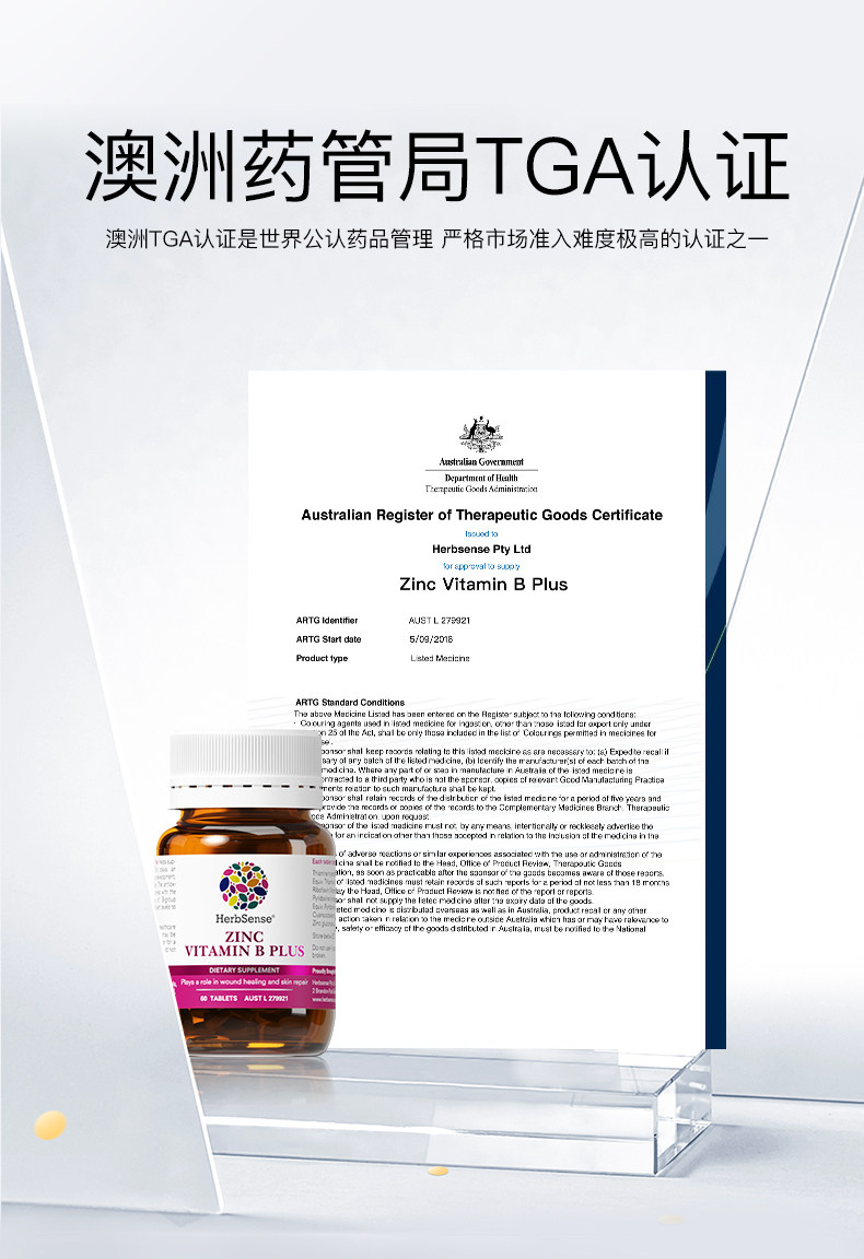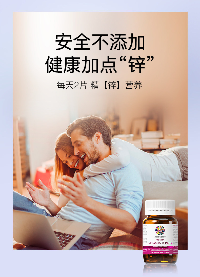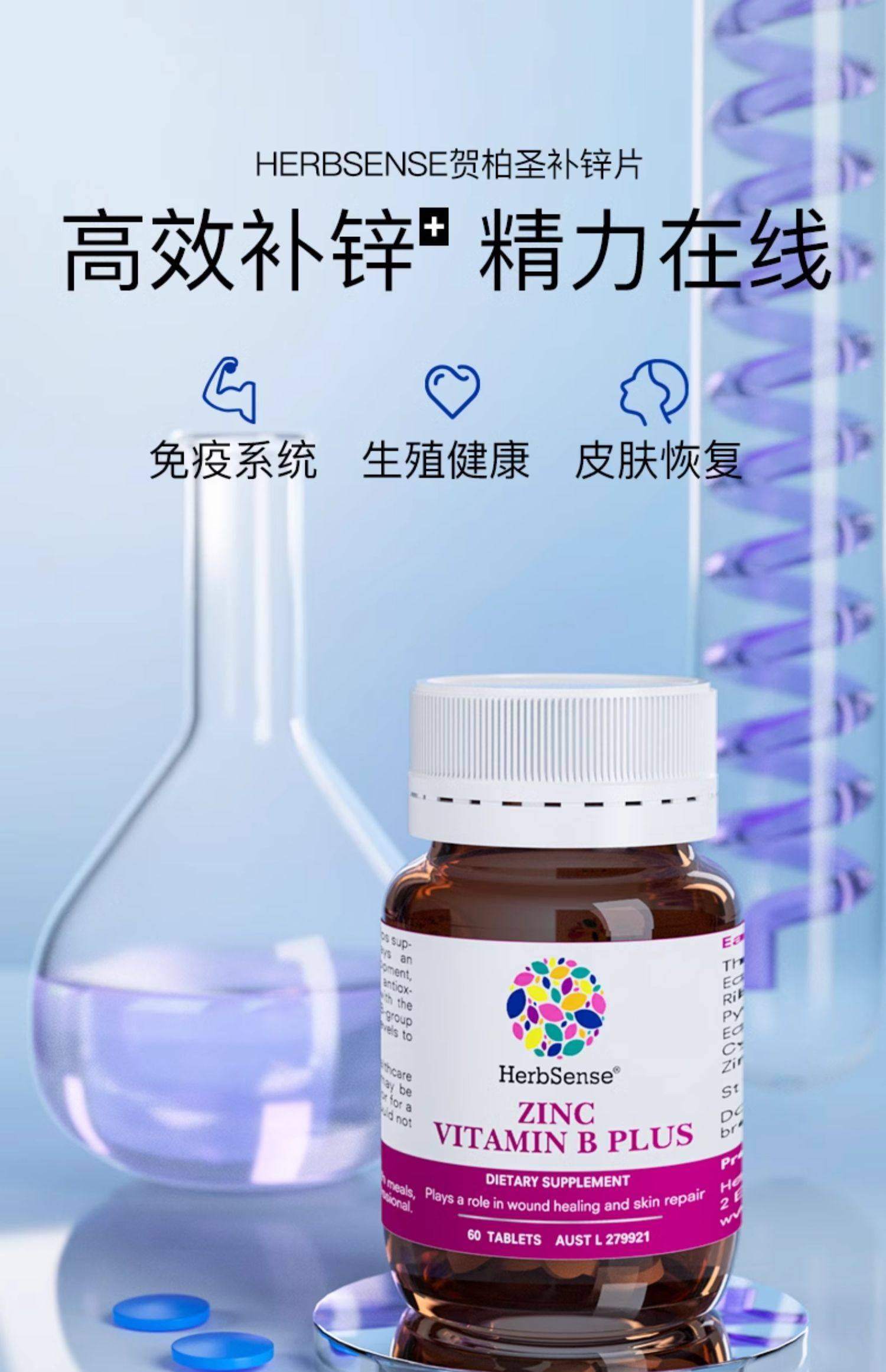 澳洲herbsense男女成人zinc补锌60片复合维生素有机葡萄糖酸锌片