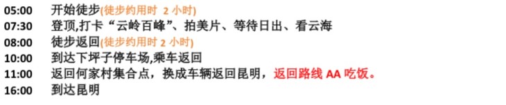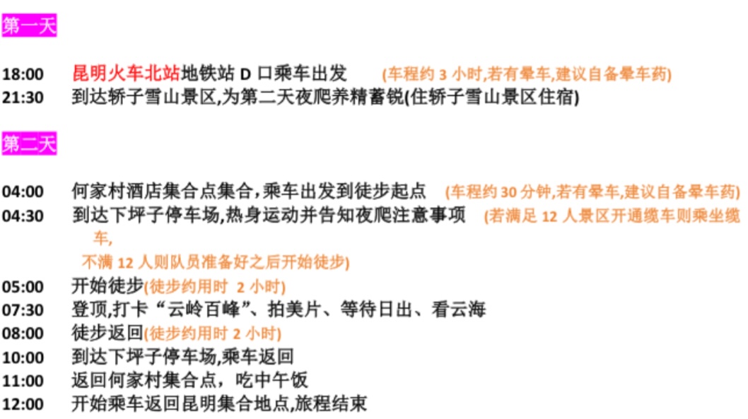 昆明出发,含车、不含住宿和吃饭