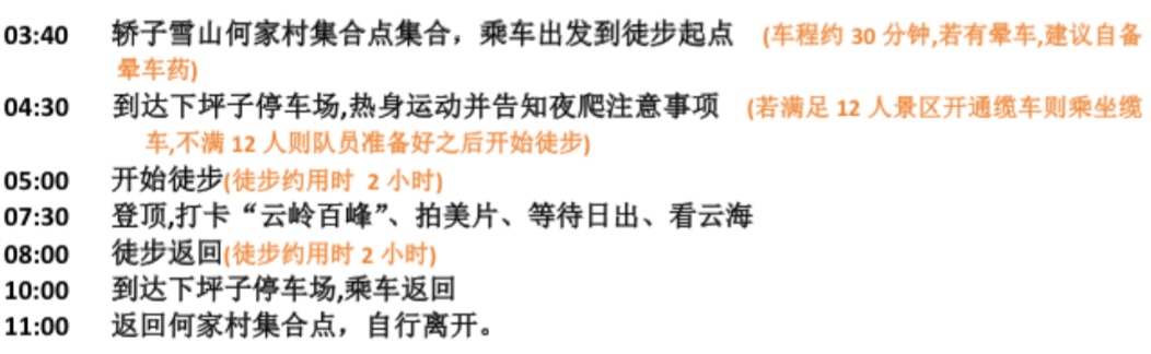 风险提示:户外活动存在风险,请根据自身身体状况参加有心脏病、高血压、糖尿病等疾病者请勿参与,活动中发生的意外需自行承担环保要求:禁止乱扔垃圾、摘取农作乡瓜果,禁止穿裙子、高跟鞋参与活动团队协作:参与者需服从领队指挥,领队有权根据安全评估调整或取消活动,个人原因:如身体不适、迟到或前往错误集合地点,不可延期,不可退款。