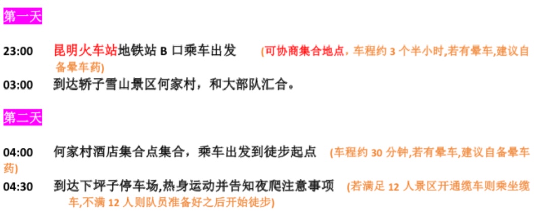 【行程注意事项】