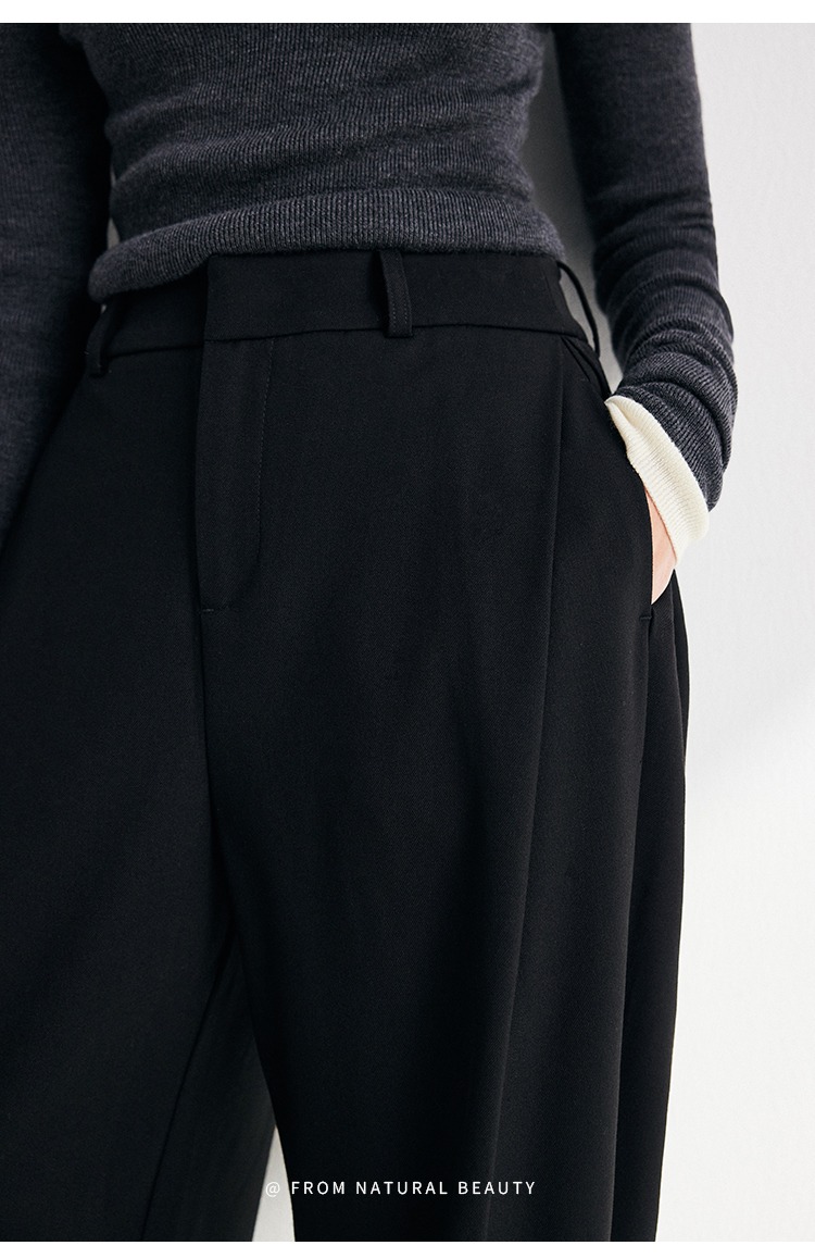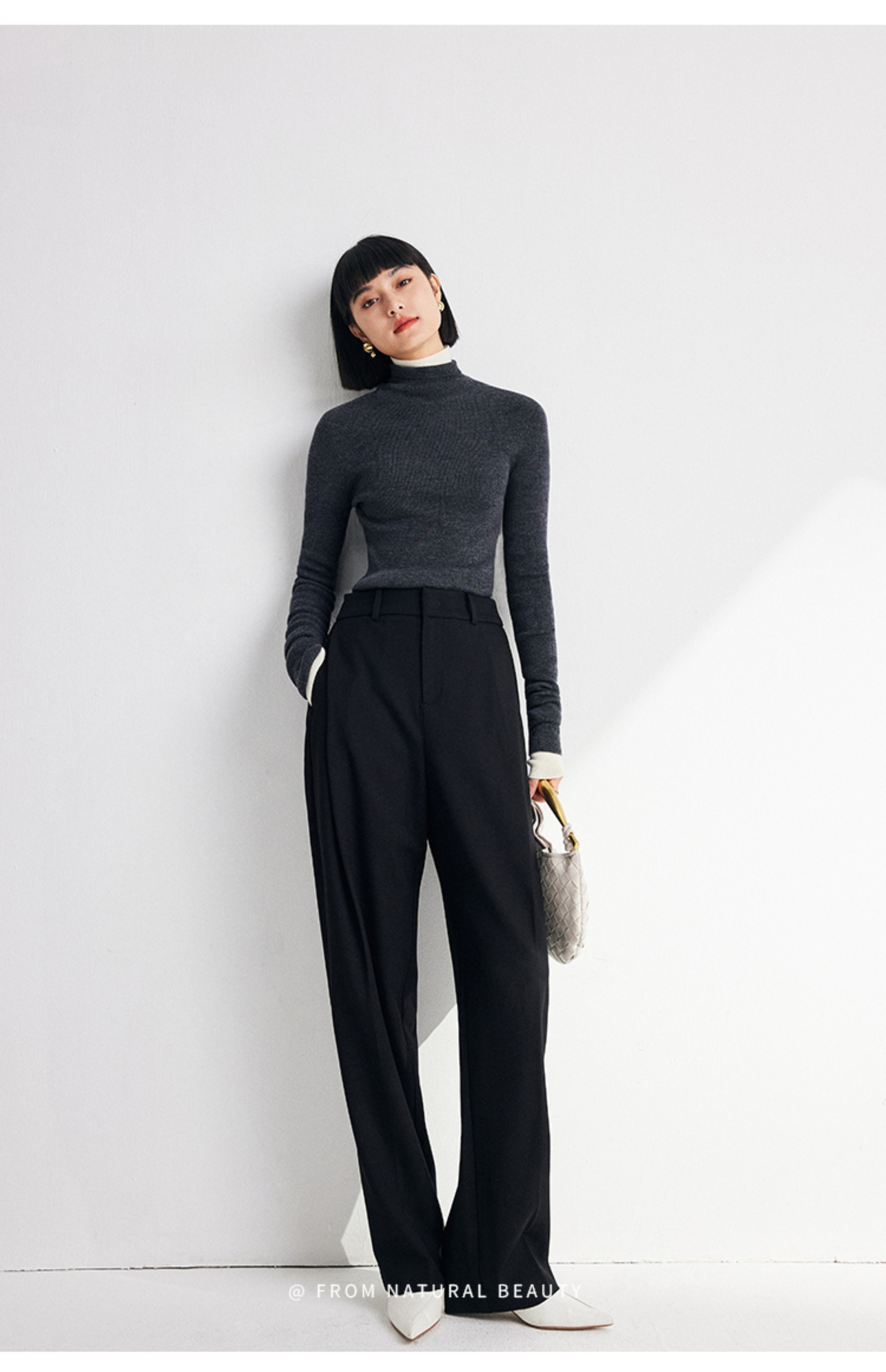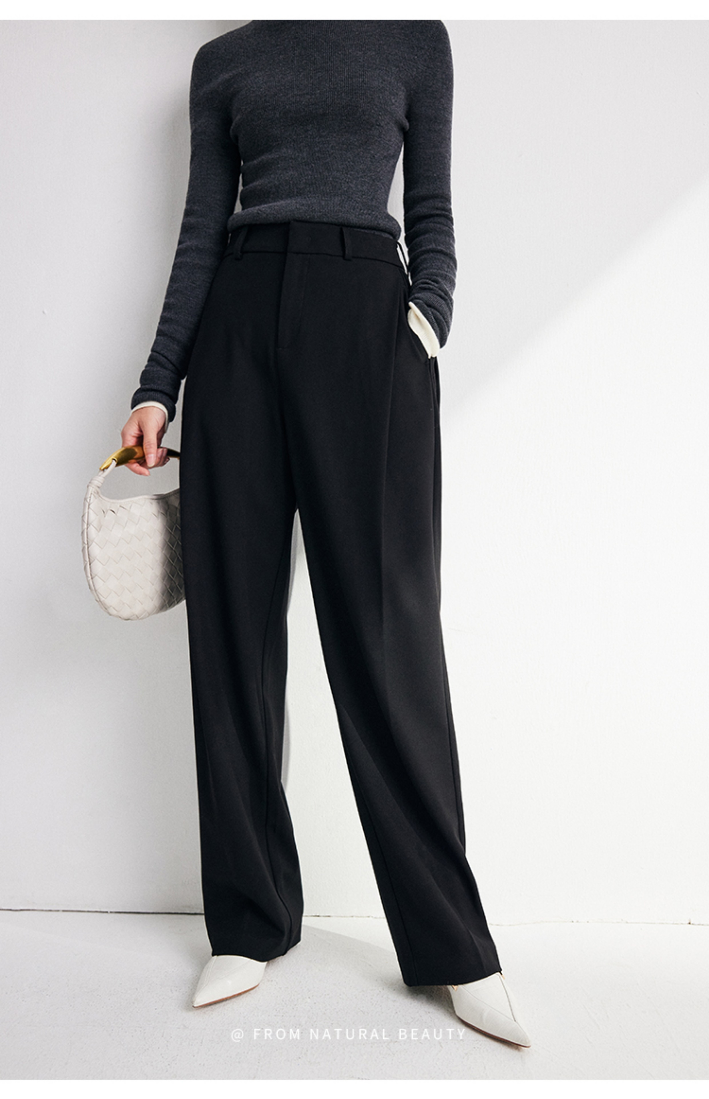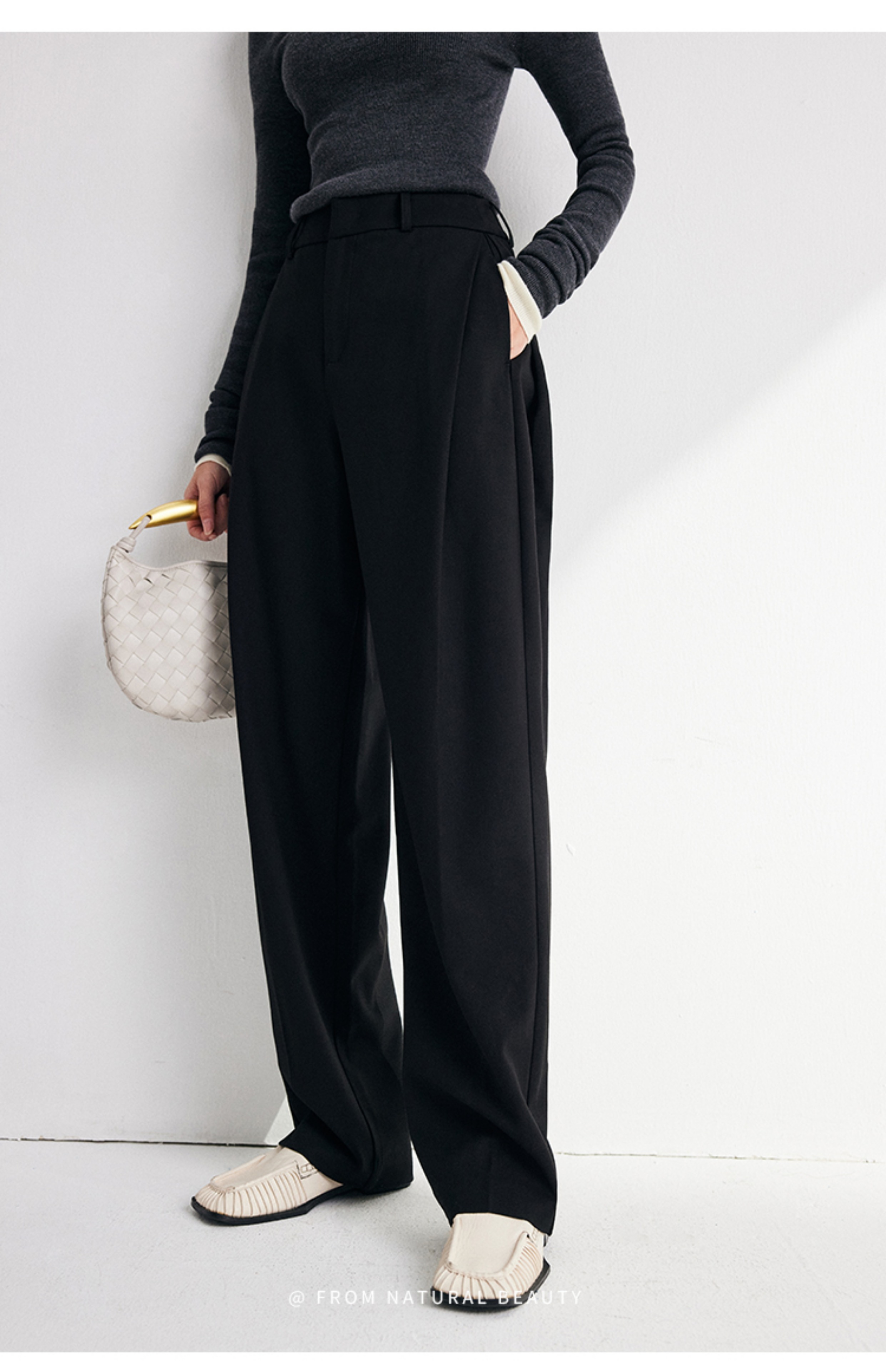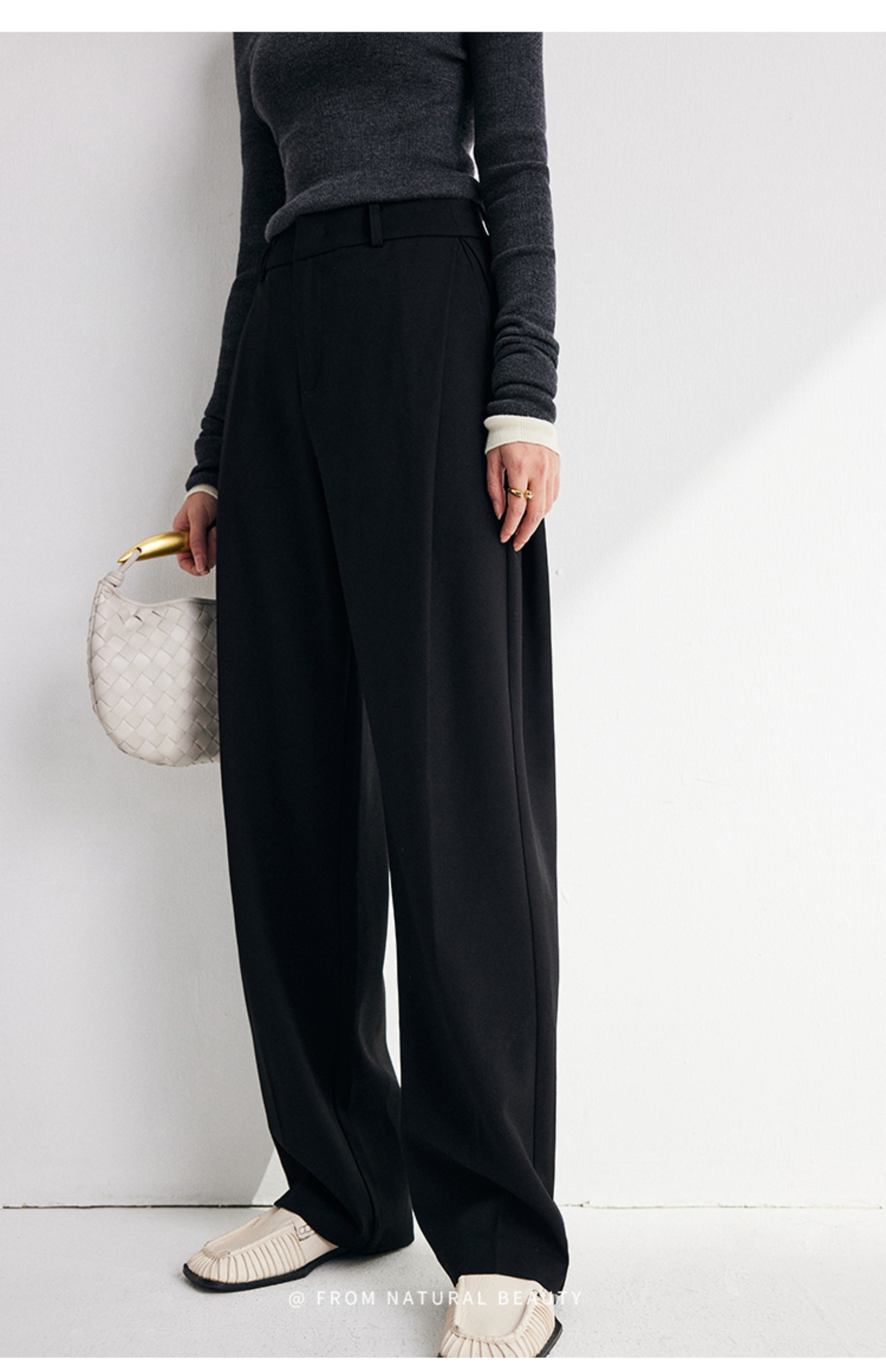 绵羊毛高腰西装直筒裤女2023秋季新款垂感显瘦休闲阔腿裤子