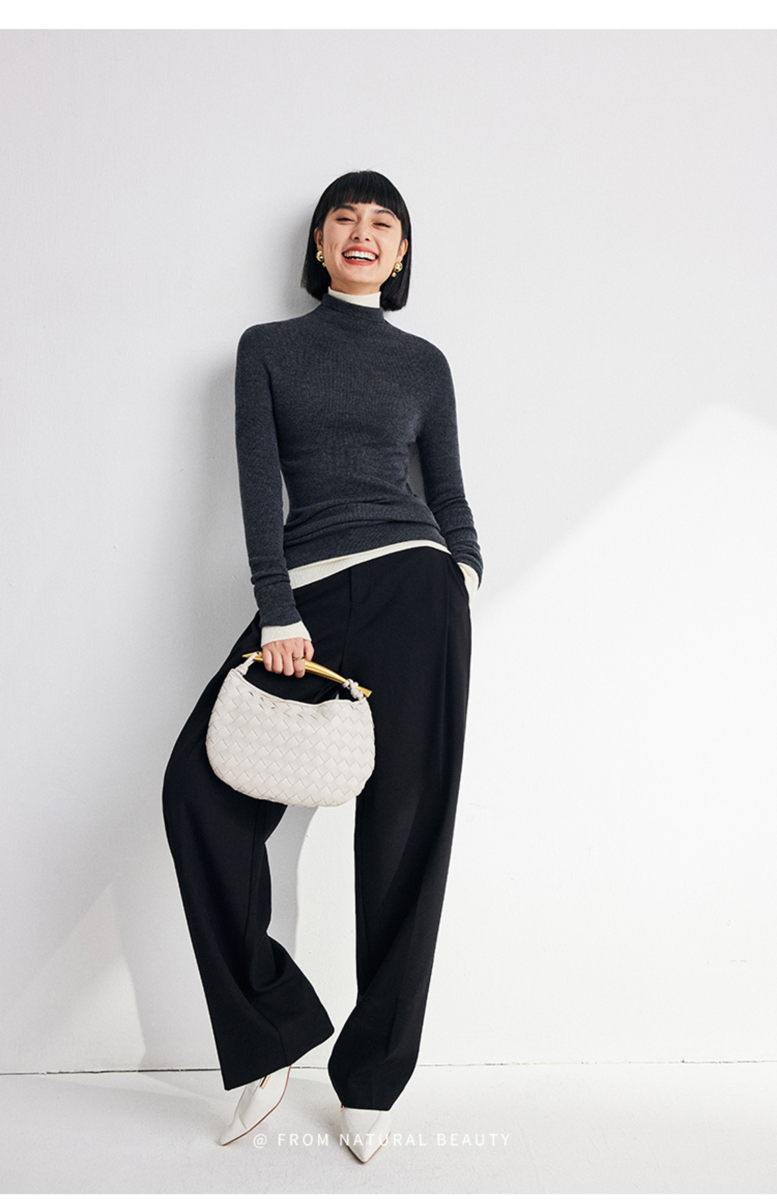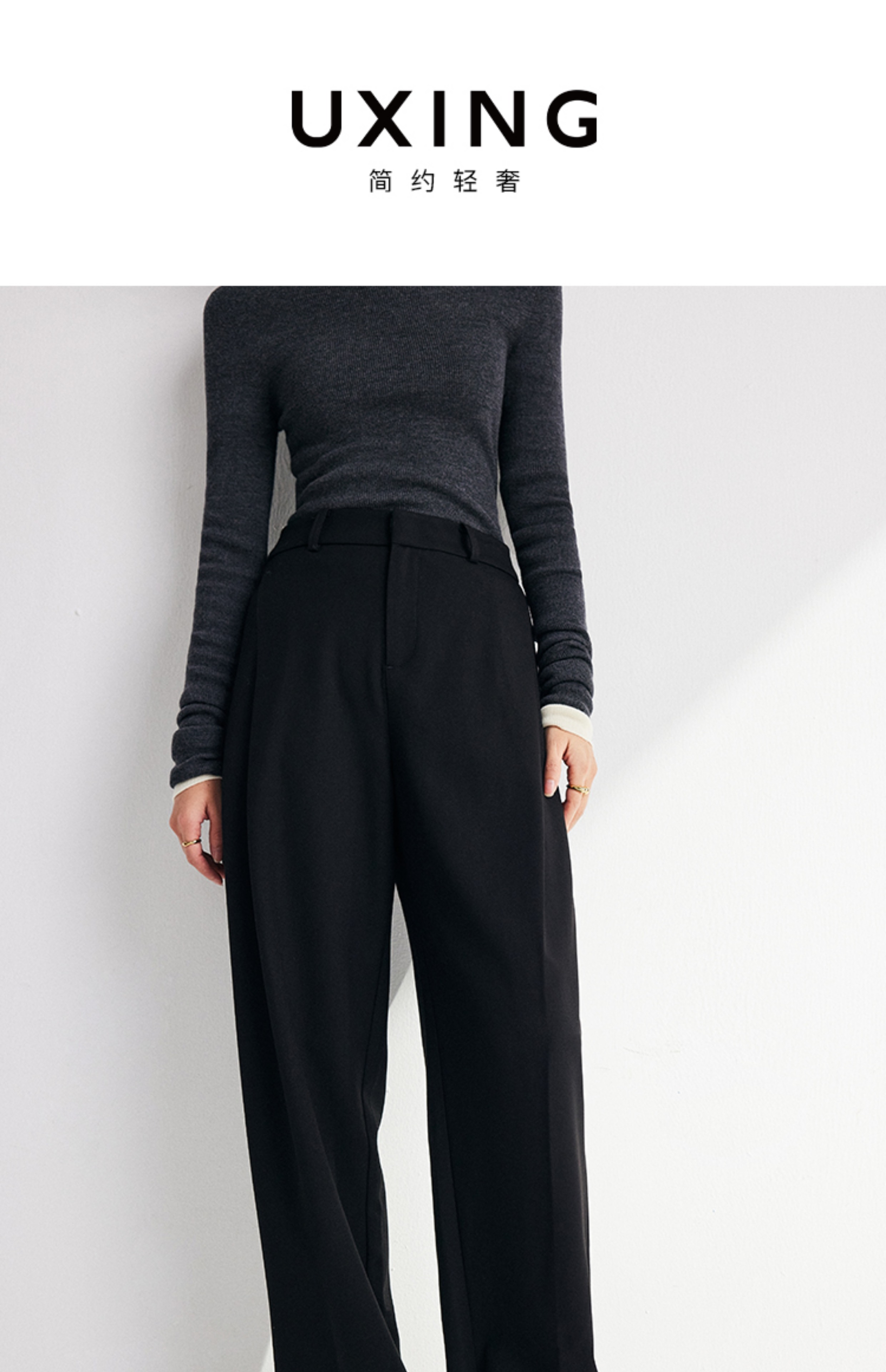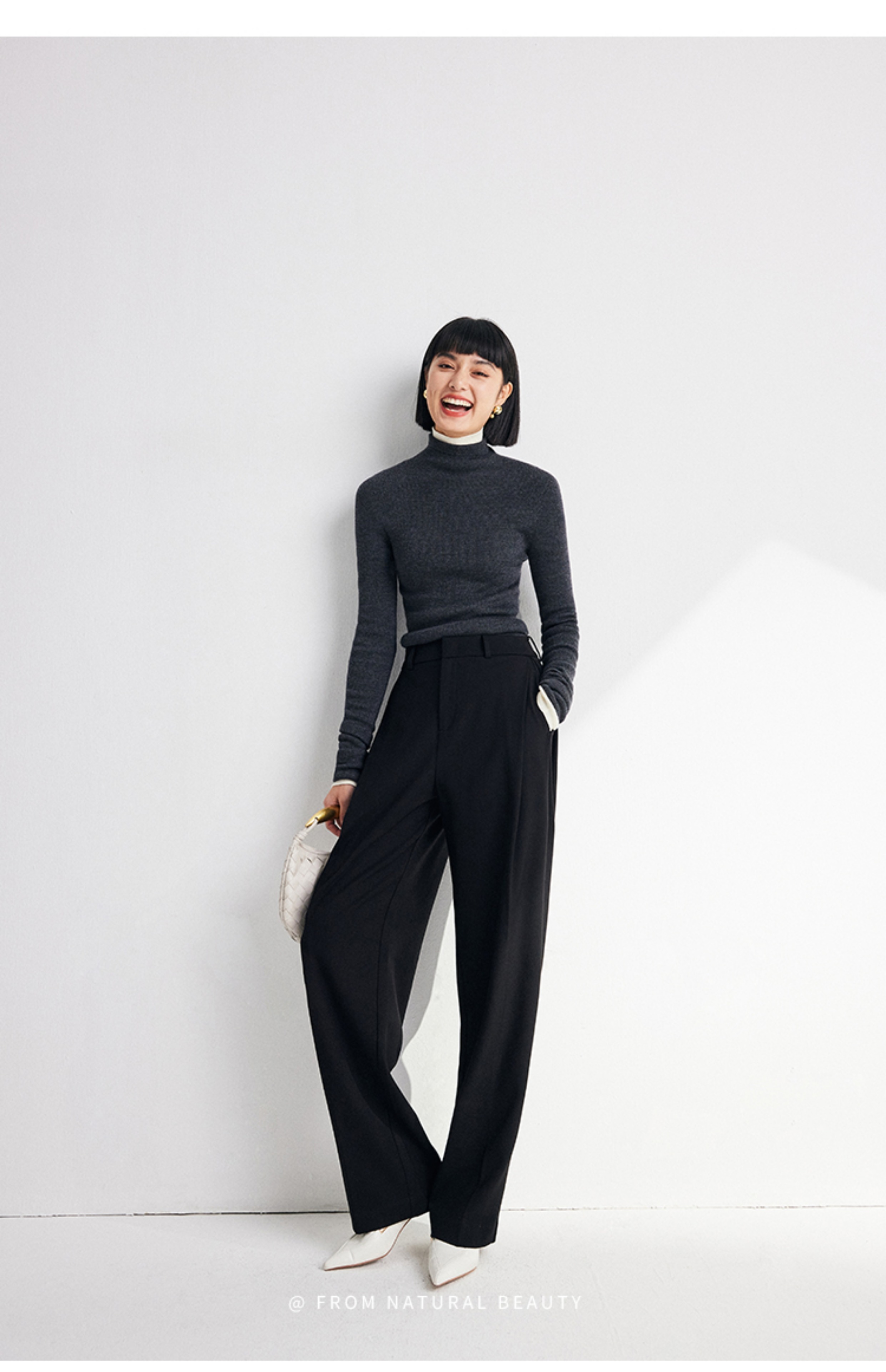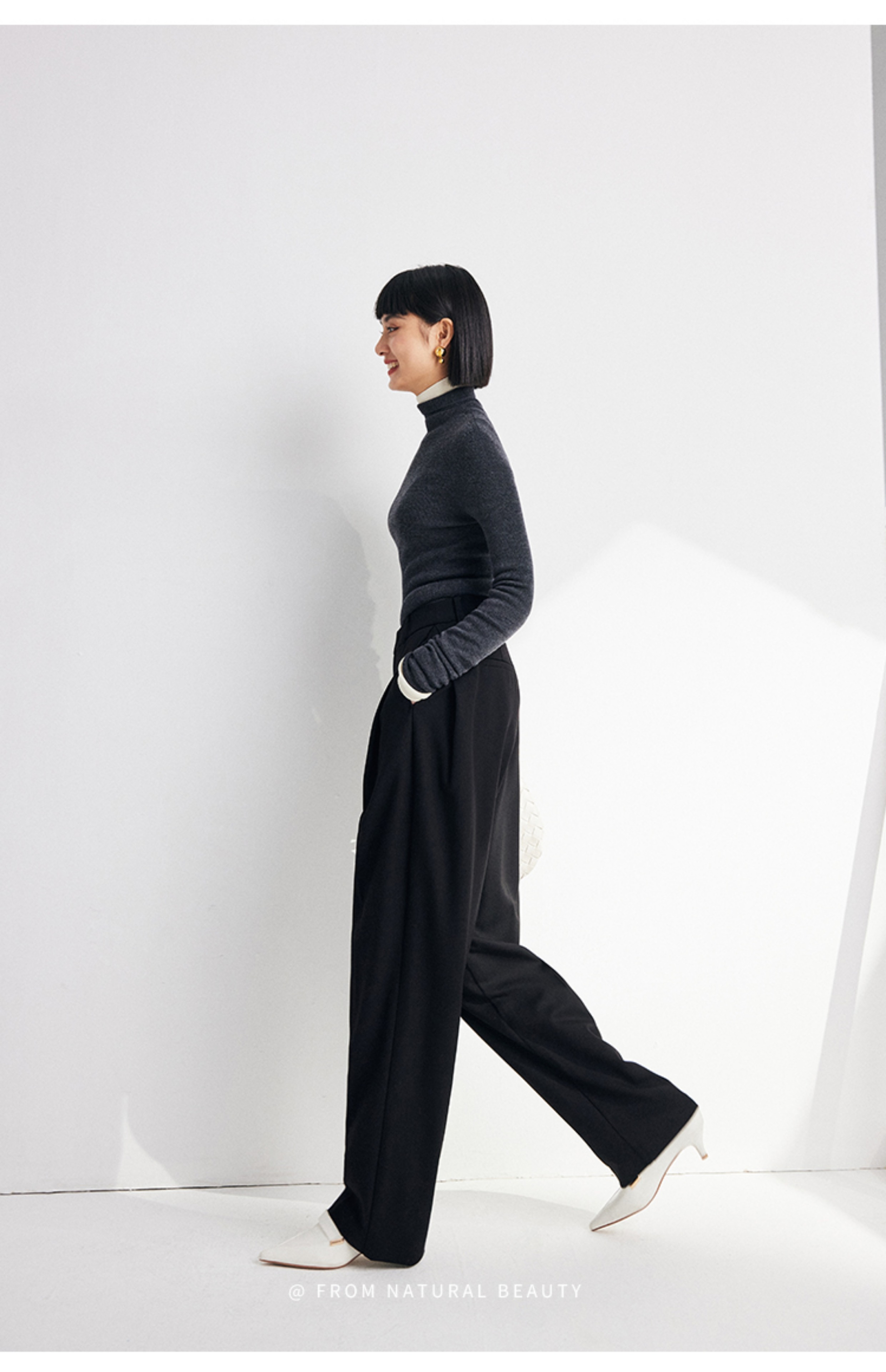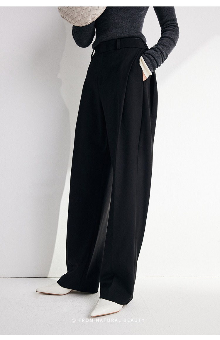 绵羊毛高腰西装直筒裤女2023秋季新款垂感显瘦休闲阔腿裤子