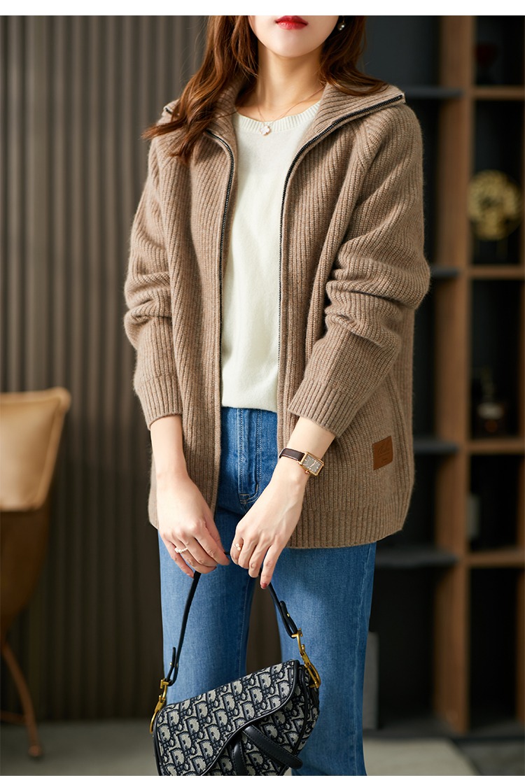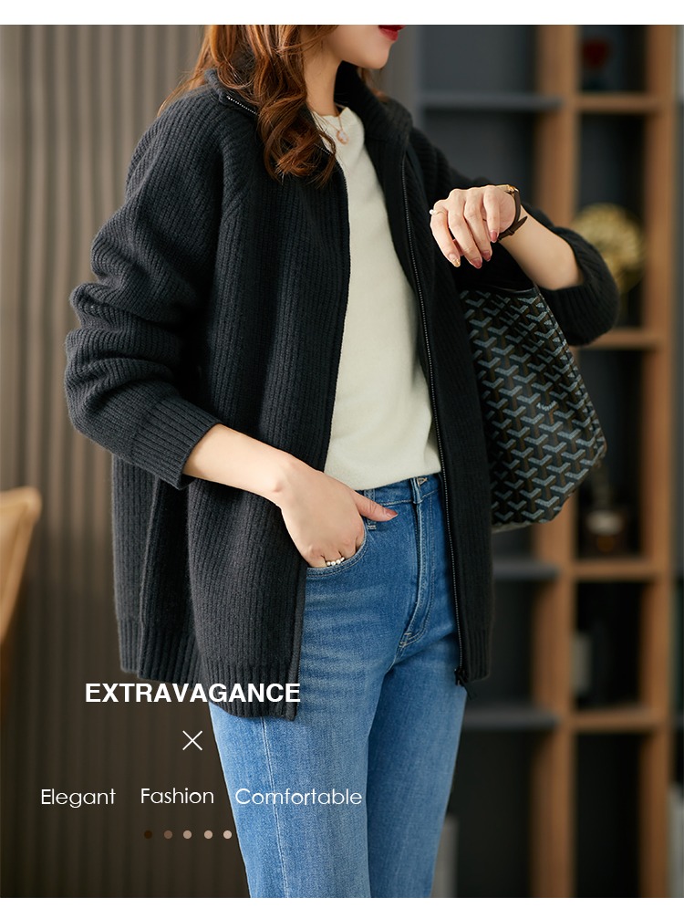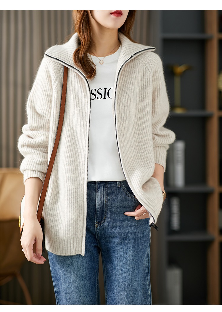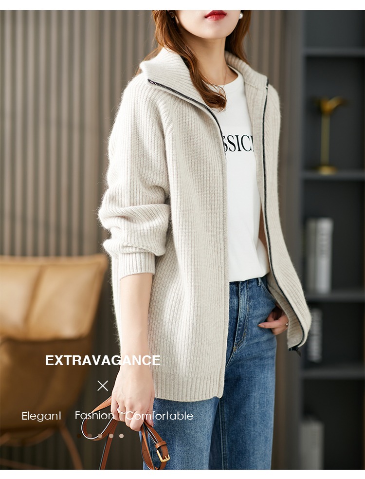 羊毛针织外套开衫女早春2023新款毛衣韩版懒惰风宽松外搭上衣