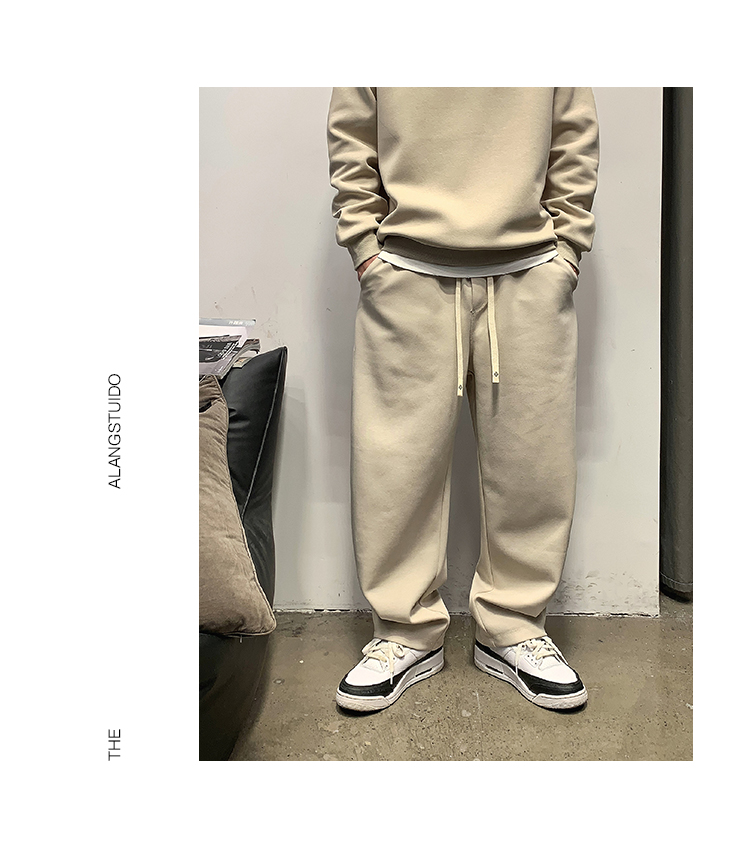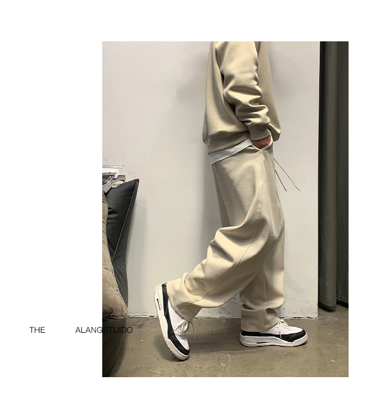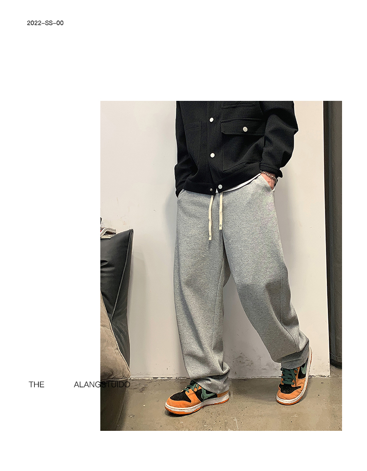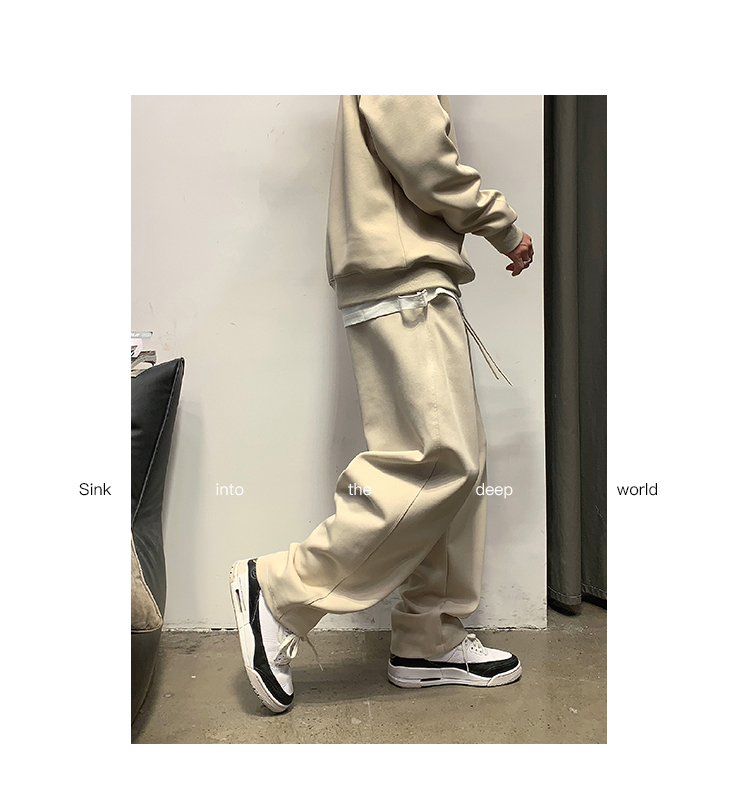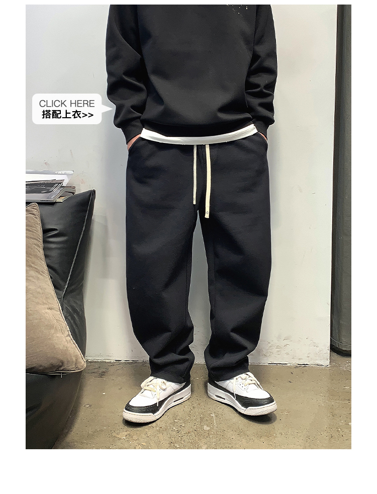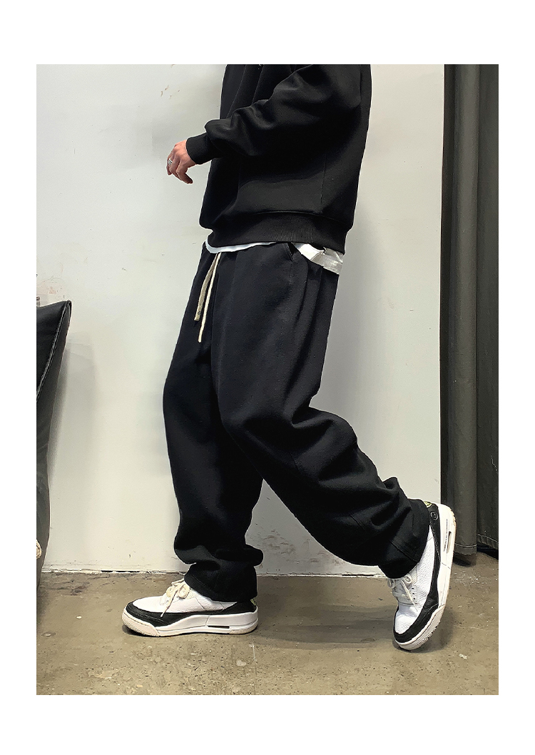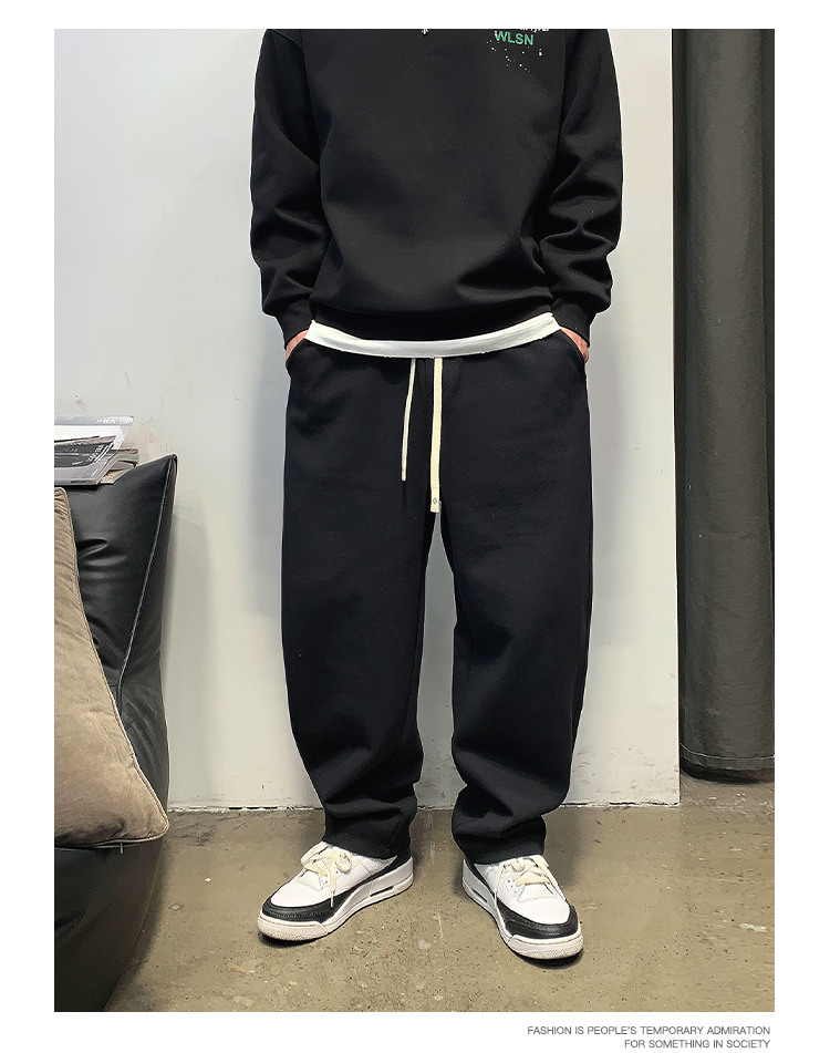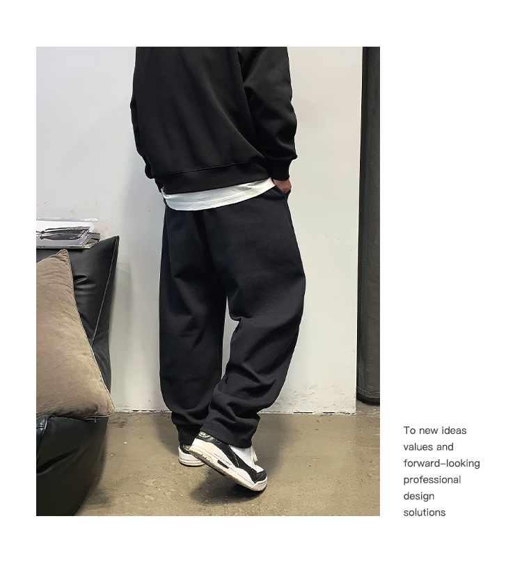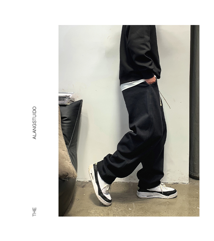 徐太浪高品质黑色休闲裤男潮牌大码宽松直筒垂感阔腿长裤