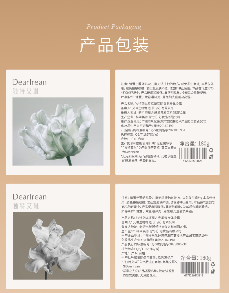 独特艾琳【王星越同款】香氛身体冷霜 补水防干保湿润持久留香身体乳