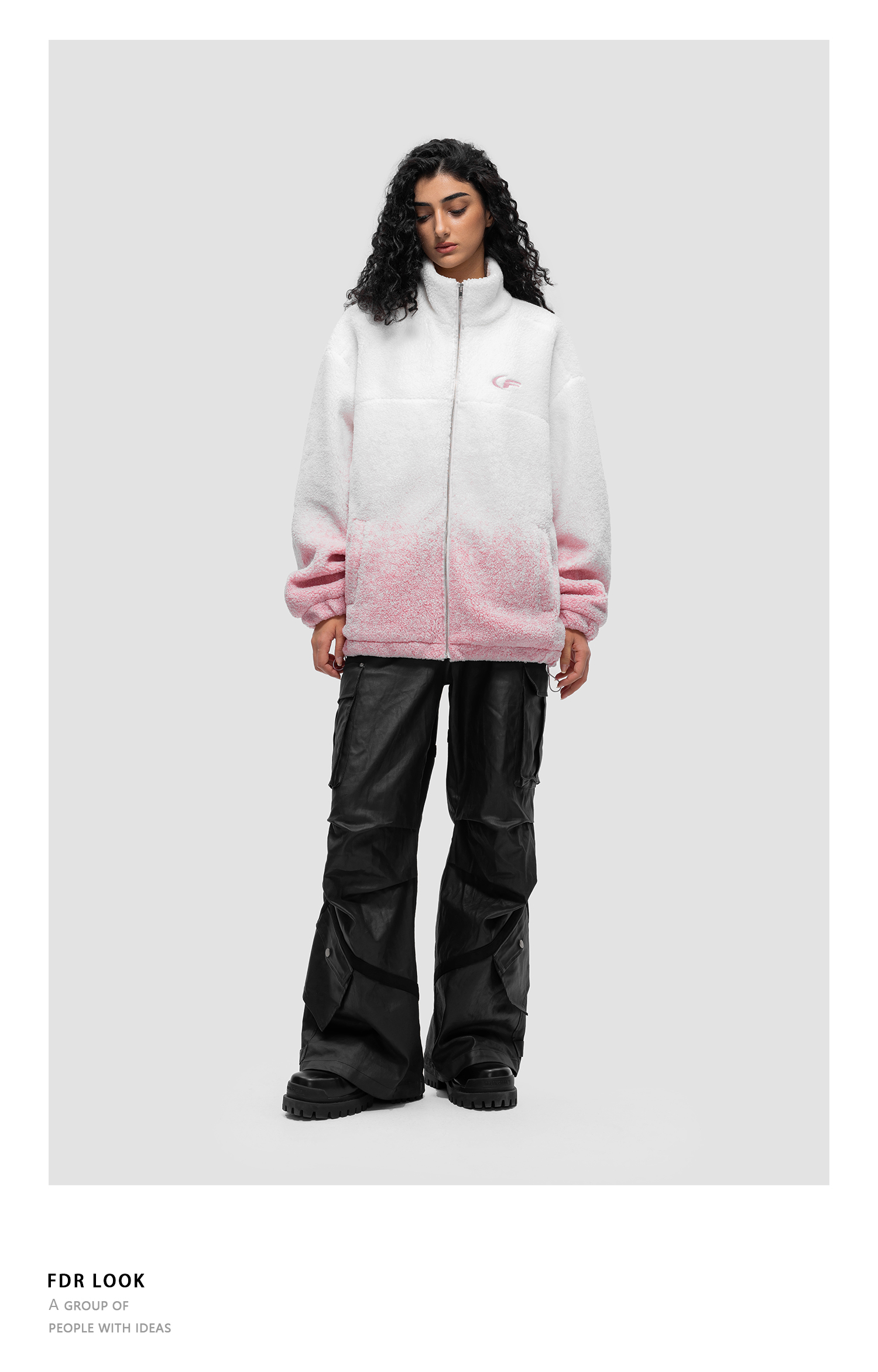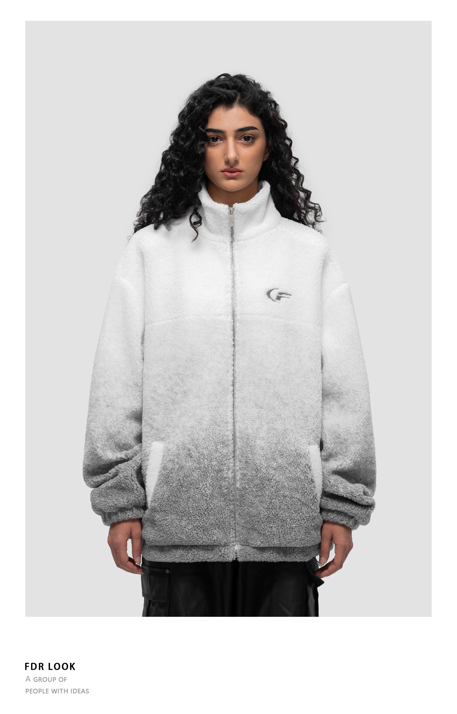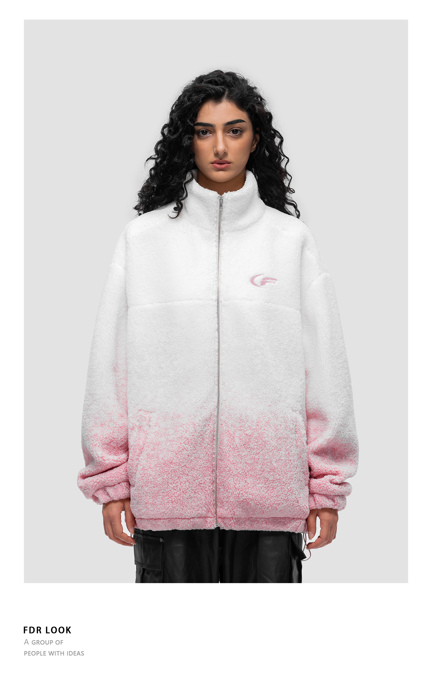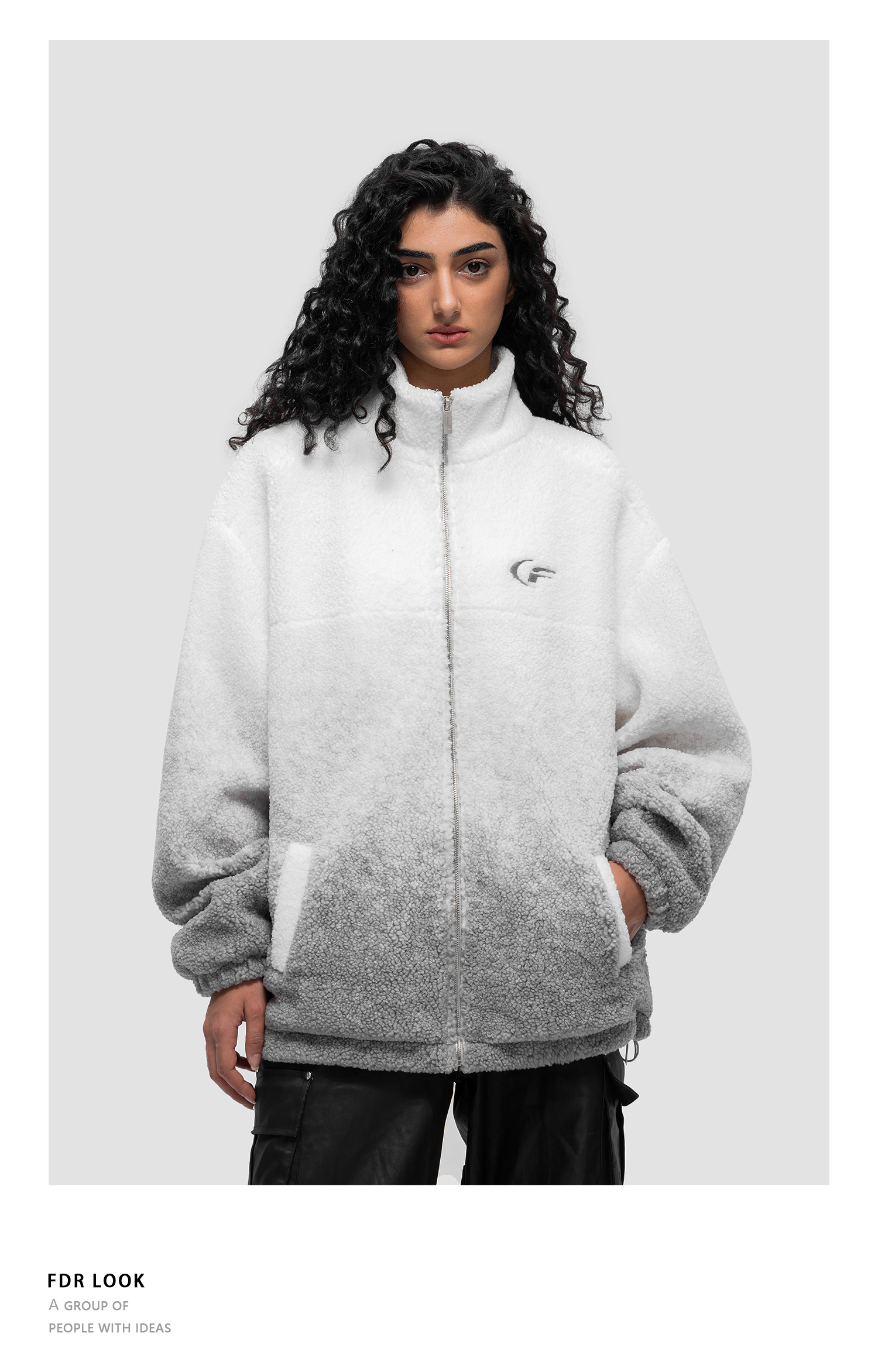 FDR 原创国潮美式渐变羊羔绒外套男女秋冬季加厚情侣宽松棉衣棉服