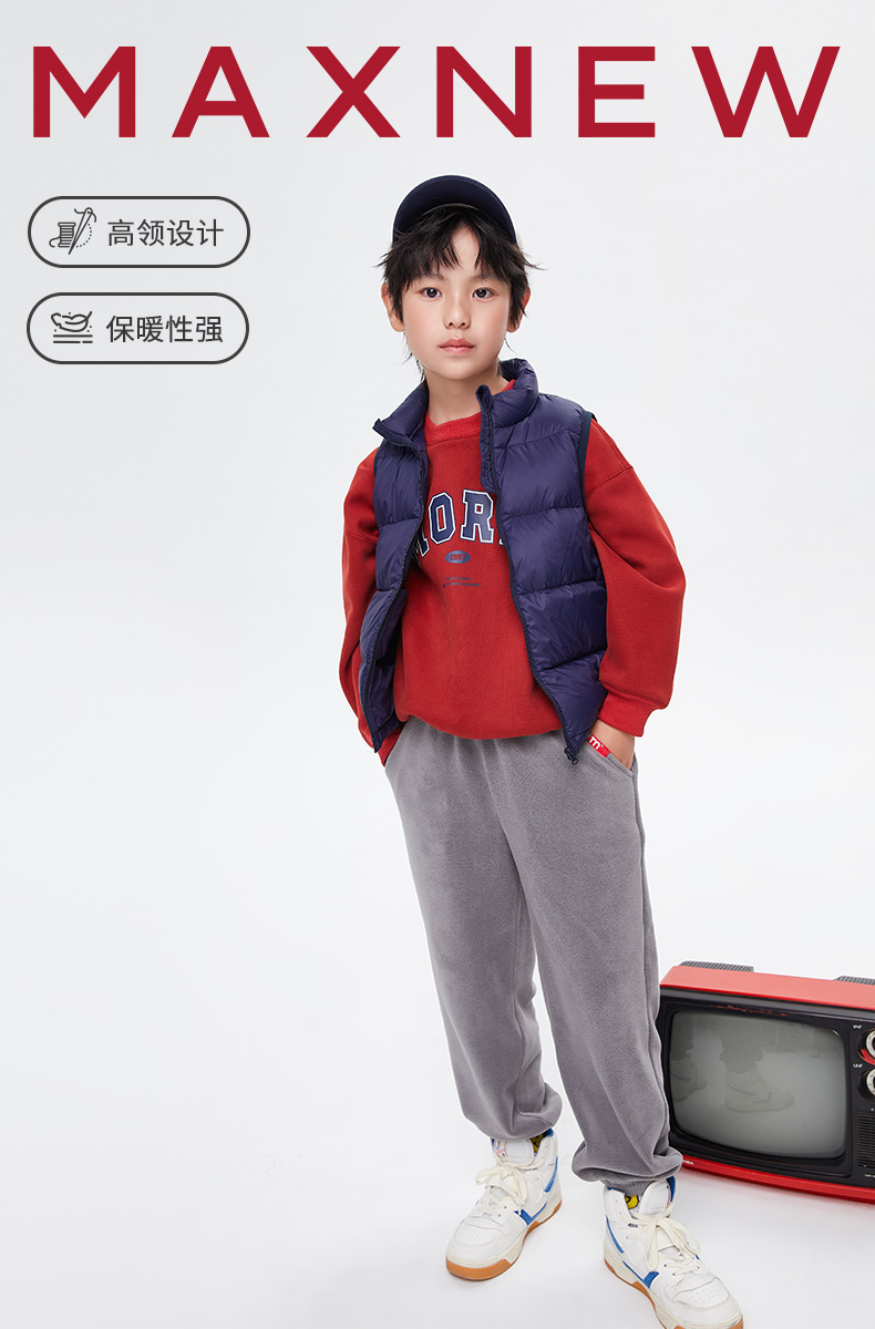 【门店同款】马恩MAXNEW童装秋冬男童奥粒绒针织长裤加厚束脚卫裤