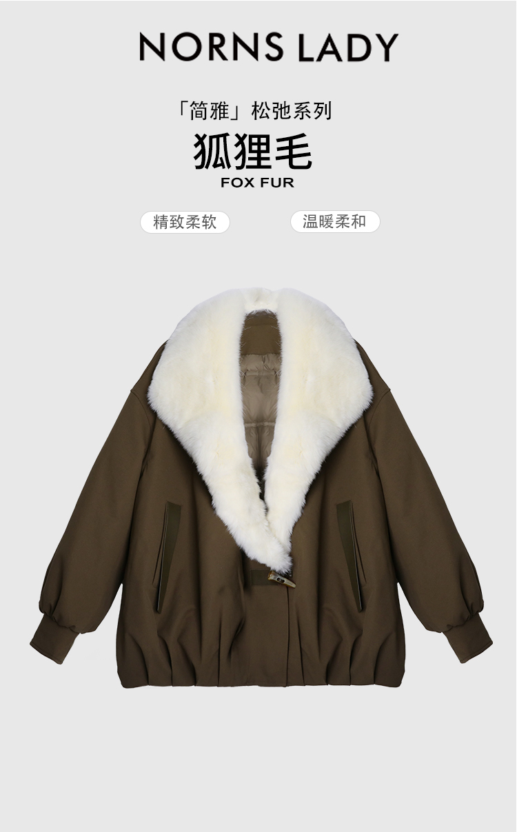 NORNS LADY诺恩 复古风毛领外套女加厚保暖冬季外套 H25WK90979