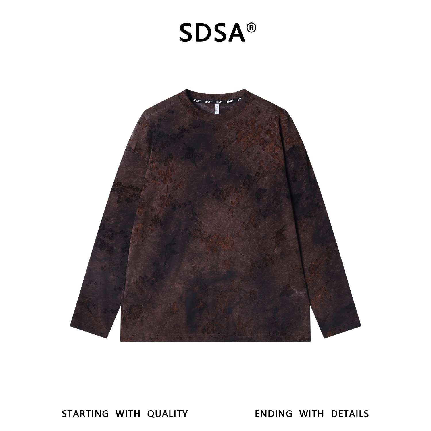 26T112SDSA男装2026新款高贵轻奢时尚扎染植绒花卉圆领长袖T恤百搭上衣