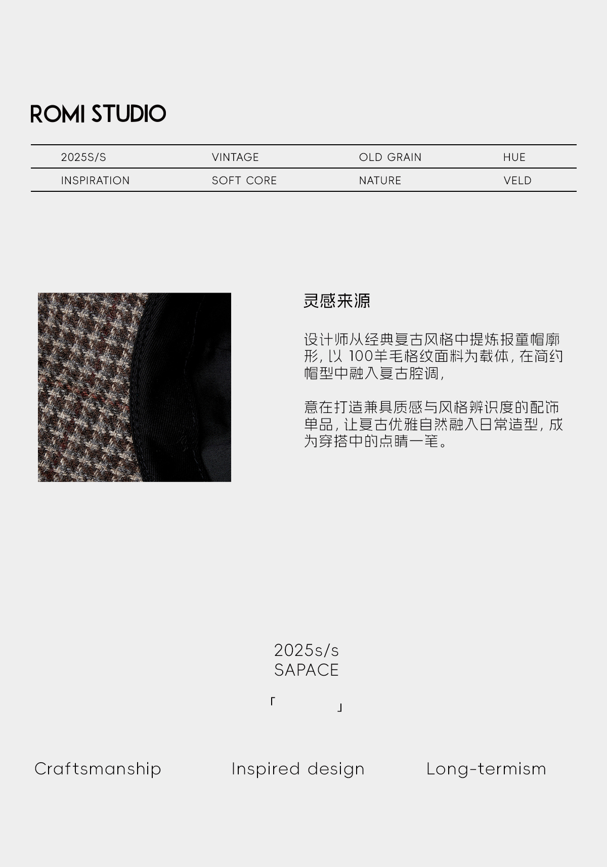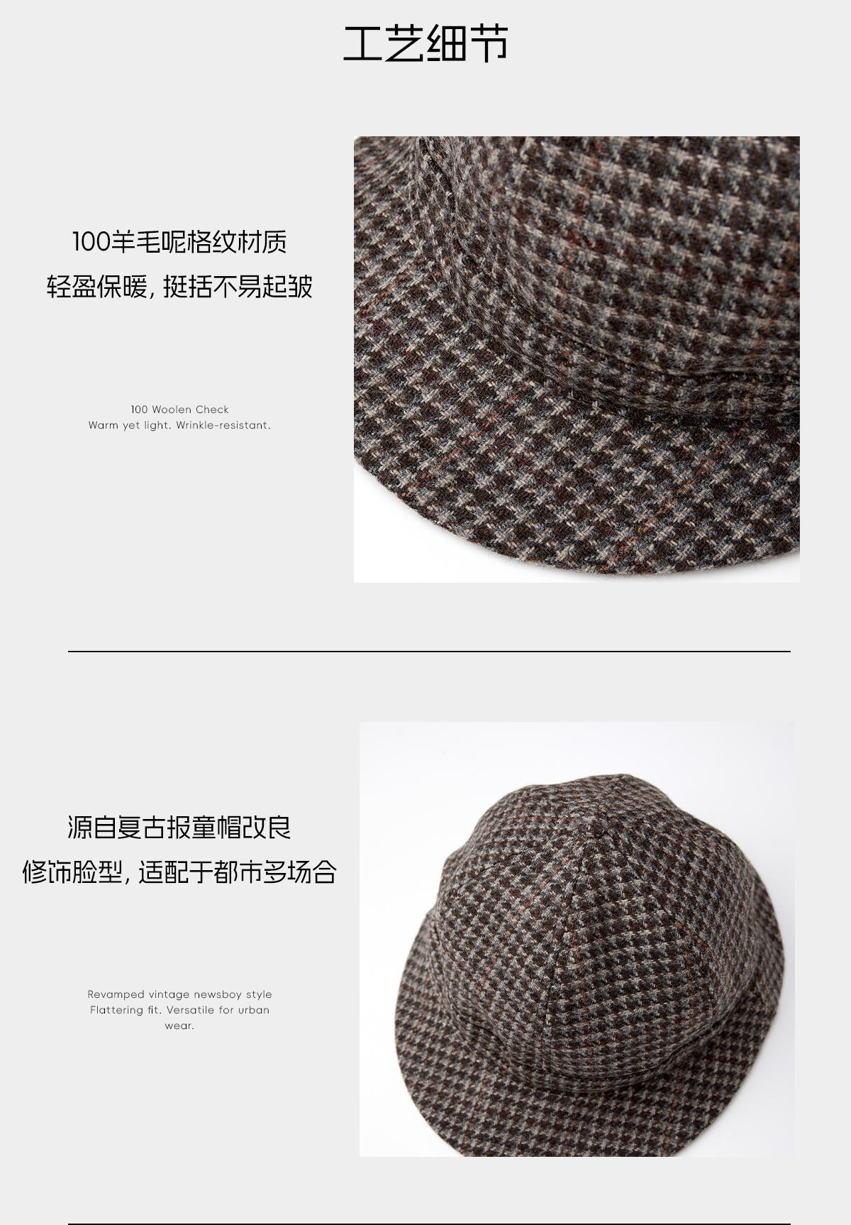 ROMI STUDIO“复古英伦”100%羊毛硬挺圆顶侦探渔夫帽 RWCWP36701