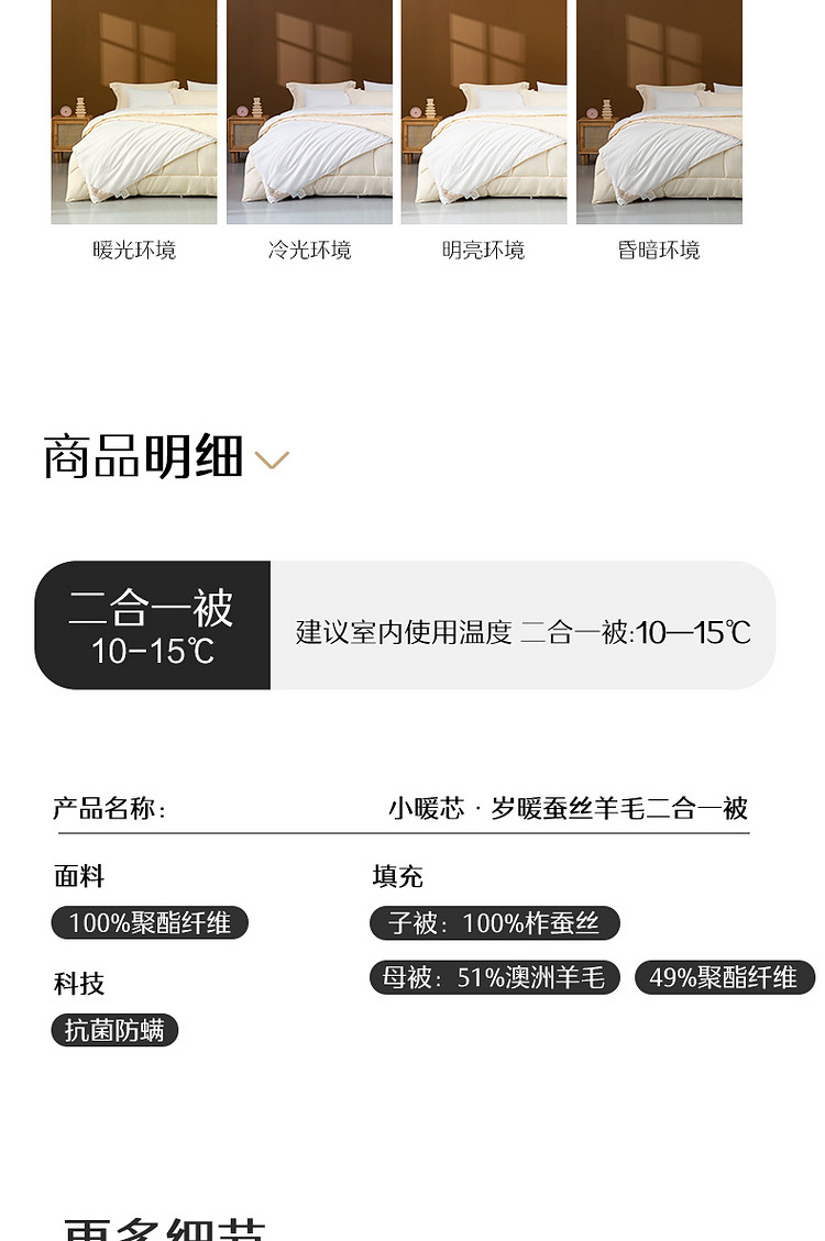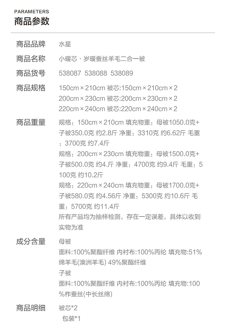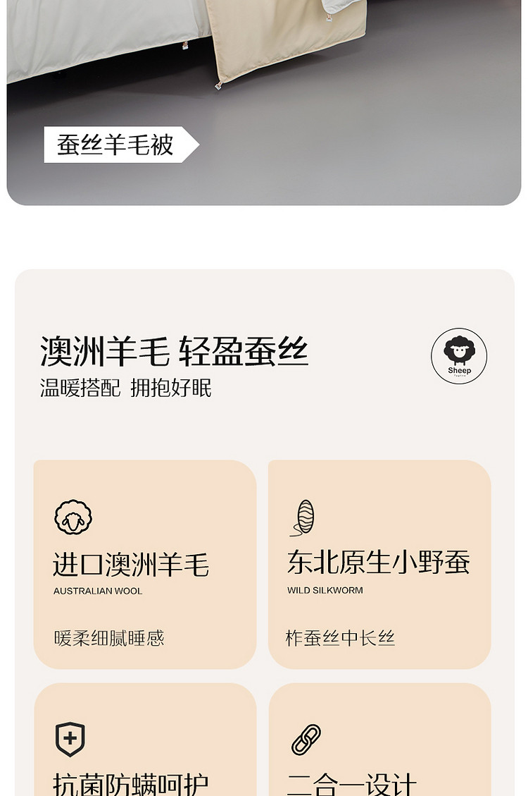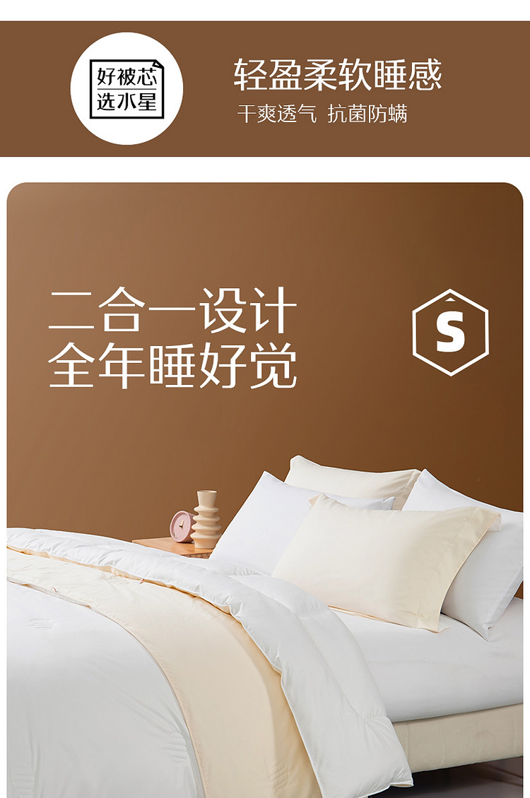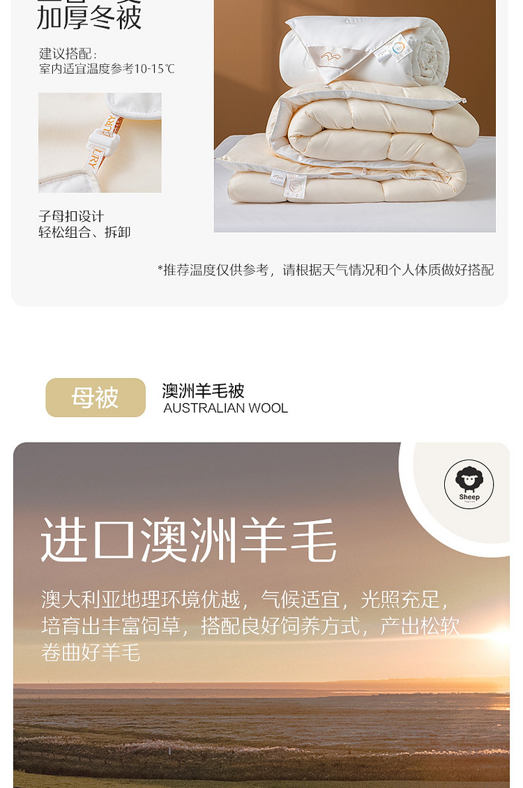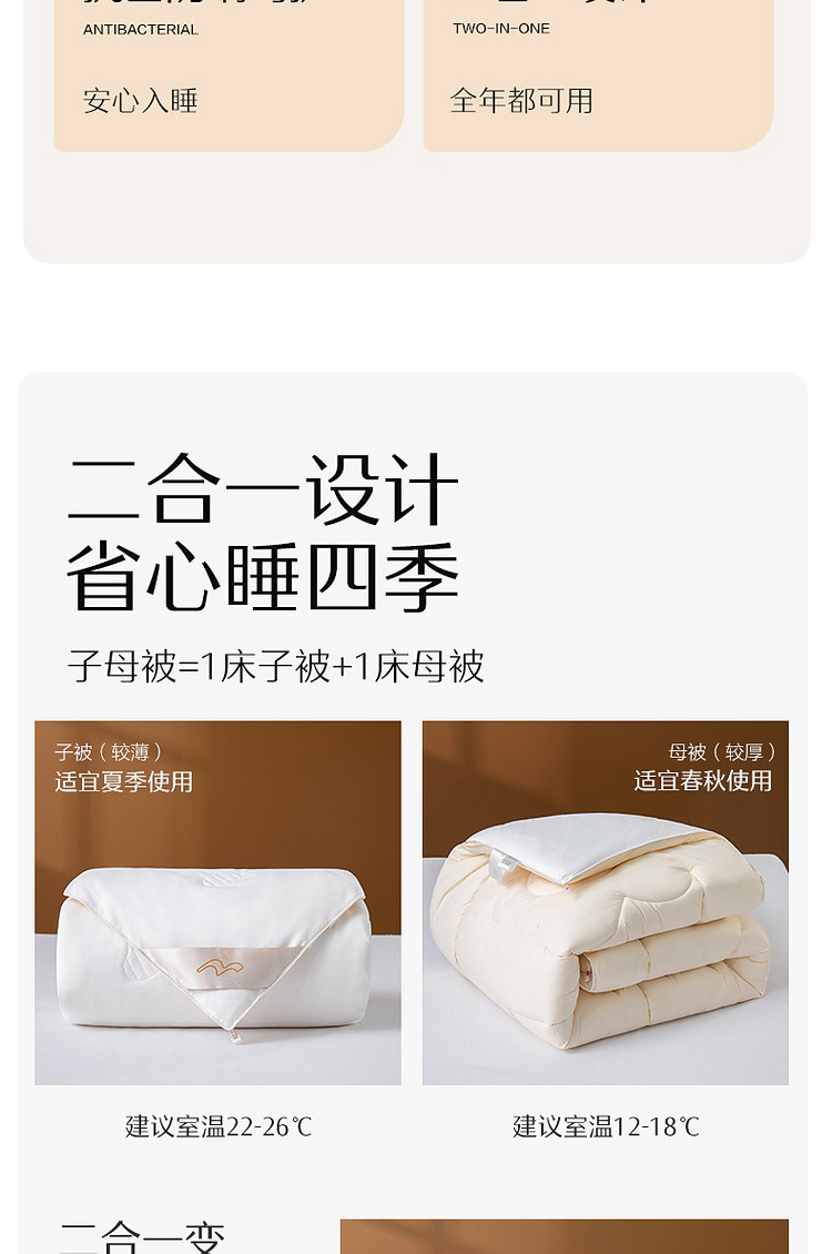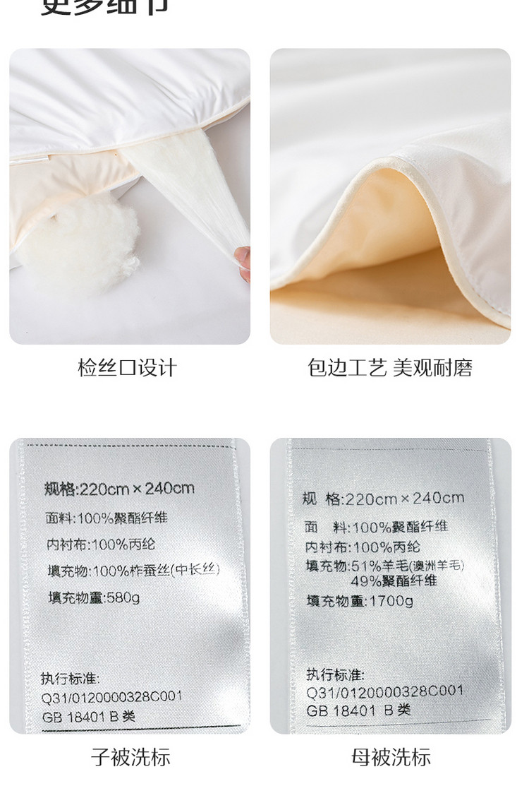 水星家纺 澳洲进口羊毛蚕丝二合一被芯蚕丝大豆子母被四季被子蚕丝被羊毛被