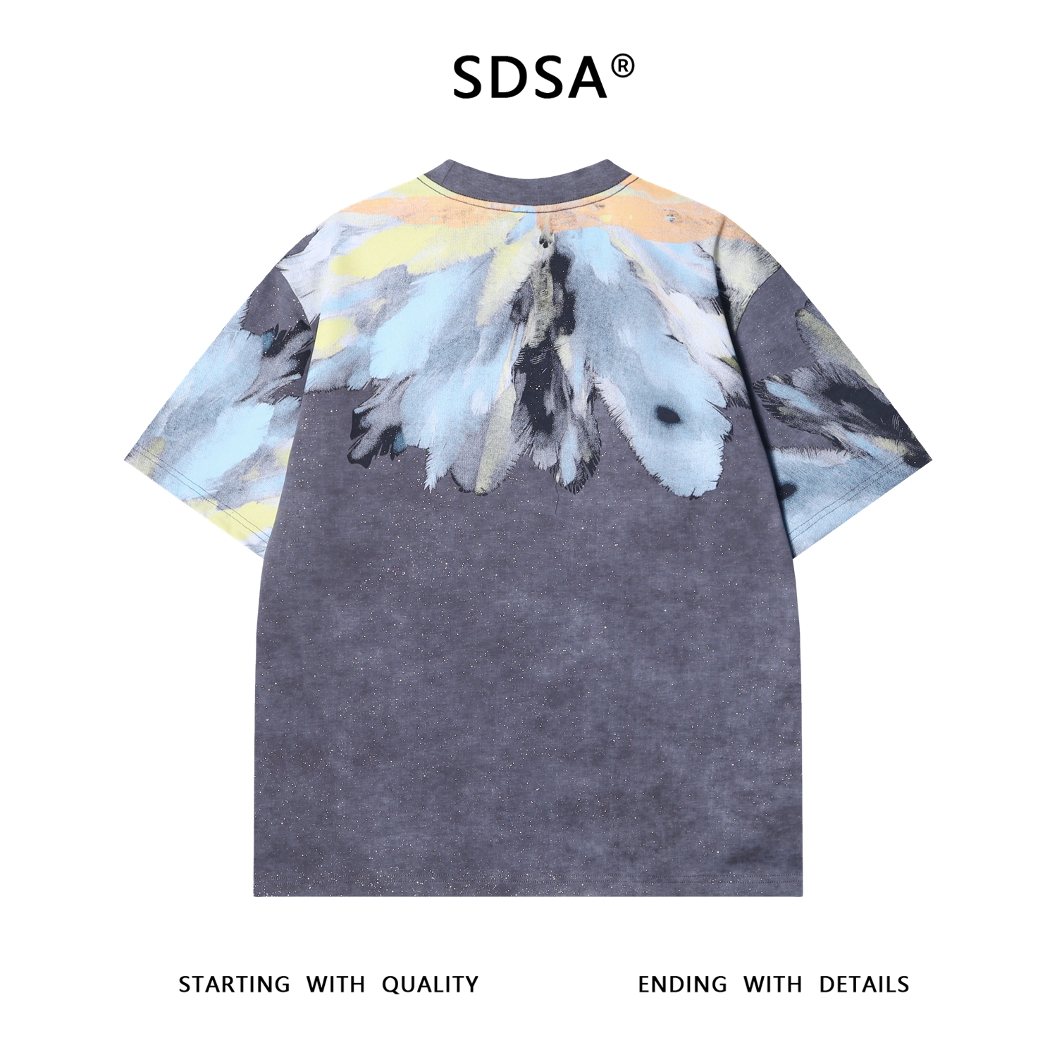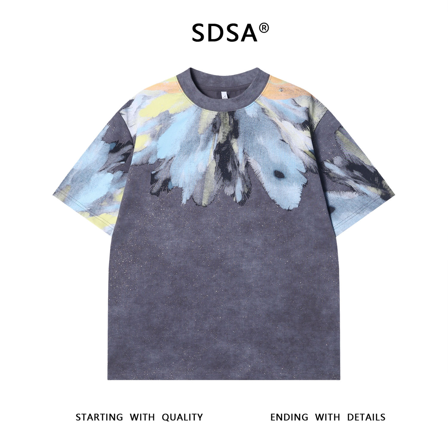 T3498夏季高级感新款男士抽象领口印花圆领短袖T恤满天星时尚宽松上衣