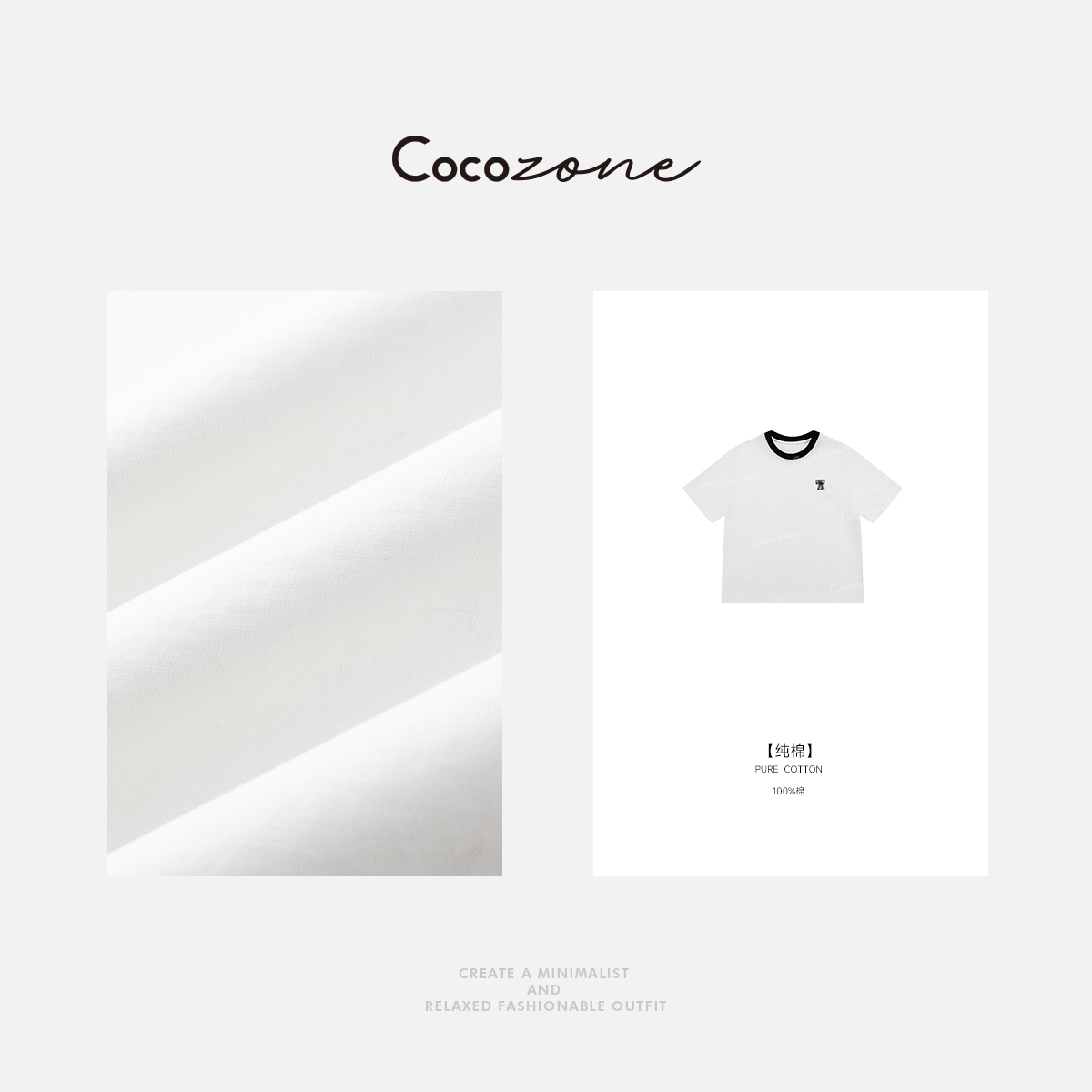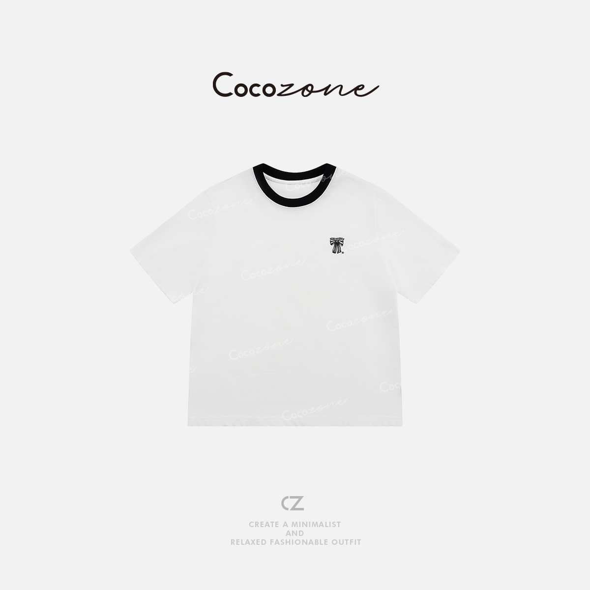 COCO ZONE 100棉撞色圆领蝴蝶结图案短袖T恤CD2A0049