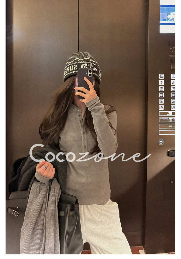 COCO ZONE 刘 一一 “扣子打底”半开领基础款长袖T恤 CD1A1783