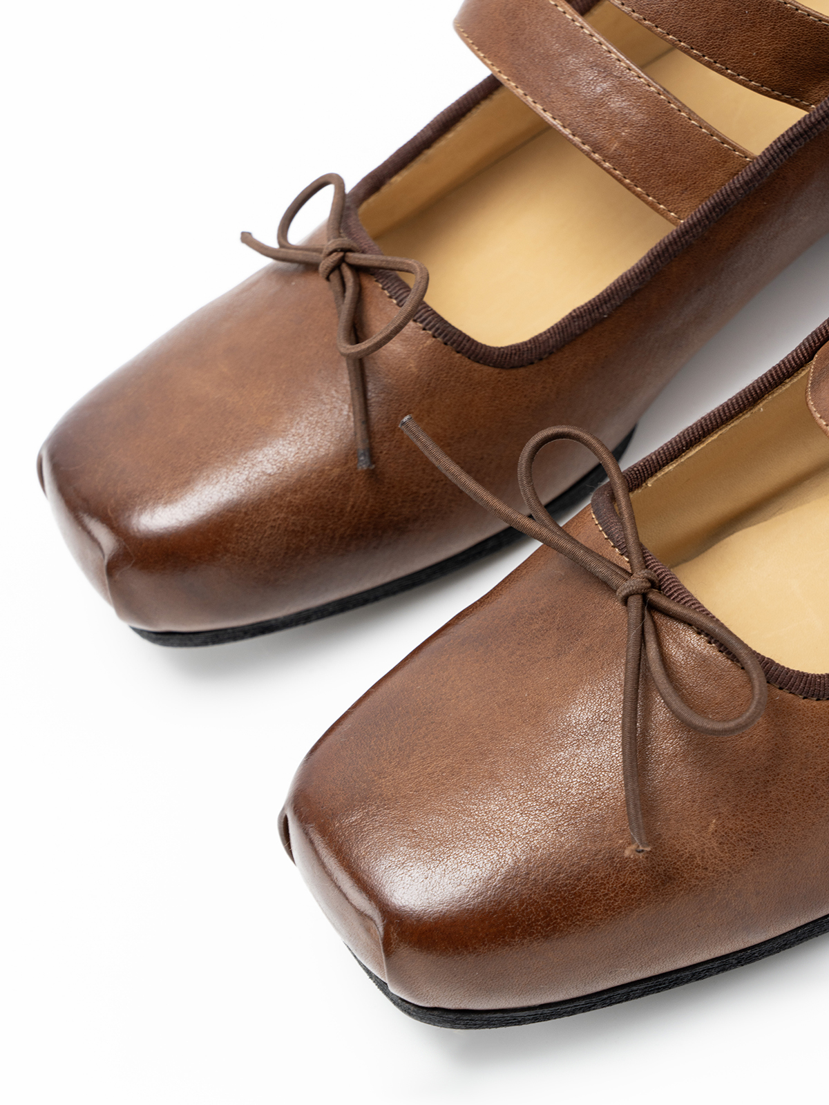 COCO ZONE 复古蝴蝶结平底鞋时尚一字带方头单鞋CC2B1069