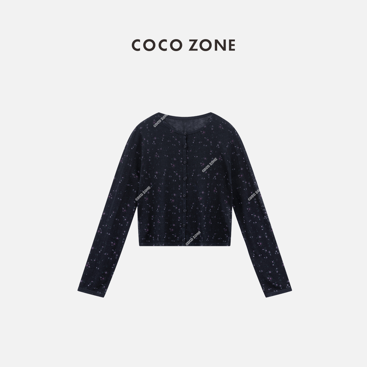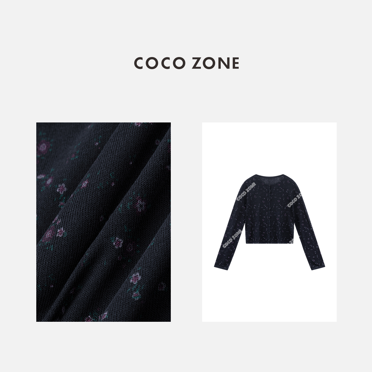 COCO ZONE"碎花开衫"通勤百搭长袖单排扣针织衫气质圆领显瘦上衣CC1B0960